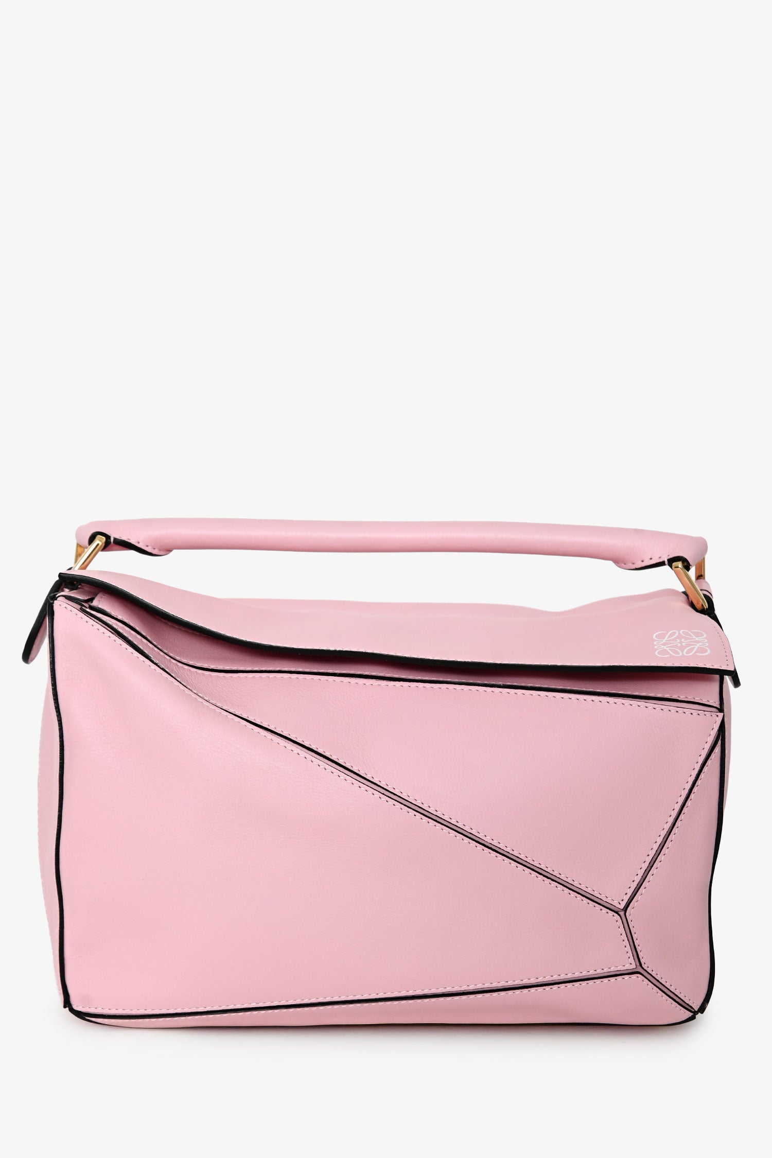 Refresh availabilityLoewe Light Pink Medium Puzzle Bag. Top zip closure. Top handle. Detachable and adjustable strap. Single exterior rear zip pocket. Textile-lined interior. 2 interior wall slip pockets. Gold-tone hardware. Tonal stitching.