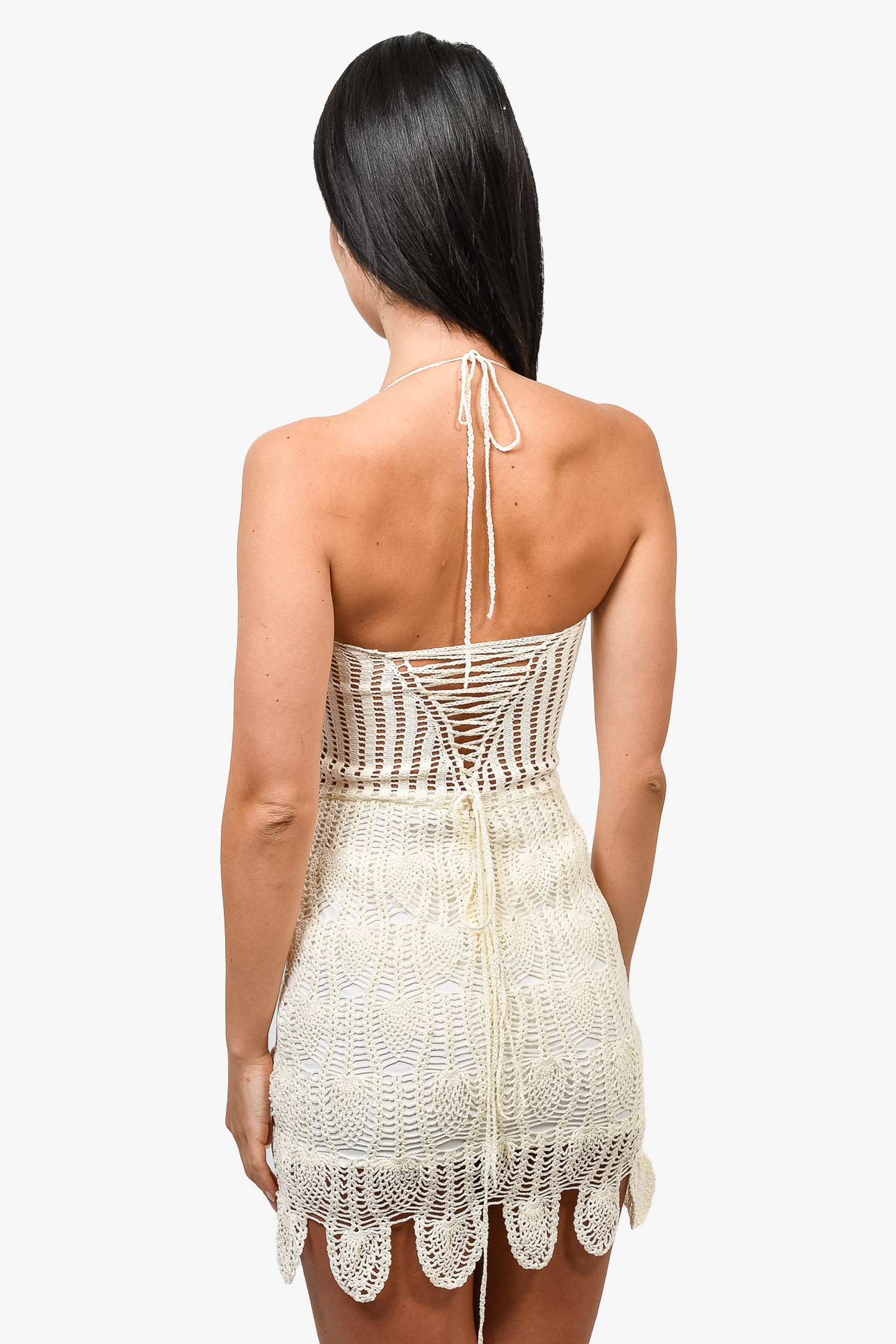Loewe Paula's Ibiza Cream Crochet Knit Halterneck Dress Size XS