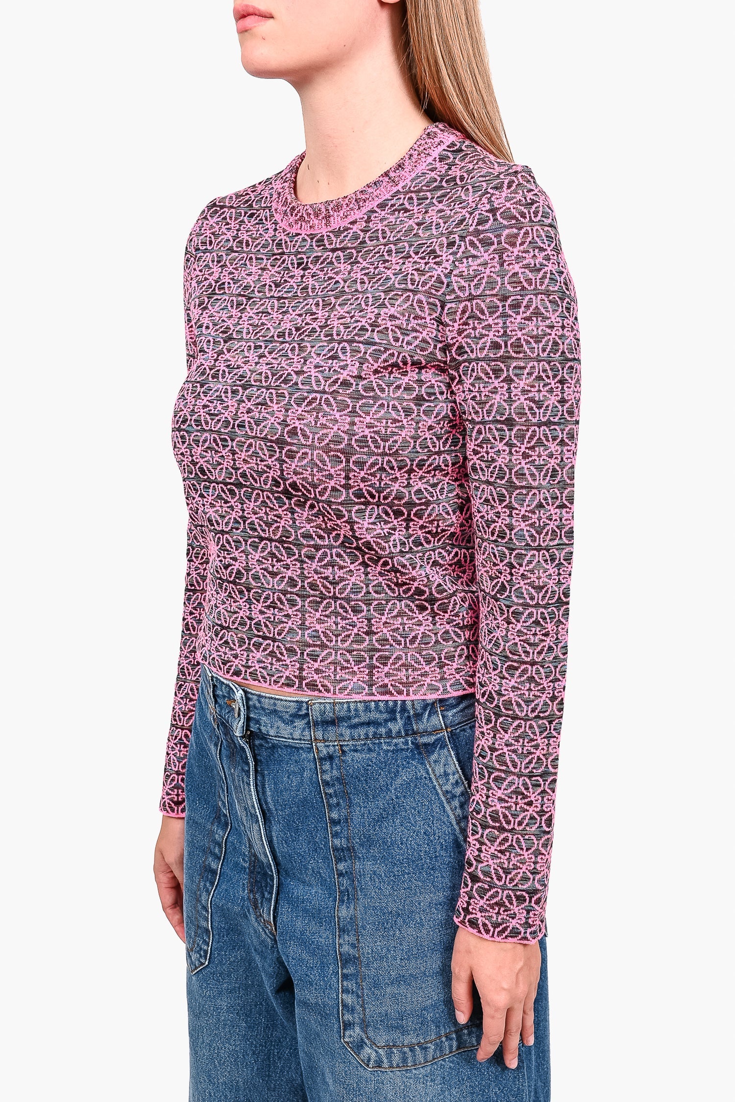Refresh availabilityLoewe Pink Anagram Sweater. Round neck. Pull-on. Tonal stitching.