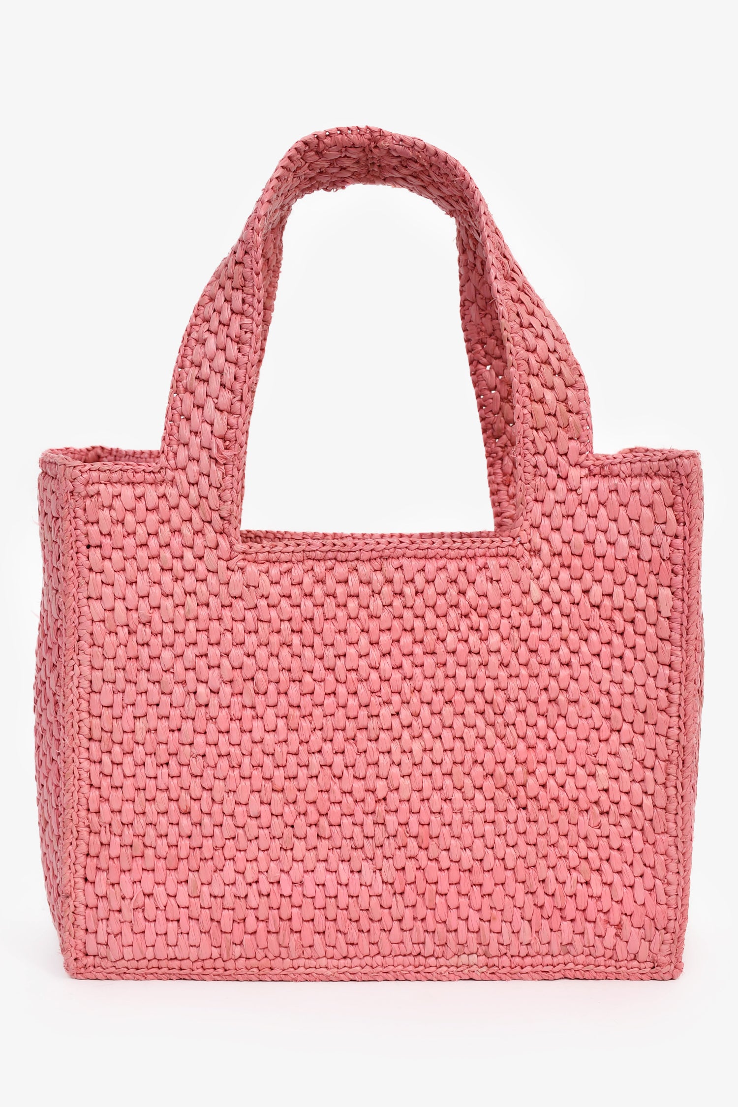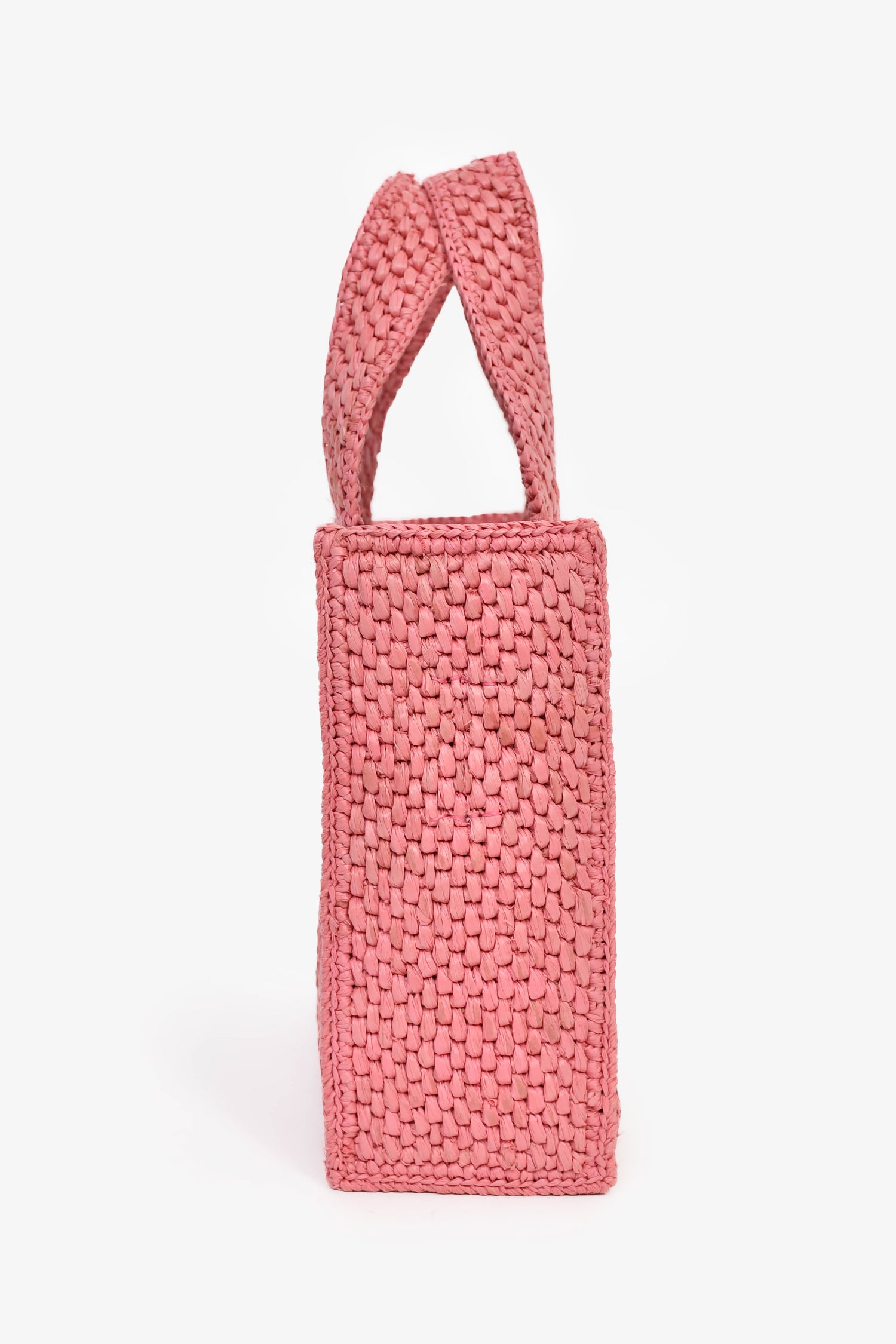 Refresh availabilityLoewe Pink Raffia Mini Font Bag. Open interior. 2 flat top handles and 1 leather shoulder strap. Gold-tone hardware. Tonal stitching.