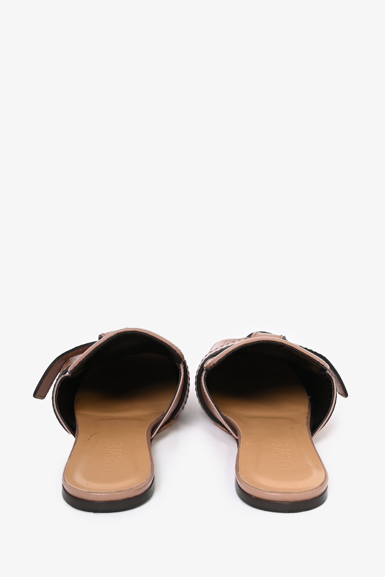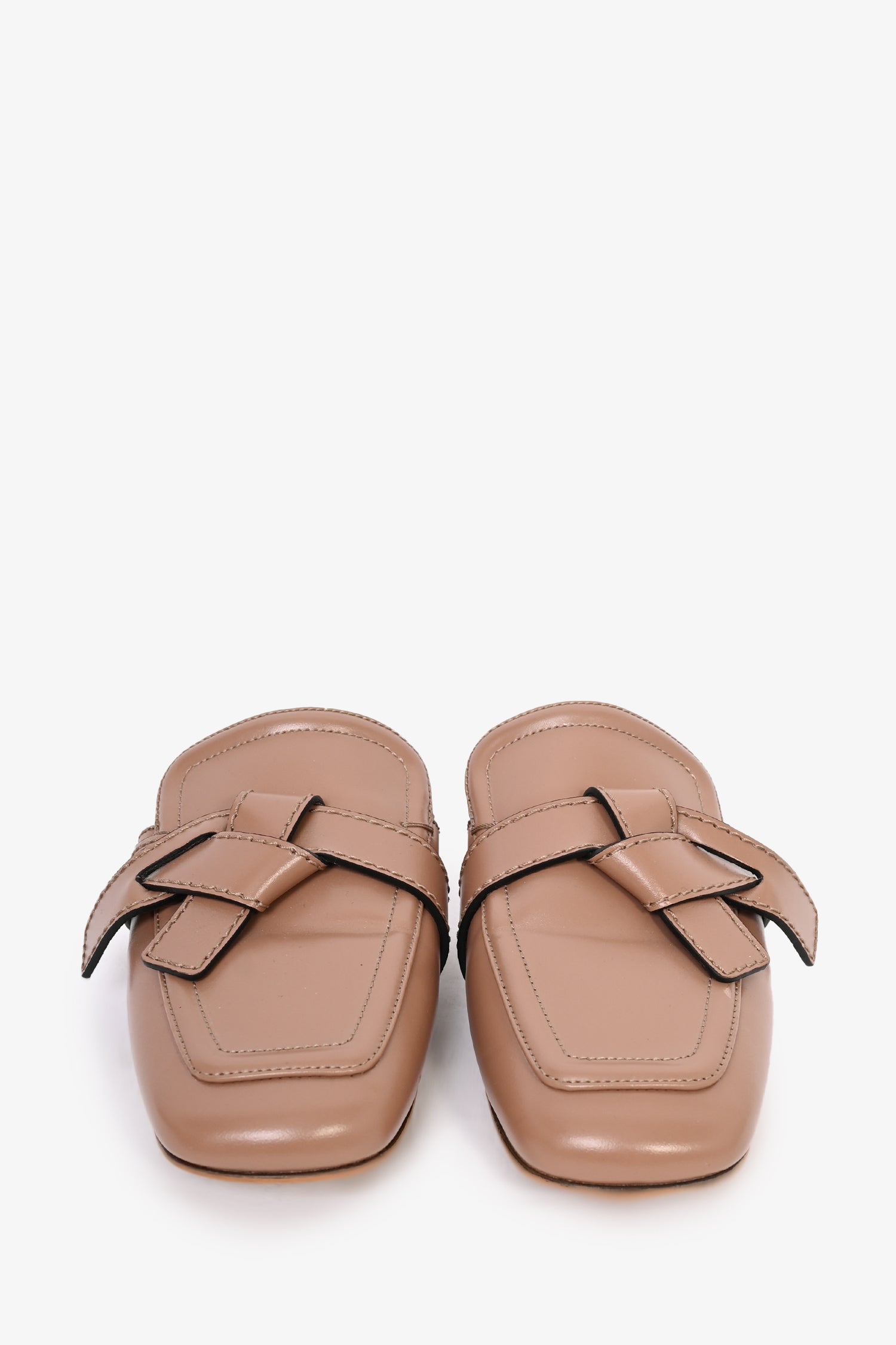 Refresh availabilityLoewe Rose Leather Knot Slides. Leather trimming. Tonal stitching. Square toe. Leather insole. Debossed 'Loewe' logo on insole and anagram on back.