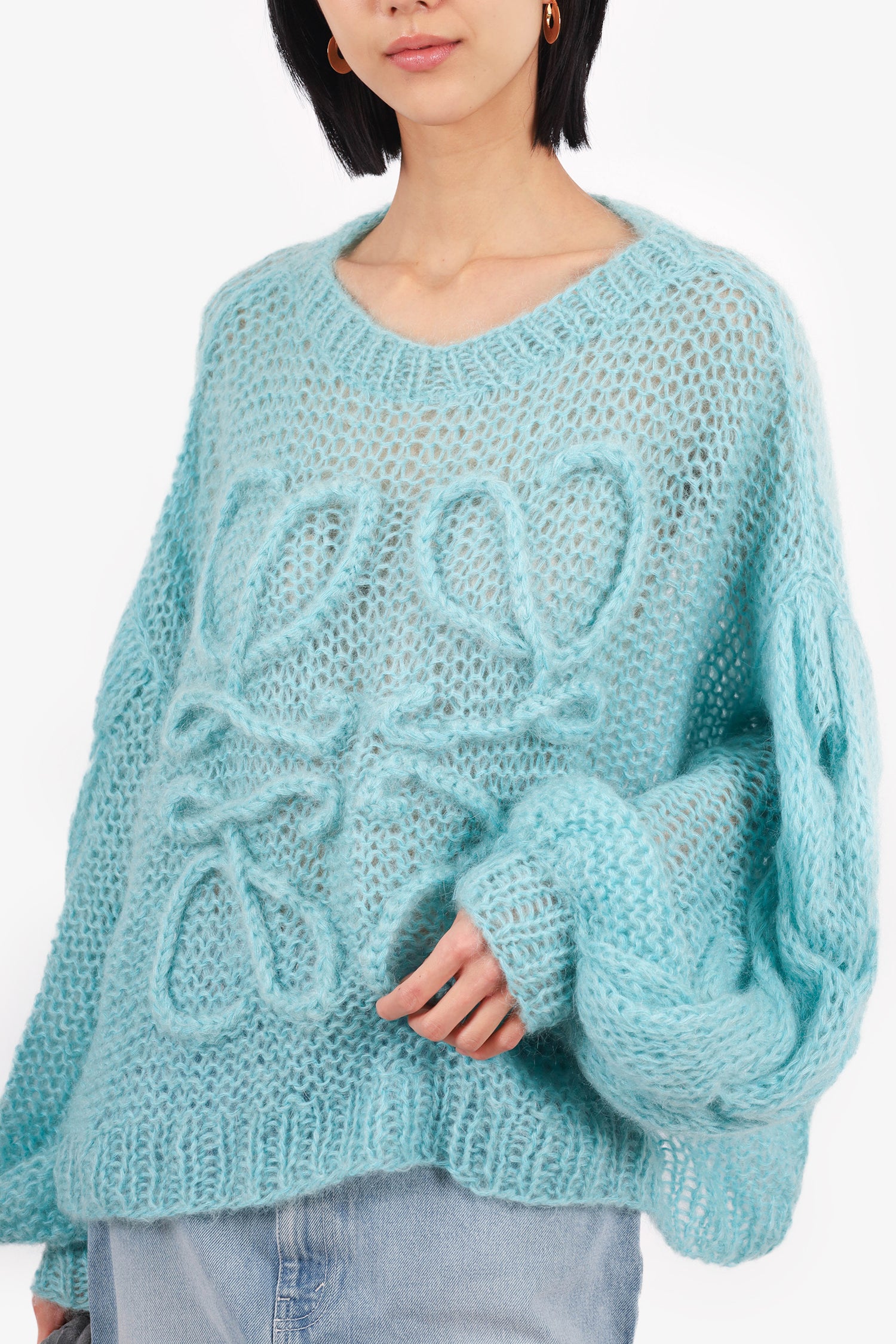 Loewe Teal Mohair Anagram Knitted Sweater Size Medium