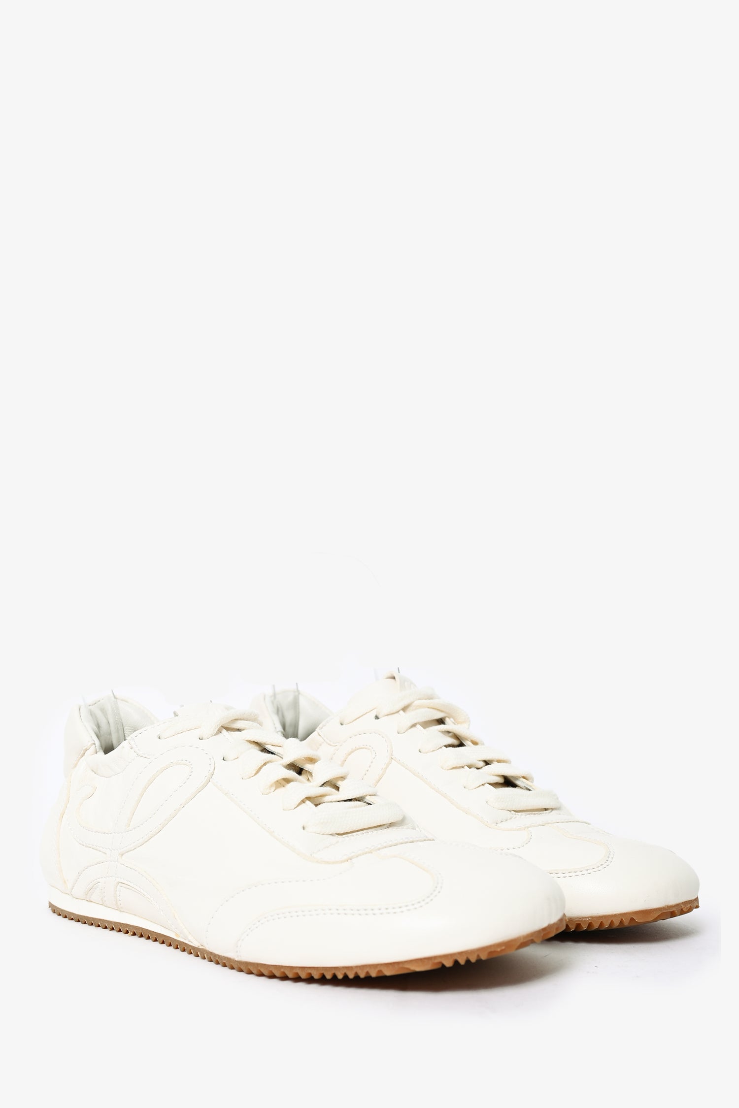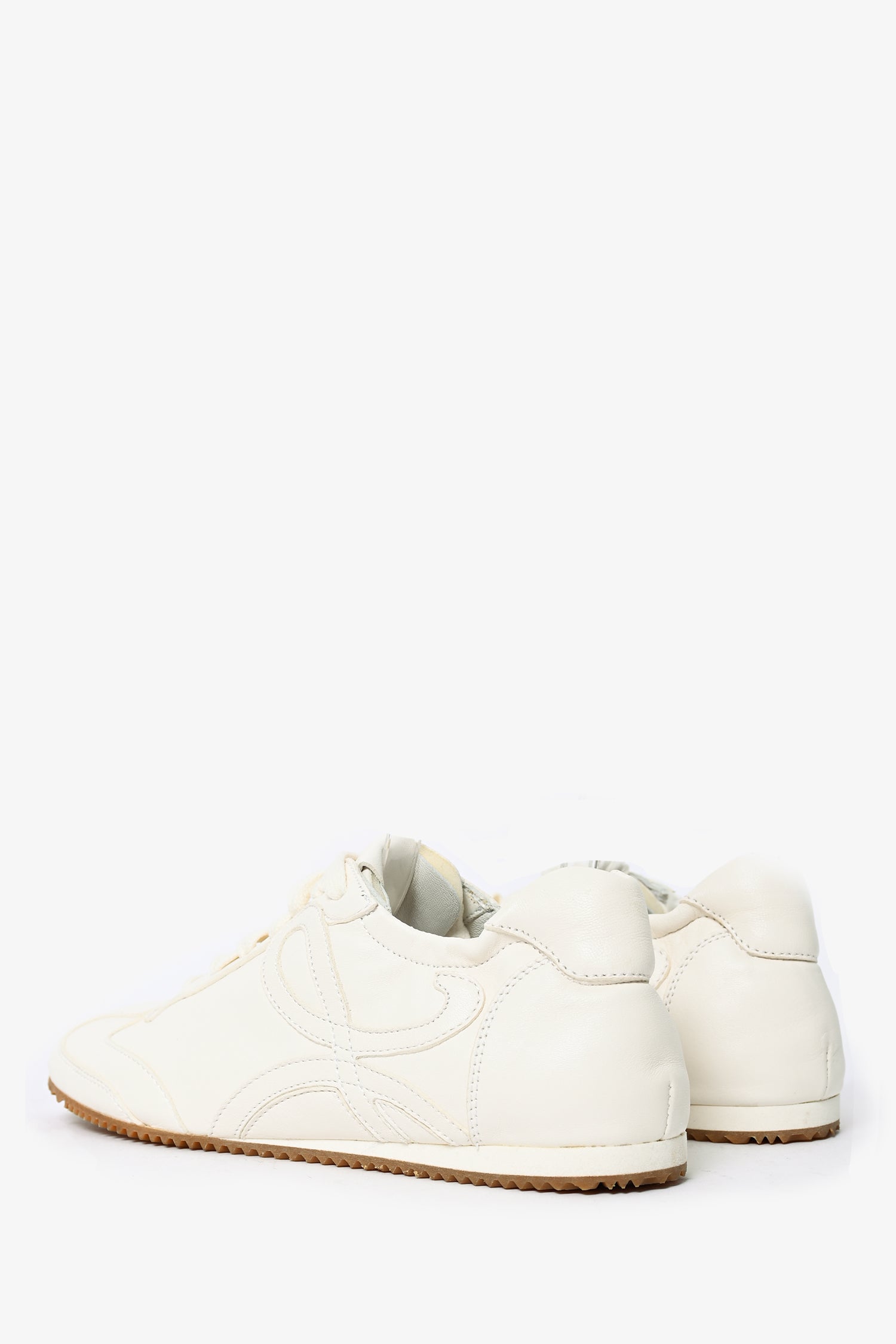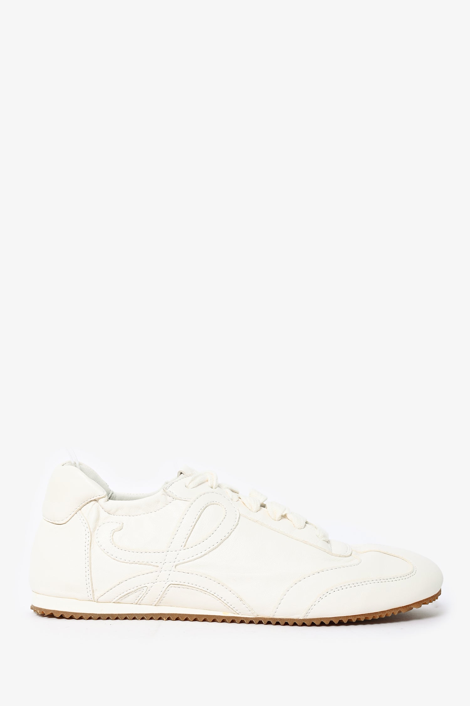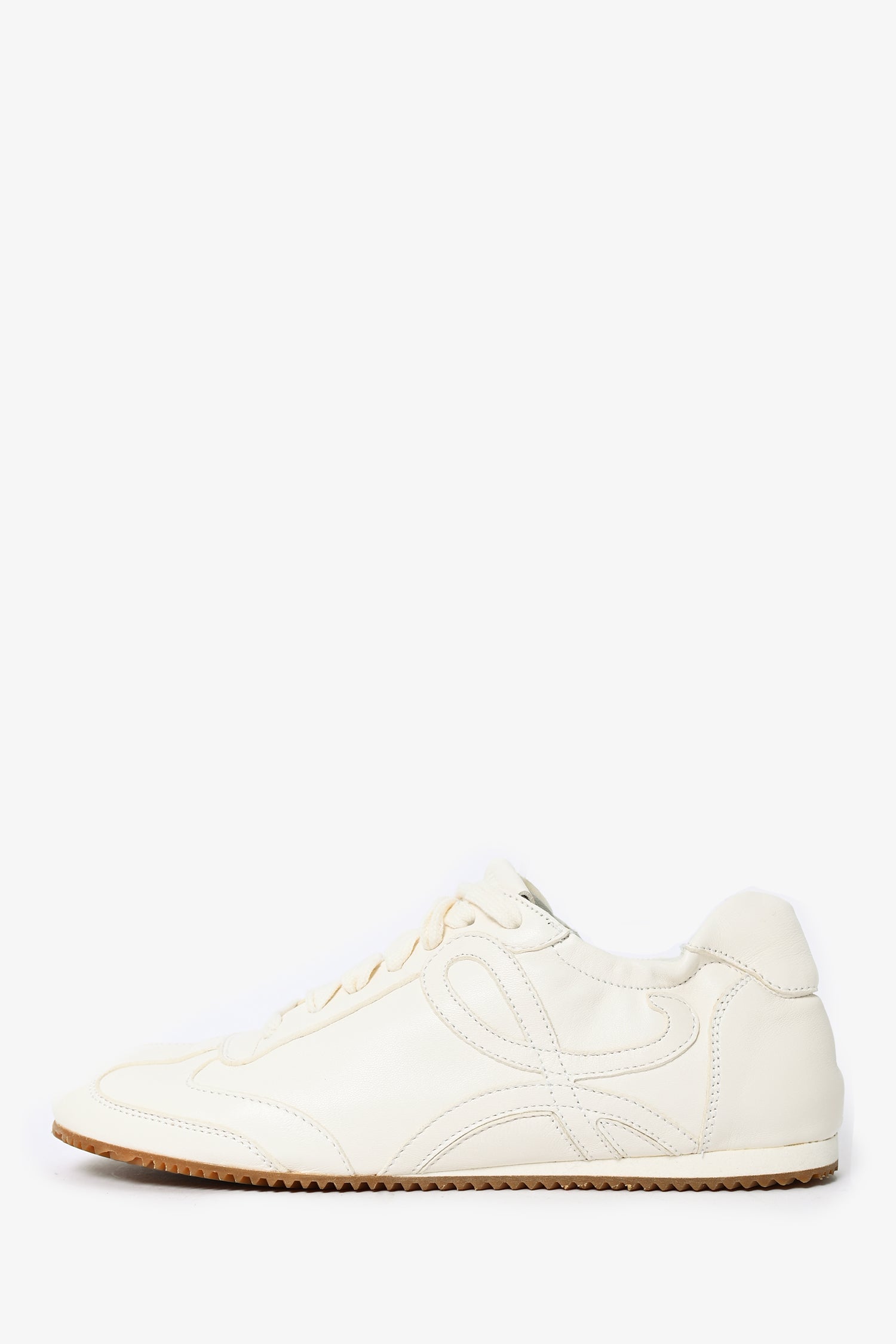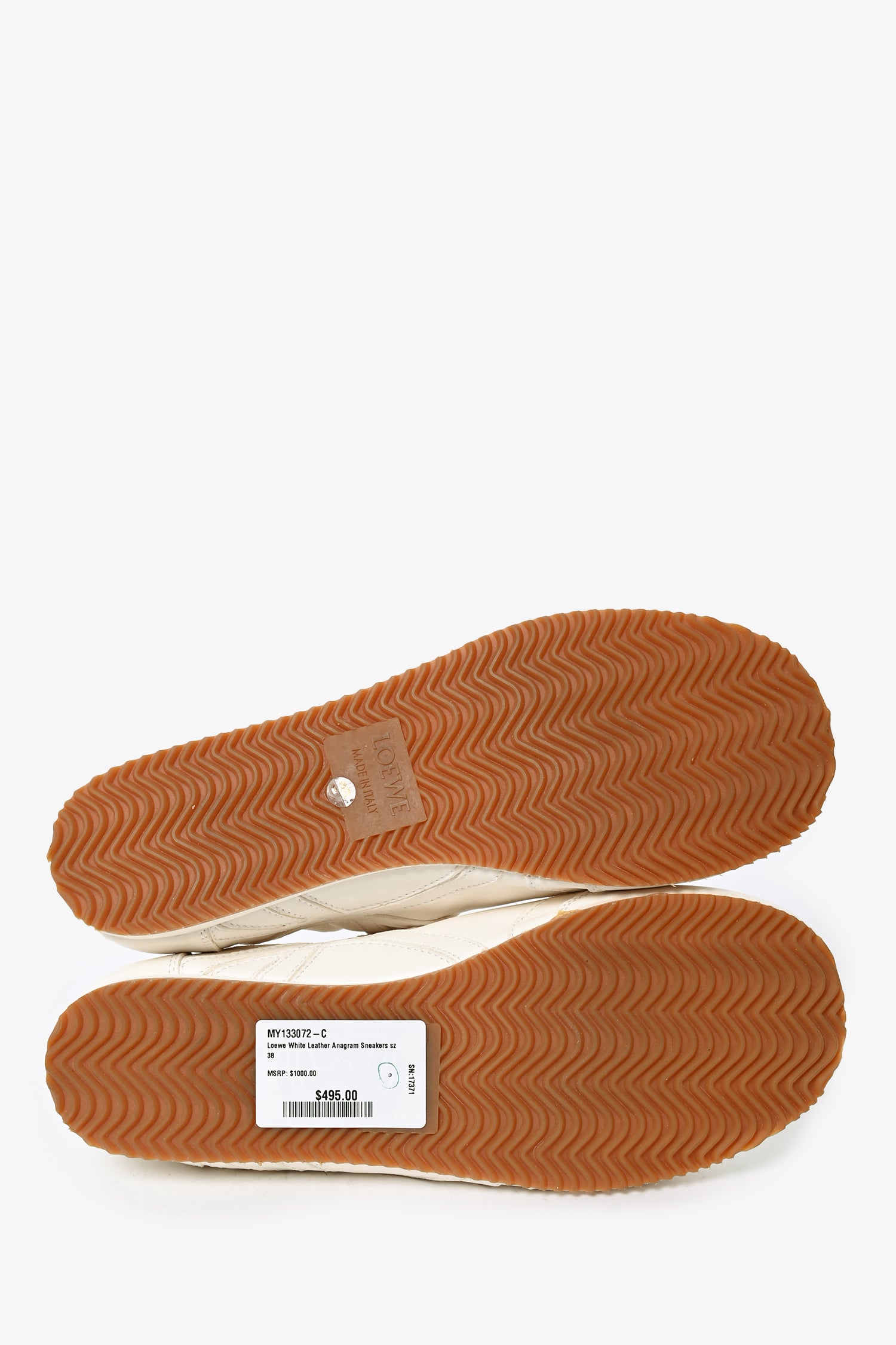Refresh availabilityLoewe White Leather Anagram Sneakers. Lace-up front closure. Tonal stitching. Loewe anagram logo on shoe tongue. Comes with dust bag.