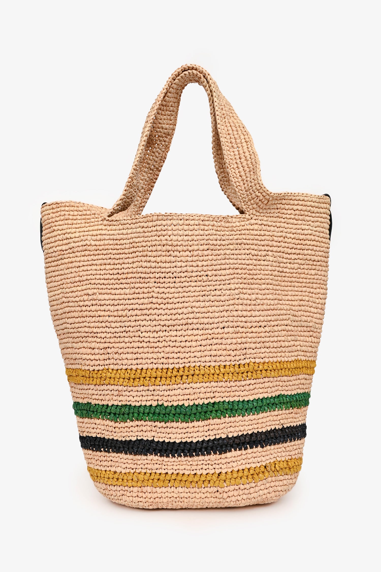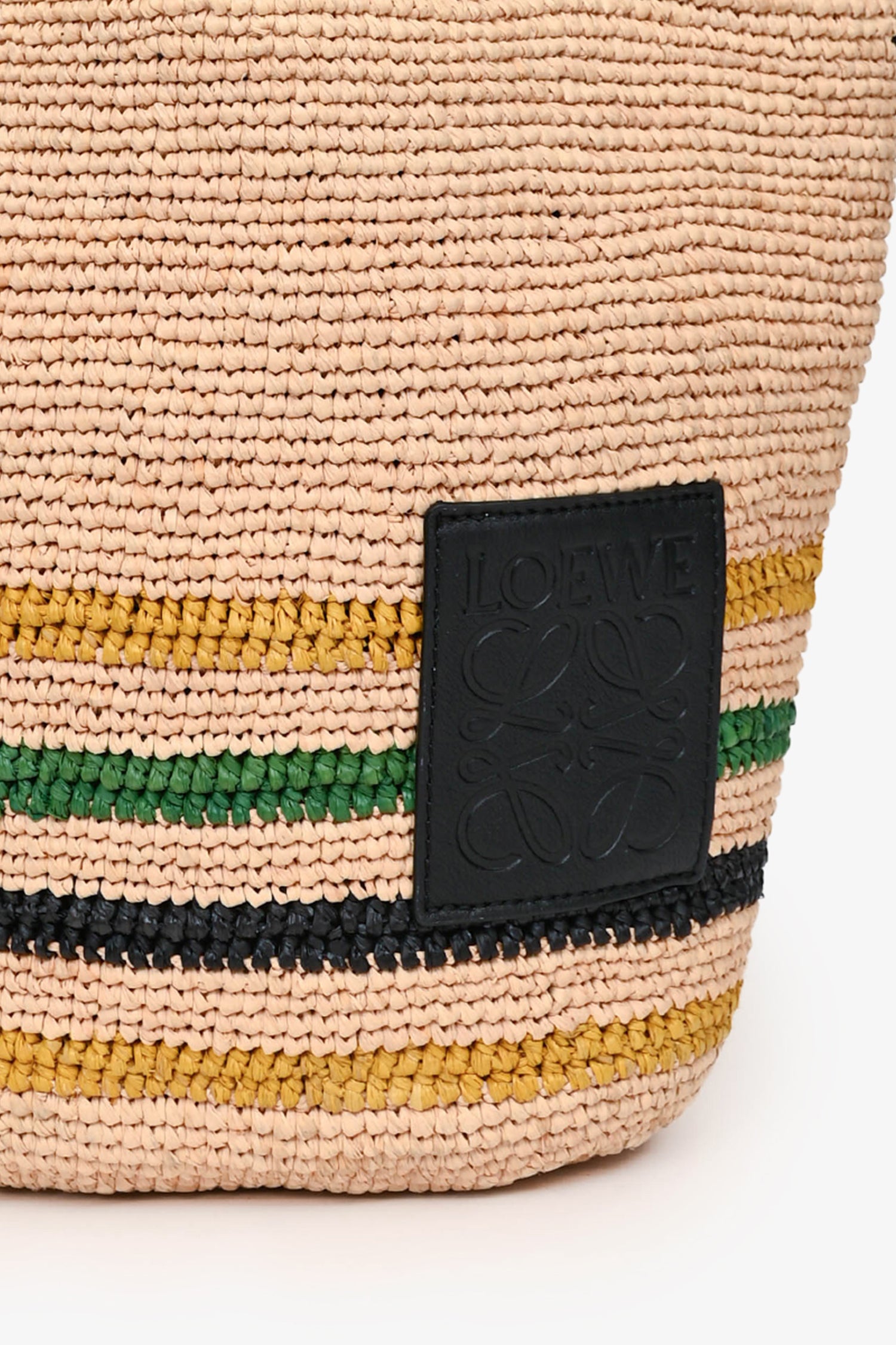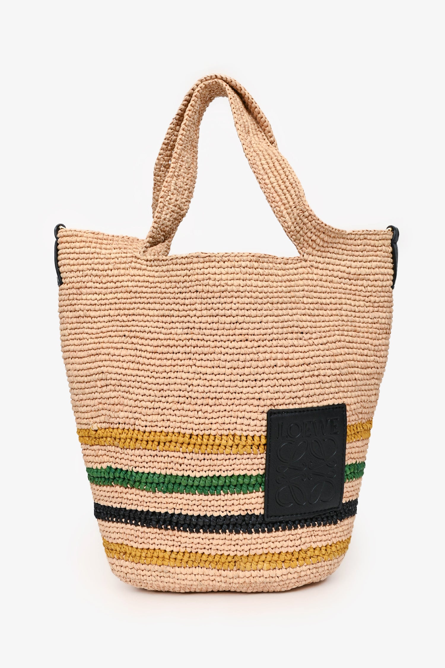 Refresh availabilityLoewe X Paula Ibiza Brown/Green Loewe Logo Crossbody with Strap. Embossed Loewe logo on front. Dual top handles. Detachable and adjustable black canvas crossbody strap. Open top. Unlined interior. Gold-tone hardware. Tonal stitching.