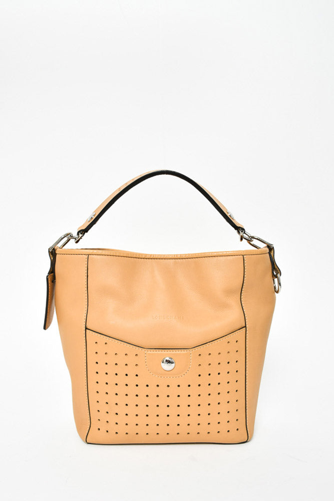 Longchamp Tan Perforated Leather Small "Mademoiselle" Bucket Bag