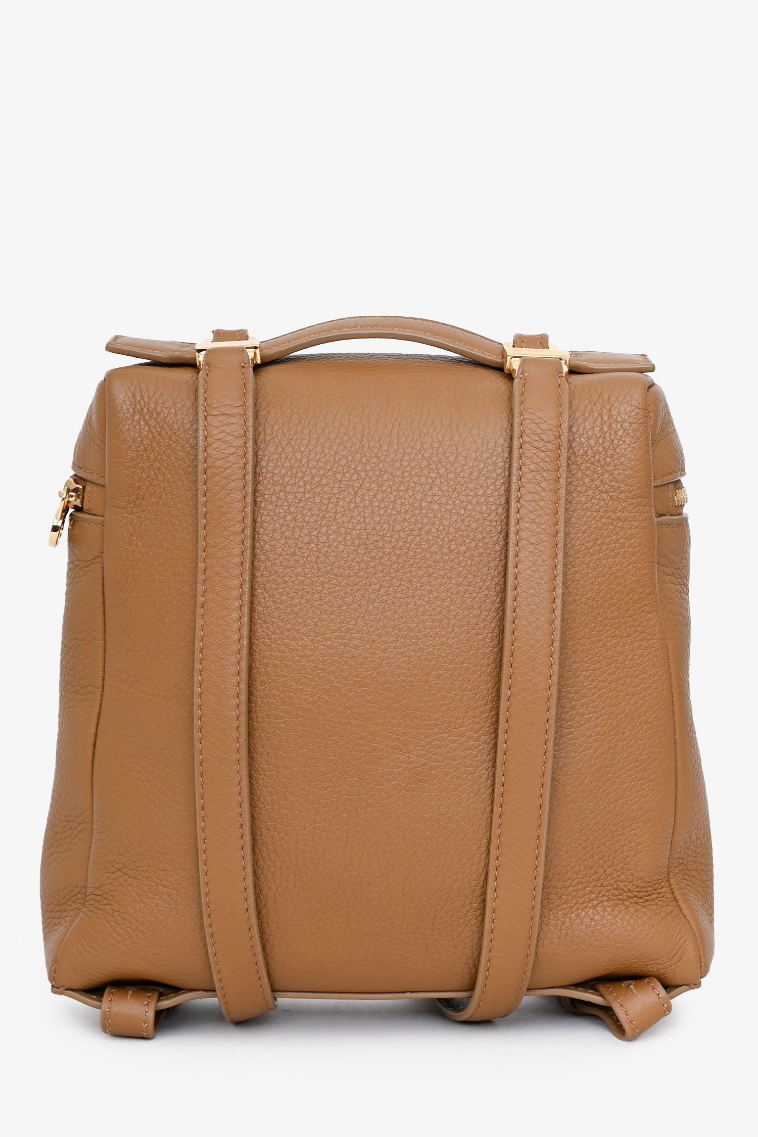 Loro Piana Brown Grained Leather Extra Pocket Backpack with Strap