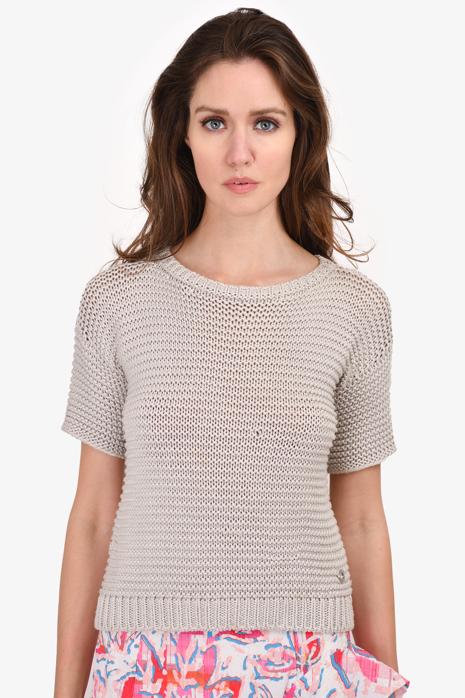 Refresh availabilityLoro Piana Grey Silk/Cotton Knit Top. Round neck. Pull-on.
