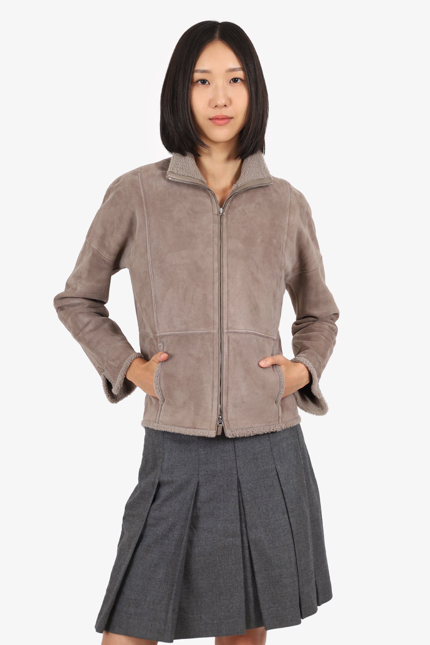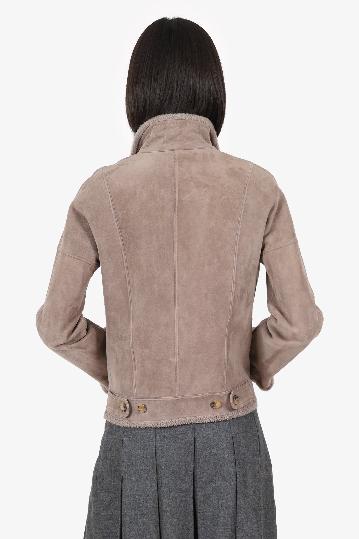 Loro Piana Taupe Suede/Shearling Zip-up Jacket Size 38