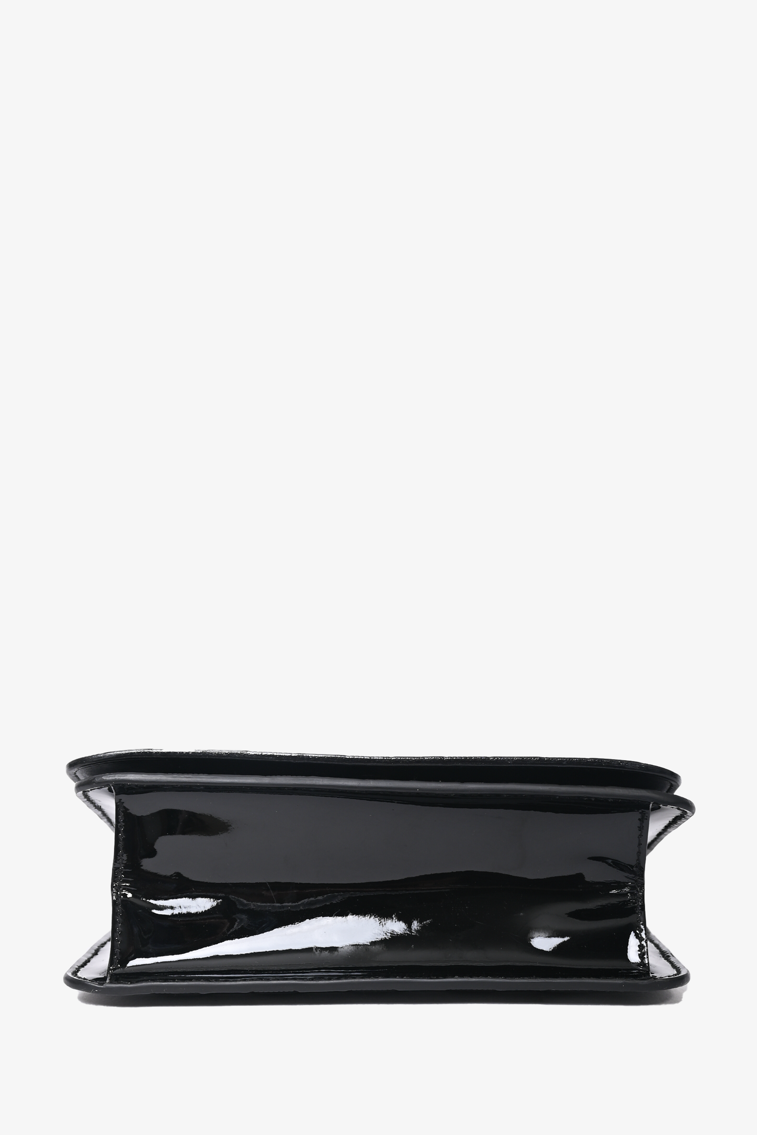 Condition: This item is in fair pre-loved condition. Staining lining. Scratched hardware. Repaired; right side of patent leather fully replaced.
