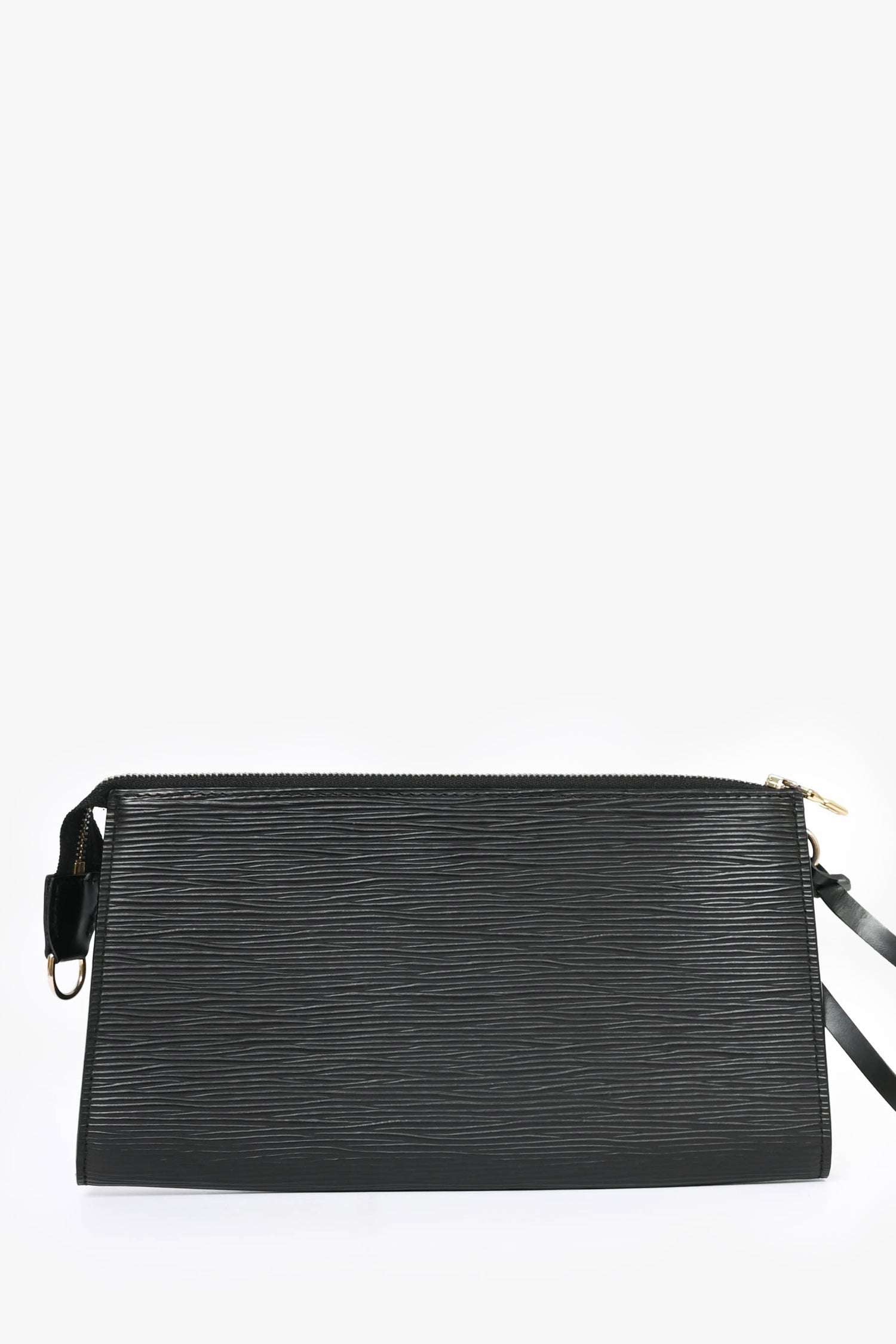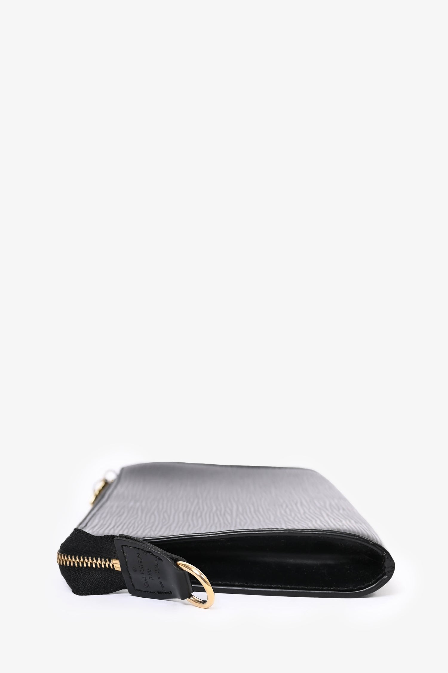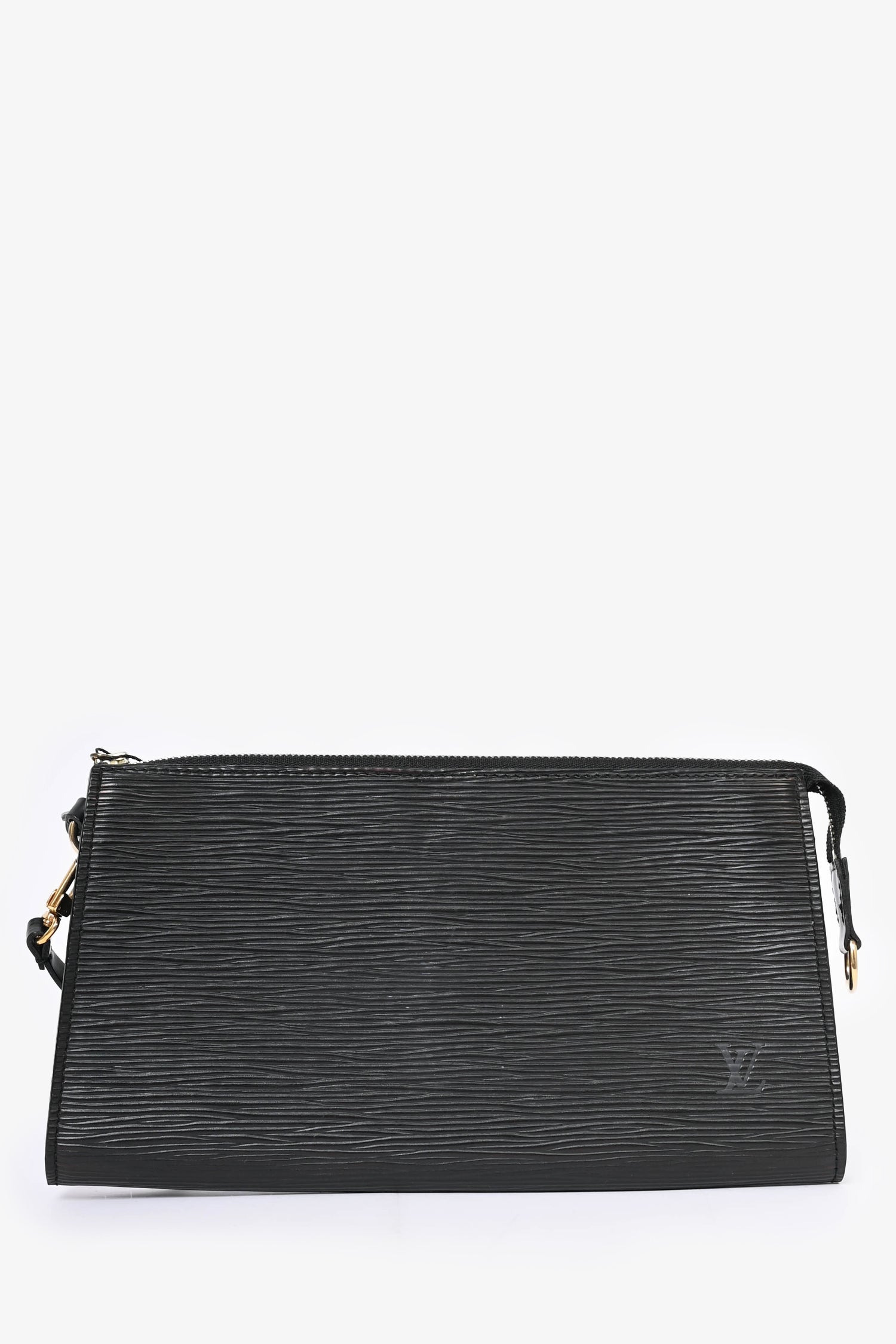Refresh availabilityLouis Vuitton 2003 Black Epi Leather Pochette. Gold-tone hardware. Tonal stitching. Zipped closure. Suede lined interior.