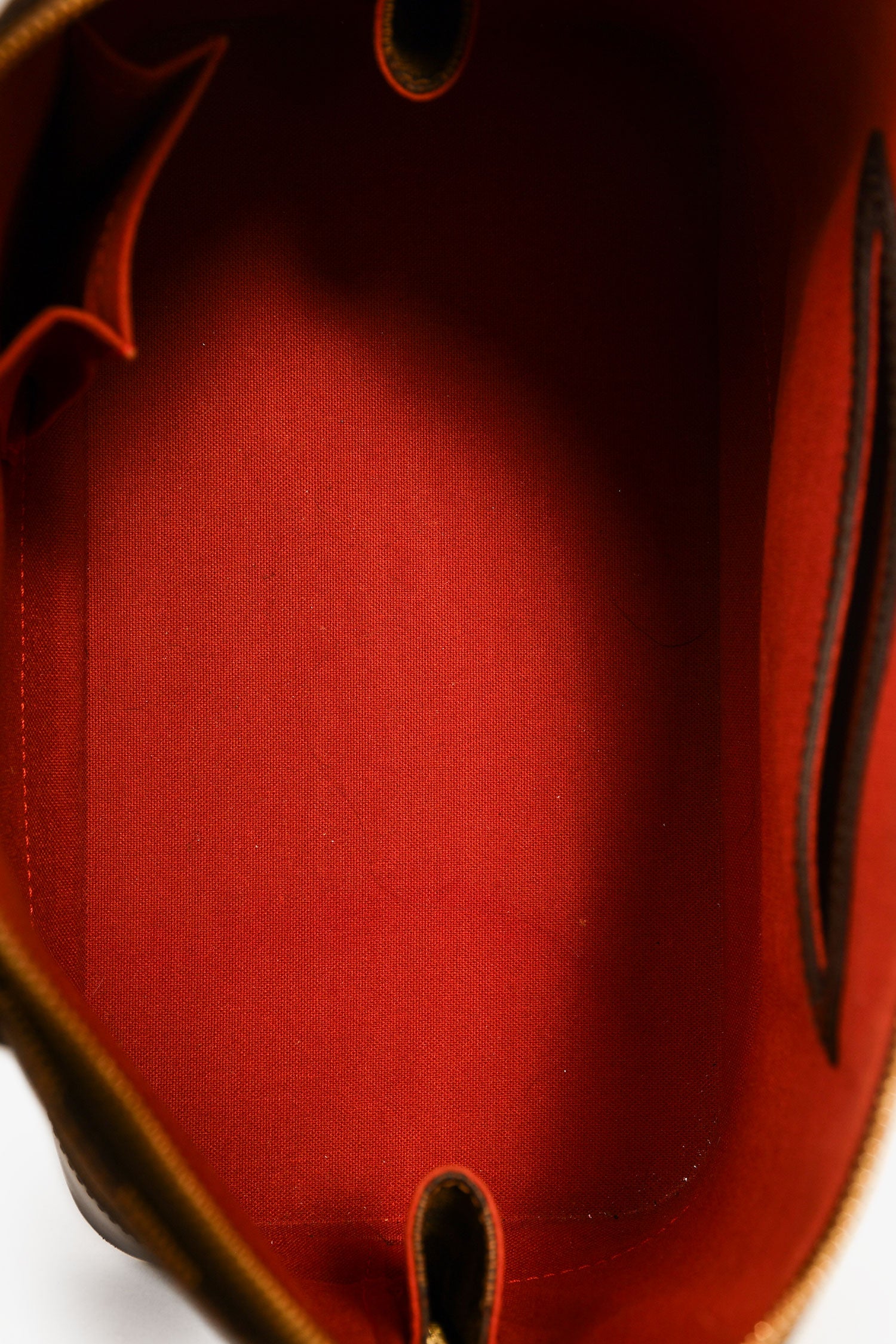 Condition: This item is in good pre-loved condition with minor scratches on hardware. Minor stains and scratches throughout the exterior leather, bottom exterior and edges.