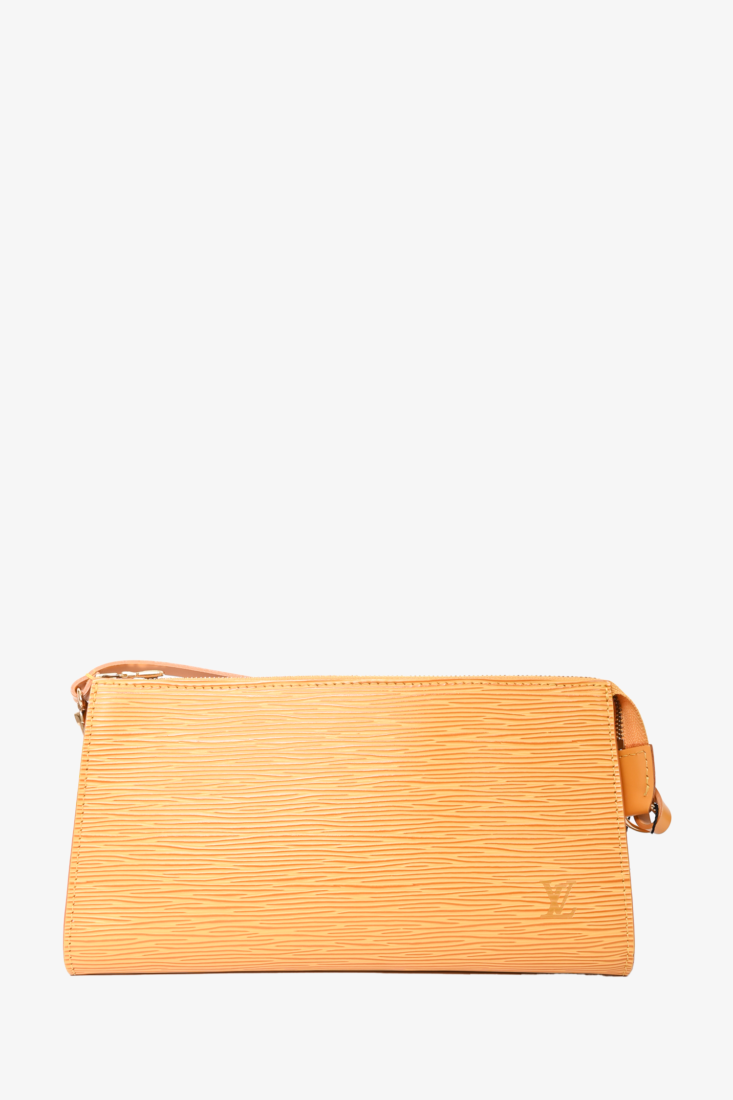 Refresh availabilityLouis Vuitton 2003 Yellow Epi Pochette. Top zip closure. Gold-tone hardware. Tonal stitching.