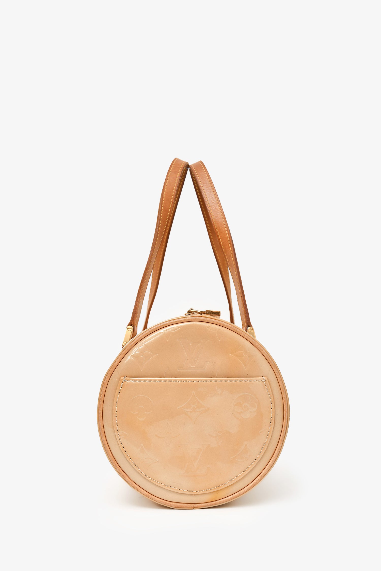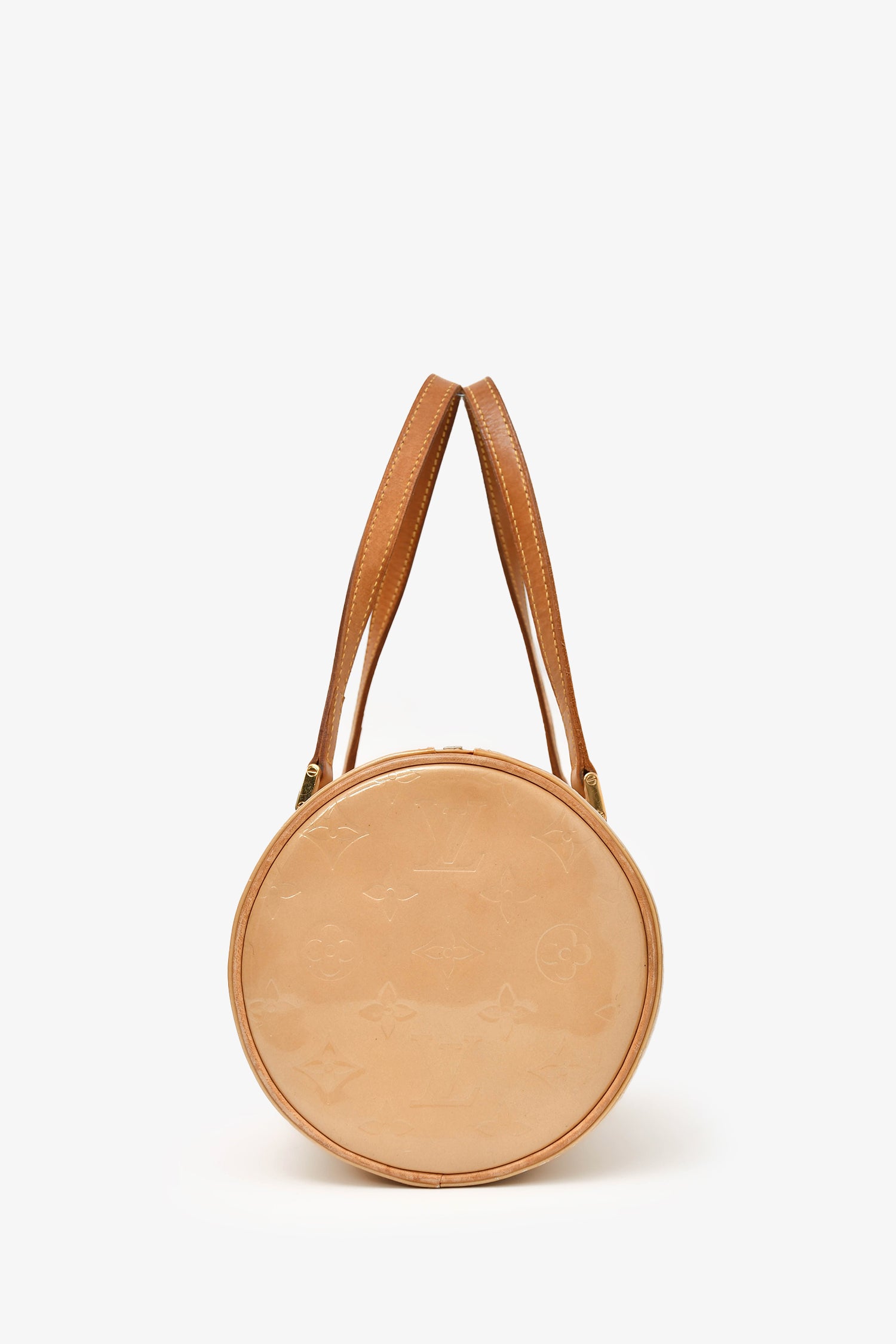 Refresh availabilityLouis Vuitton 2004 Beige Patent Leather Monogram Papillon Shoulder Bag. Top zipper closure. Top handles. Small exterior pocket. Gold-tone hardware. Tonal stitching.