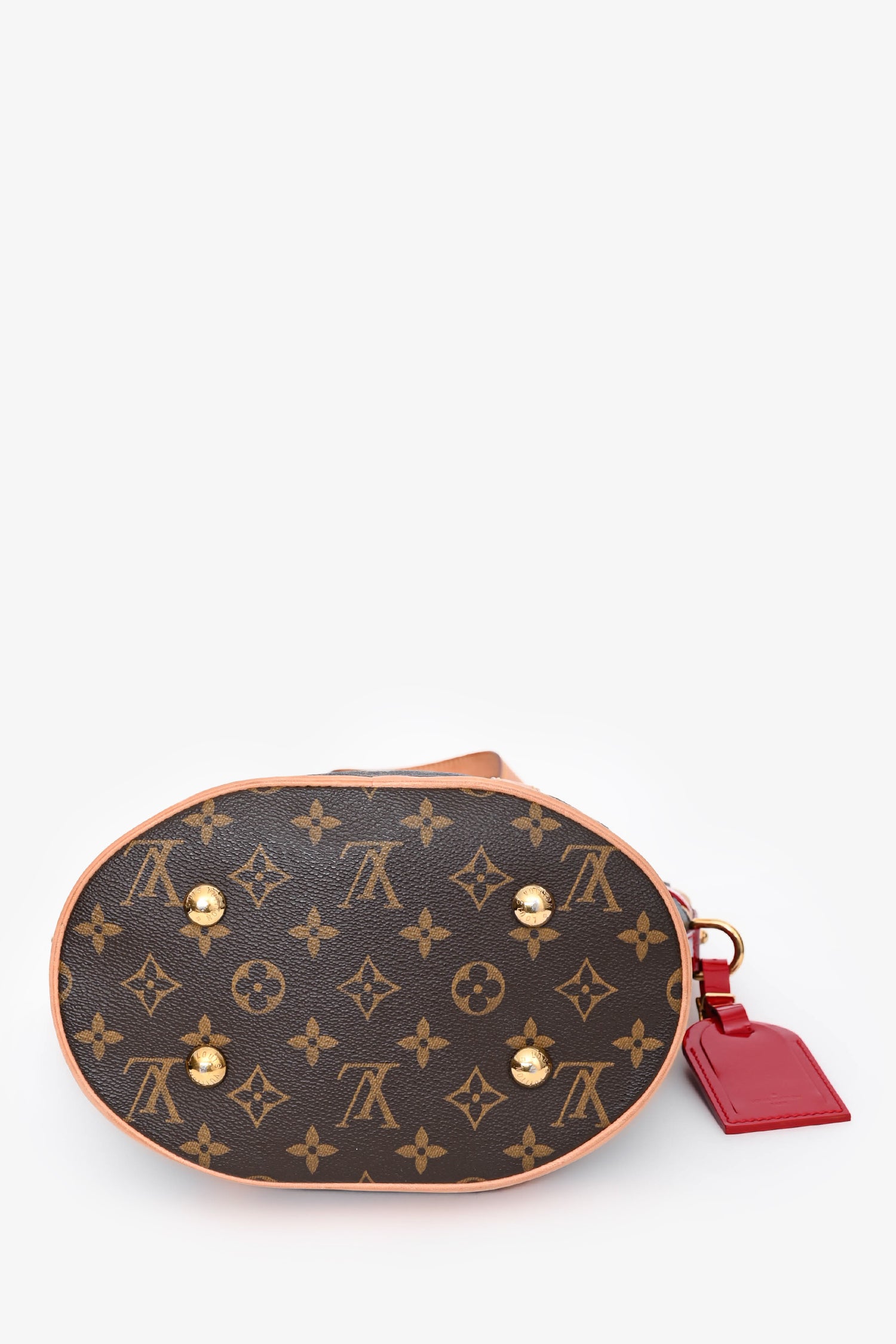 Refresh availabilityLouis Vuitton 2007 Limited Edition Brown/Red Monogram Neo Bucket Bag. Dual handles. Open top. Red textile interior lining. Single interior wall zip pocket. Gold-tone hardware. Detachable glossy luggage tag. Gold-tone hardware. Studded metal bottom.