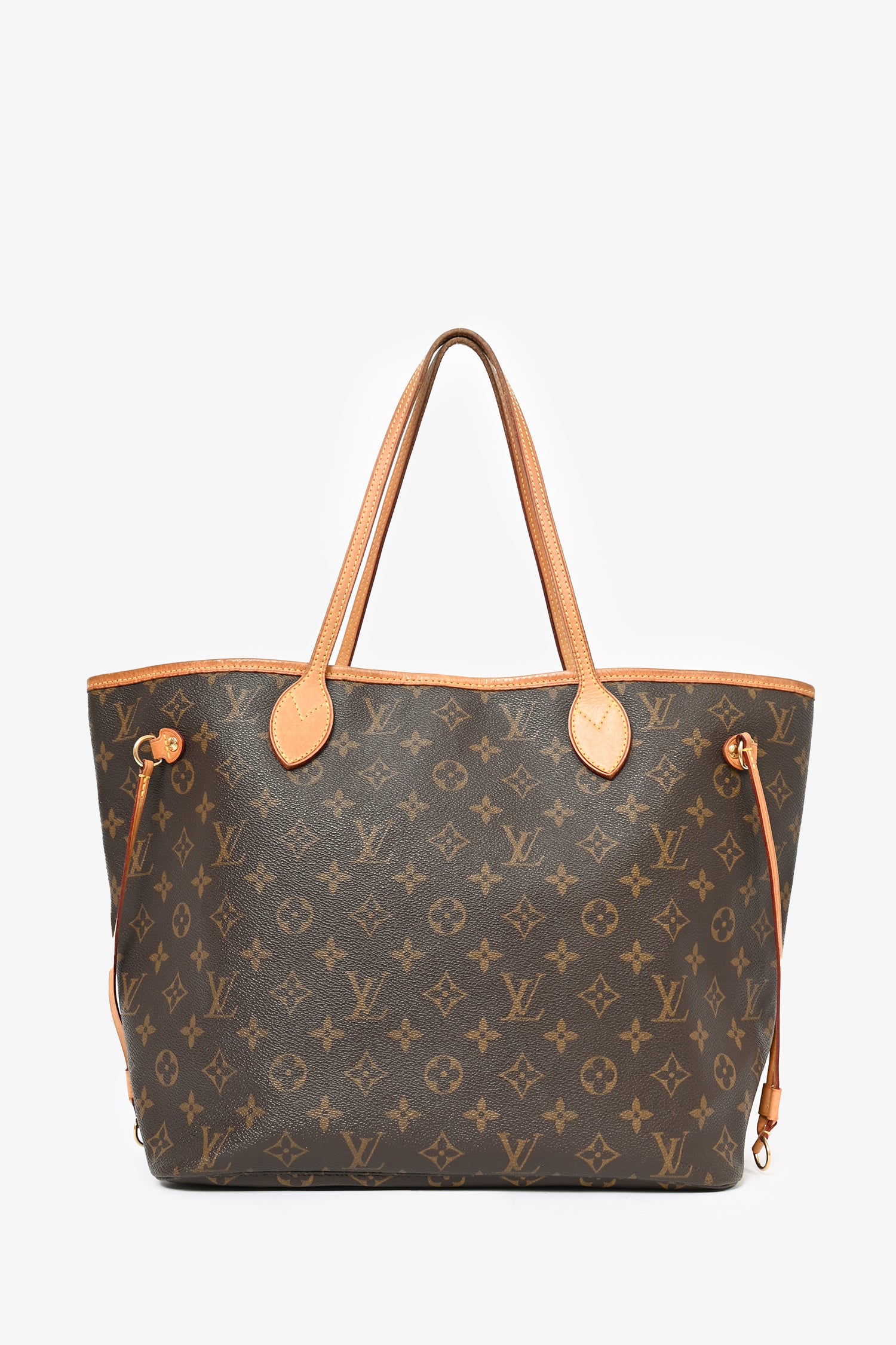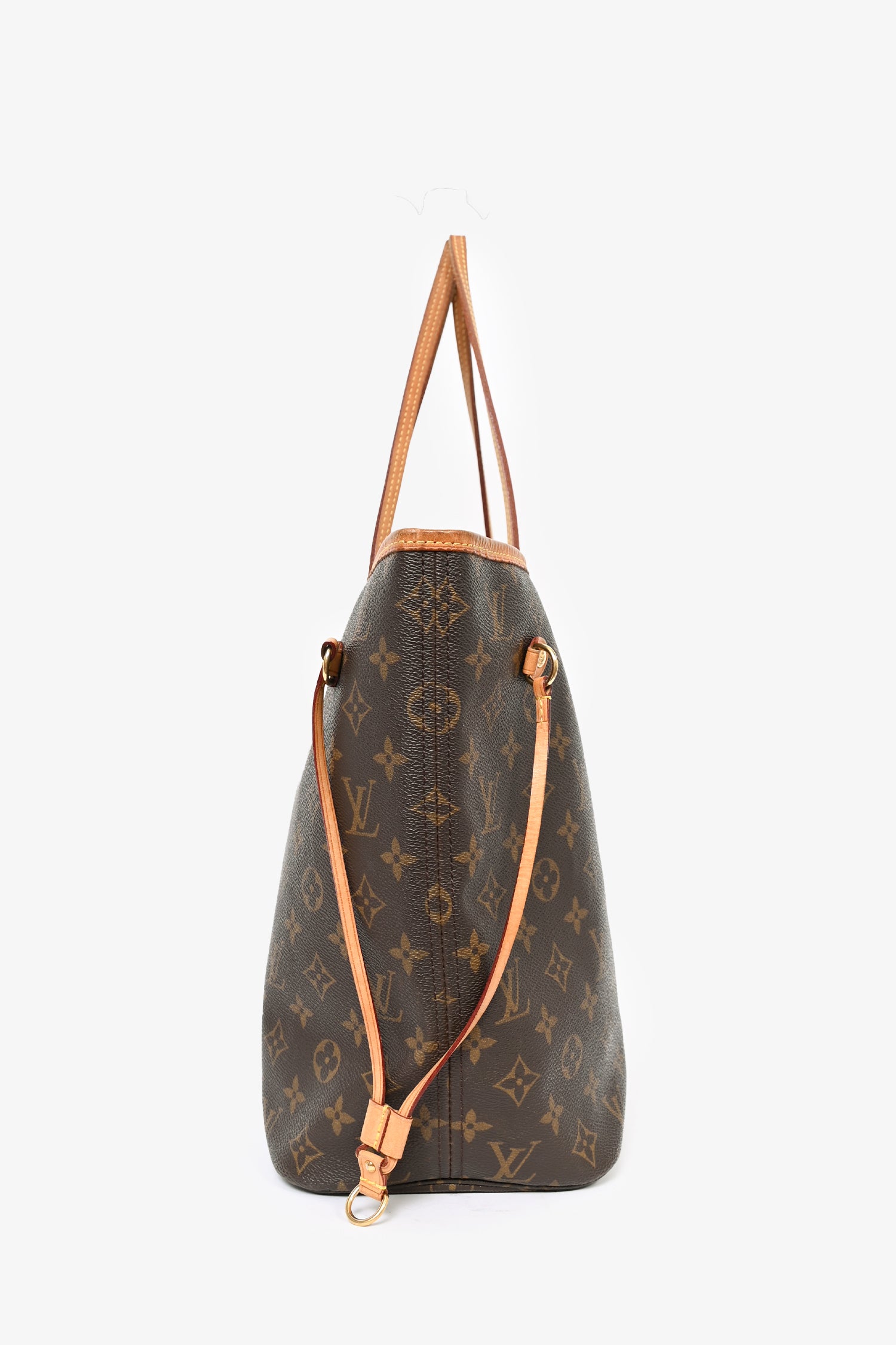 Refresh availabilityLouis Vuitton 2009 Monogram Neverfull MM Tote Bag. Coated monogram canvas. Flat handle straps with contrast stitching. Leather trimming. Lined interior with logo motif. Leather pull tabs at sides. Gold-tone hardware. Single interior pocket.