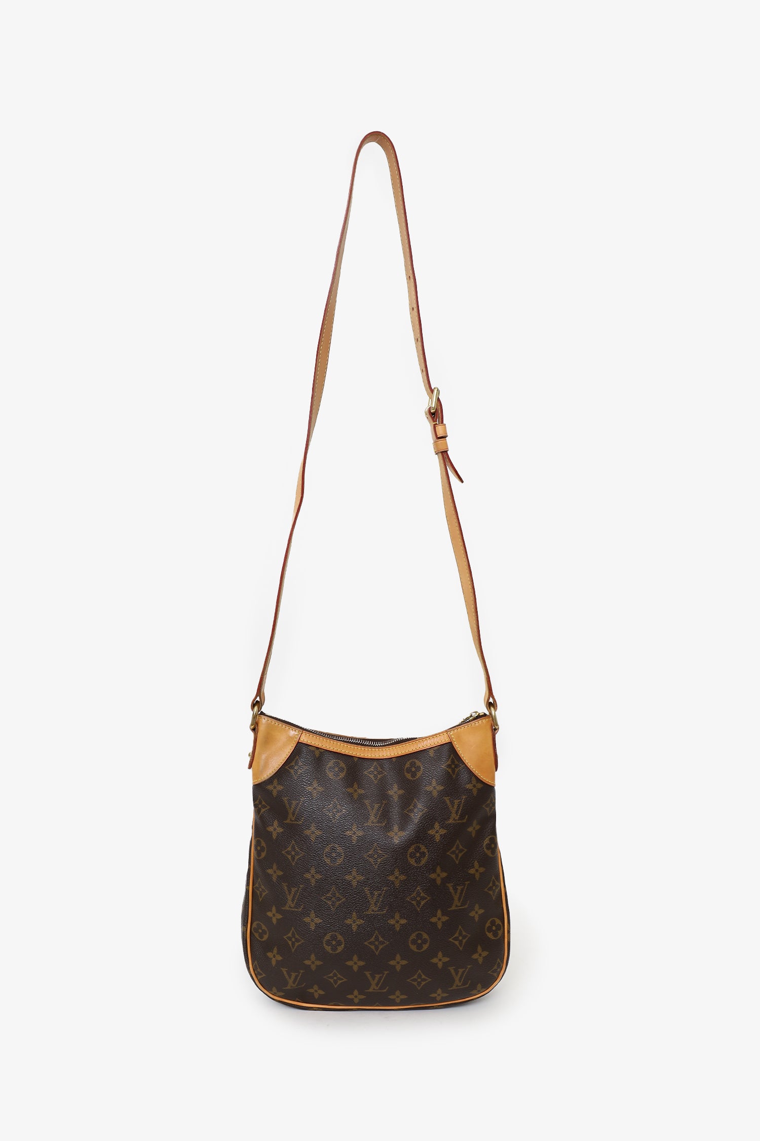 Refresh availabilityLouis Vuitton 2009 Monogram Odeon Crossbody Bag. Top zip closure. Strap with adjustable buckle closure. Lined interior. 2 interior slip pockets. Gold-tone hardware. Tonal and contrast stitching.