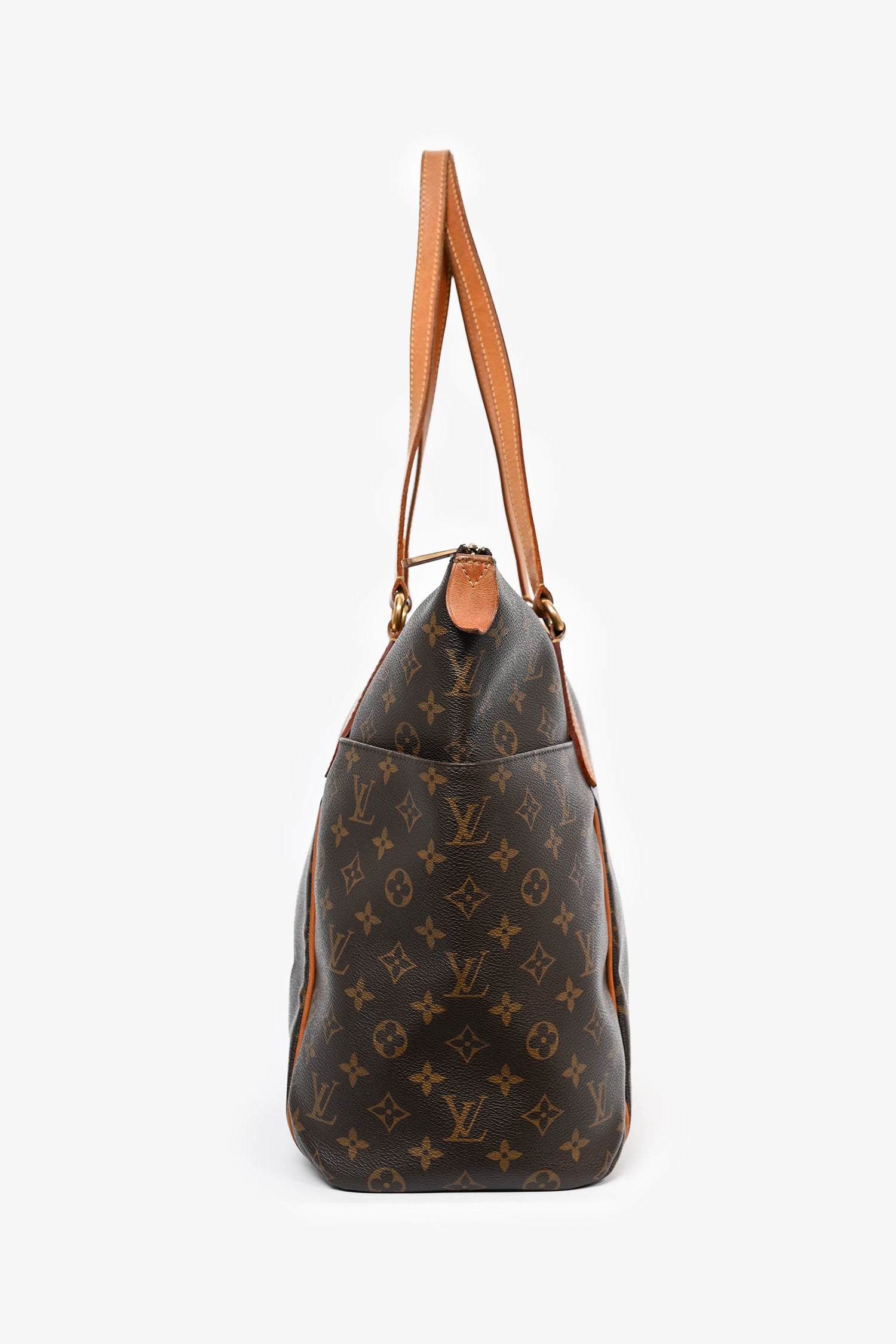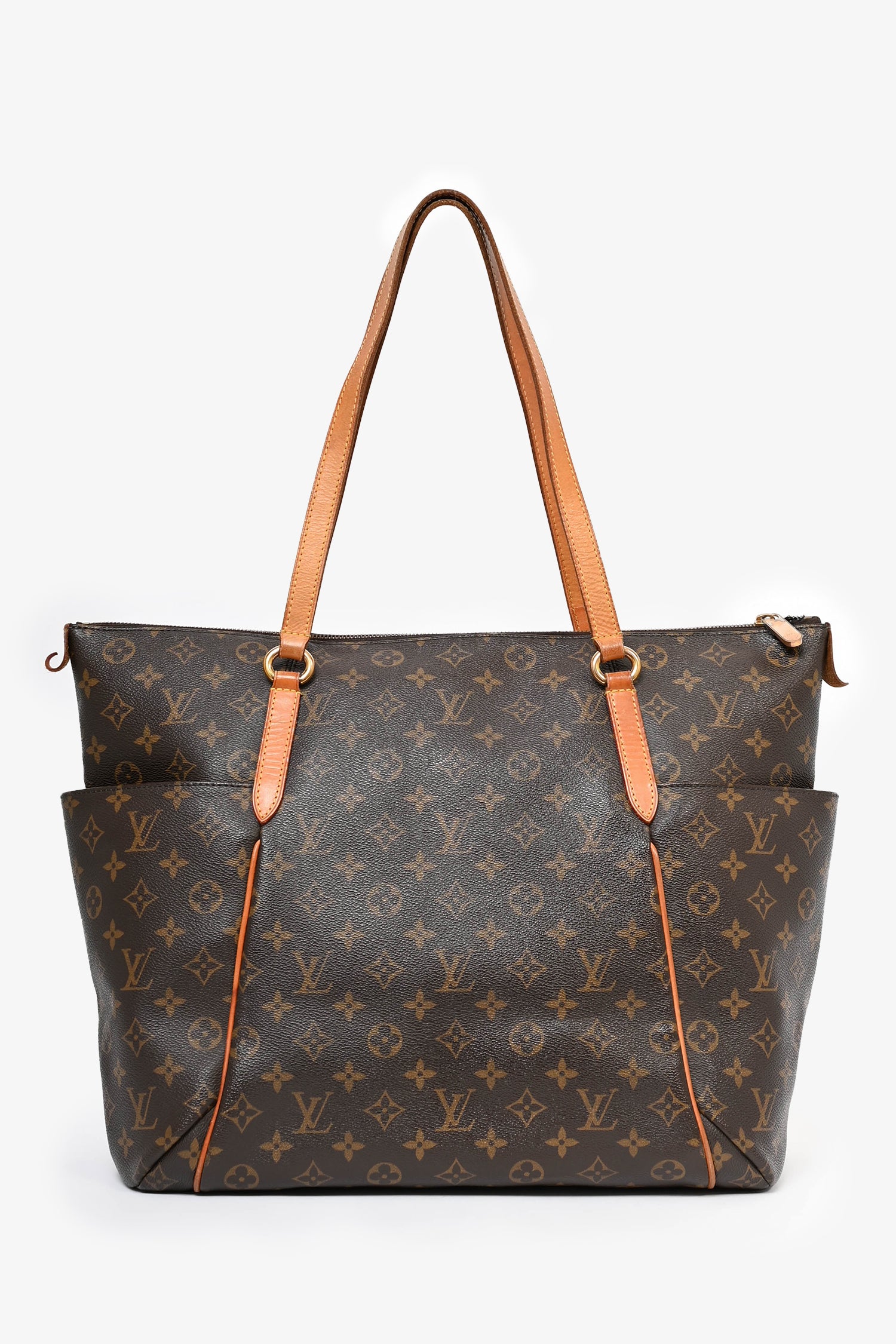 Refresh availabilityLouis Vuitton 2009 Monogram Totally MM Tote. Top zip closure. Dual handles. Brown textile interior lining. 3 interior wall slip pockets. Gold-tone hardware. Exterior side pockets.