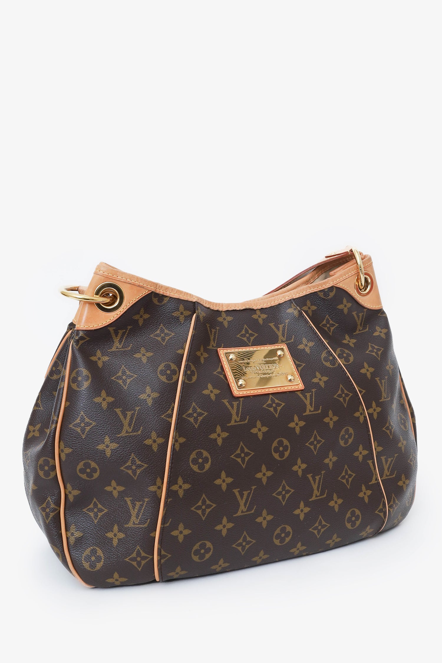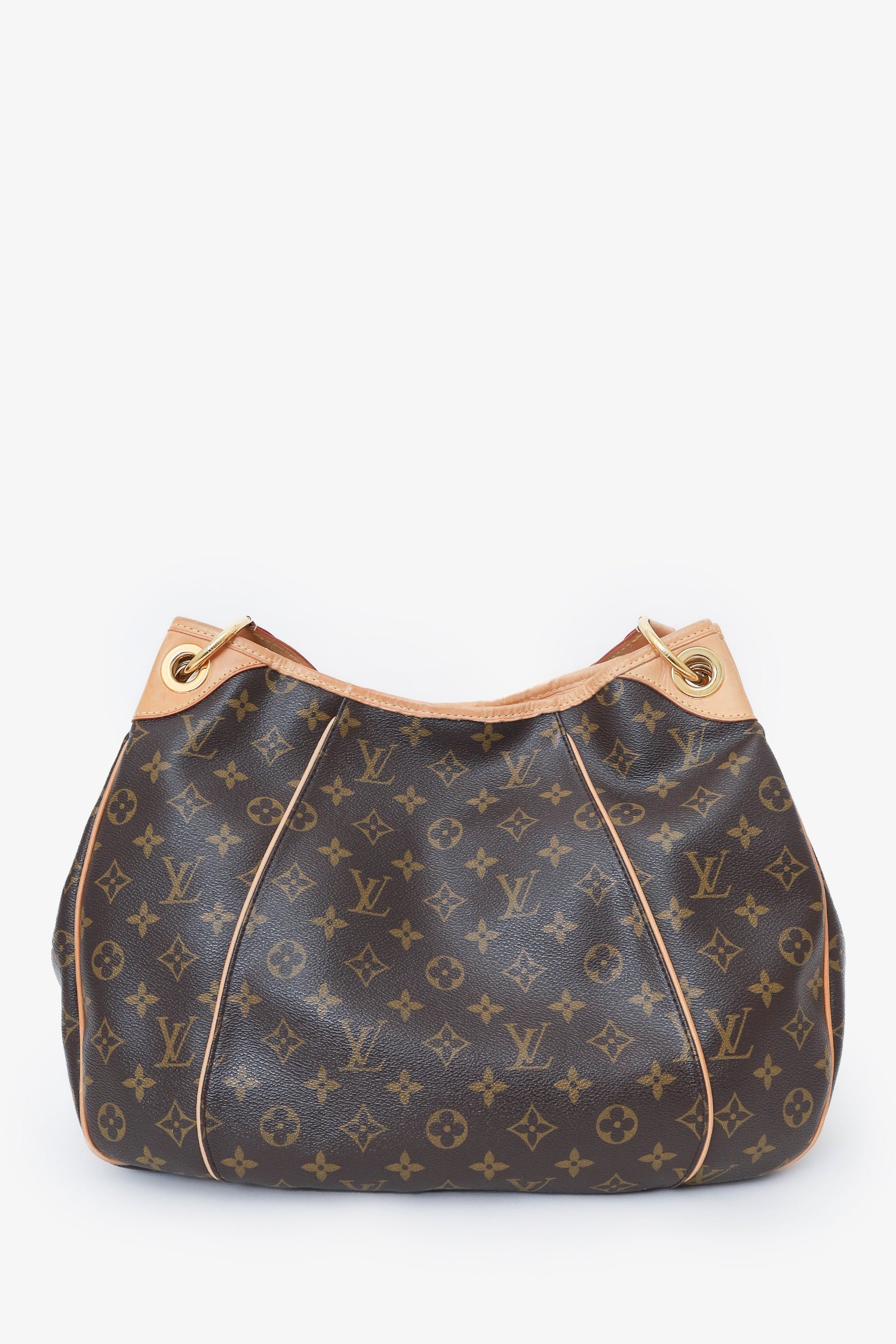 Refresh availabilityLouis Vuitton 2011 Monogram Galliera PM Bag. Adjustable top handle. Open top with single magnetic snap-button closure. 3 interior pockets on back wall; 2 slip and 1 snap-button closure. Protective studs on bottom. Gold-toned hardware. Tonal stitching.