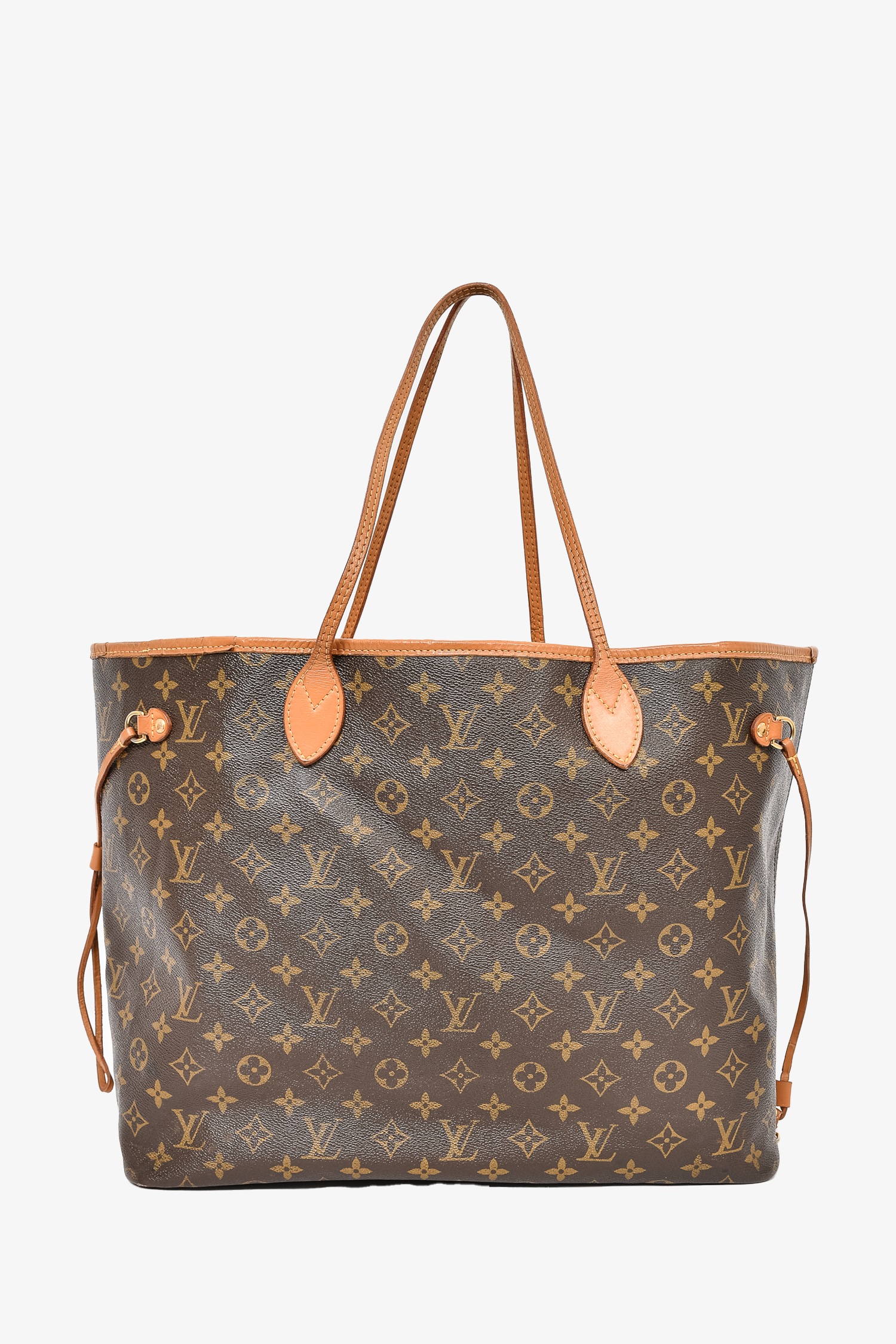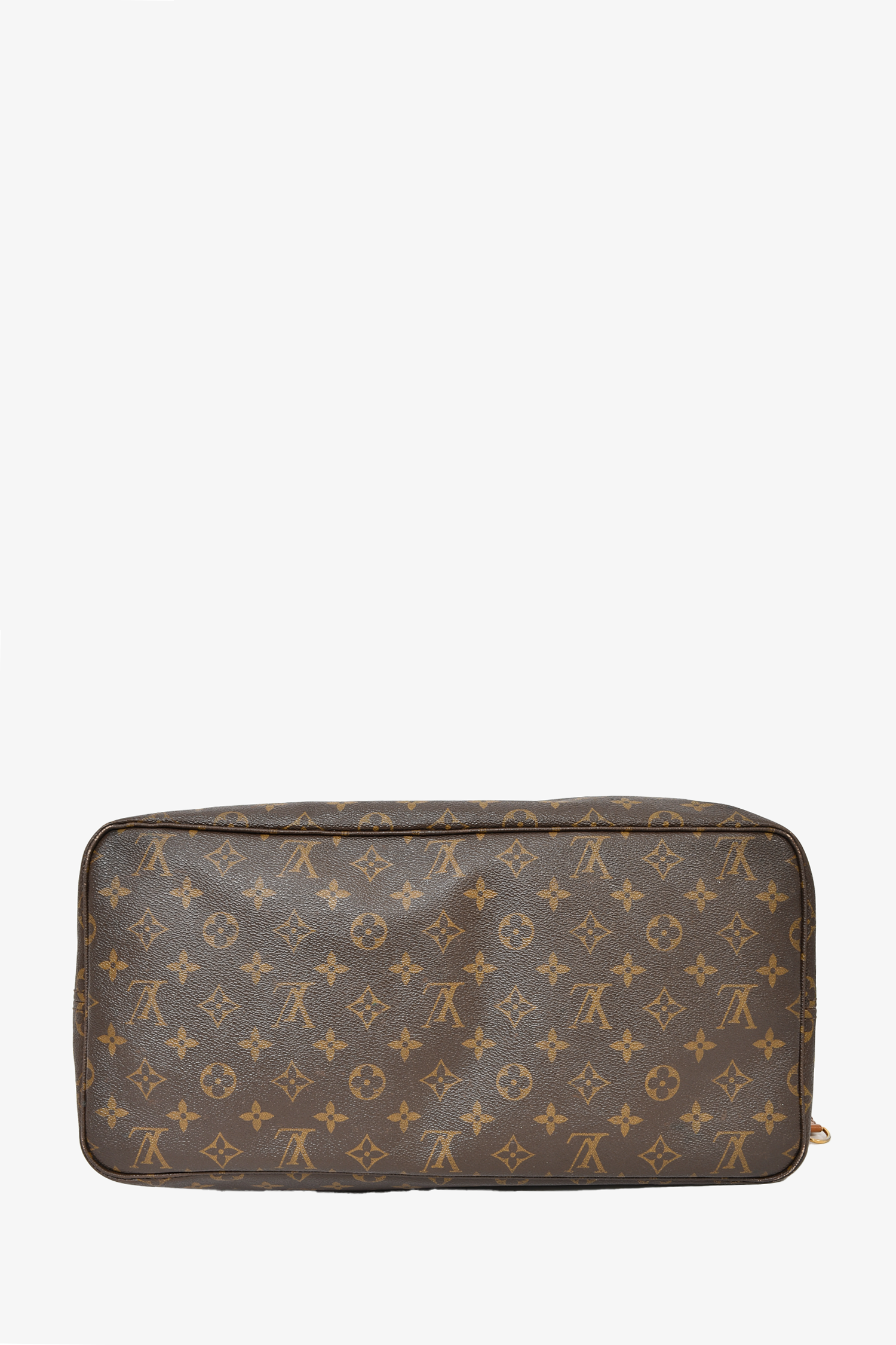 Refresh availabilityLouis Vuitton Monogram Neverfull GM. Twin handles. Top interior latch closure. Brown logo'd textile interior lining. Single interior wall zip pocket. Gold-tone hardware. Tonal stitching.