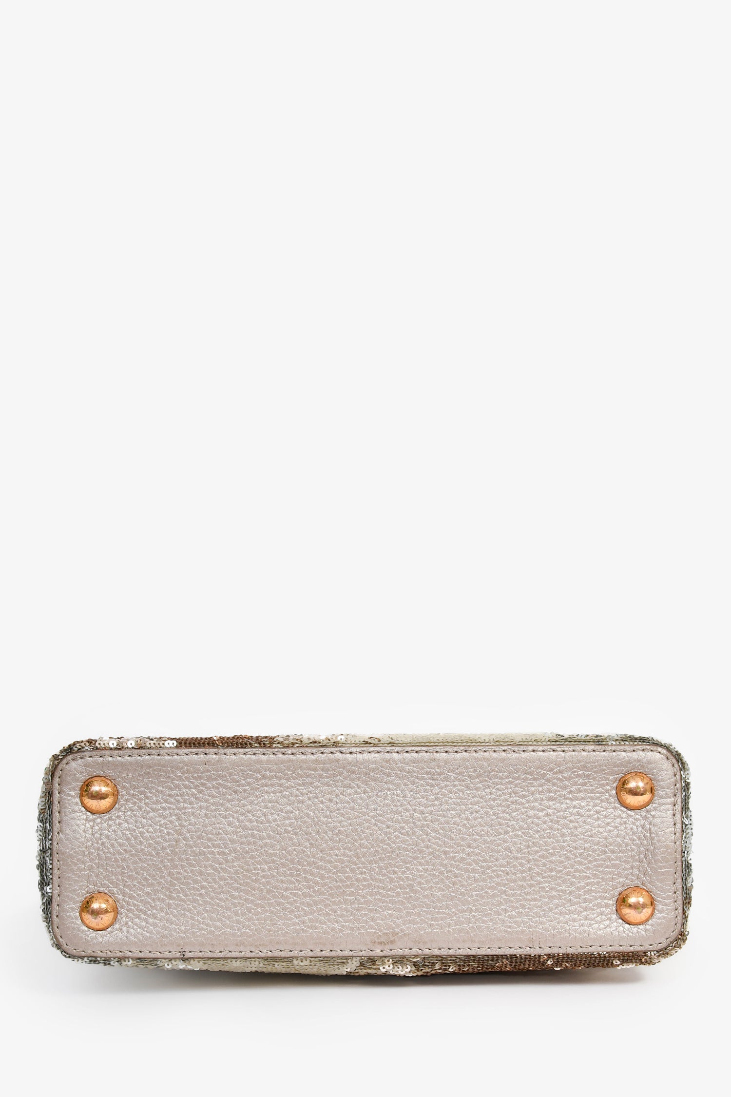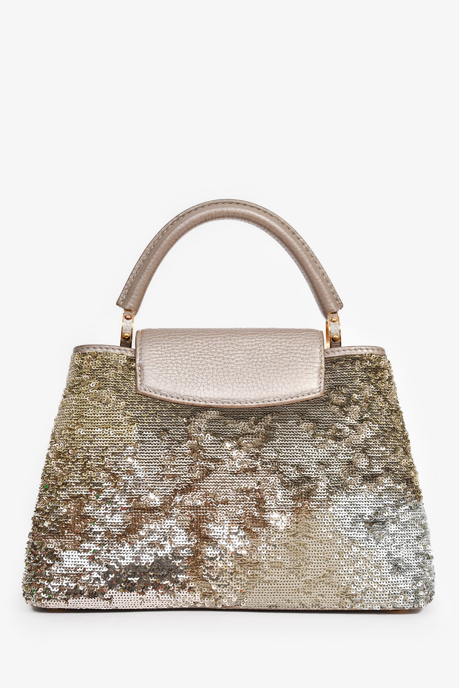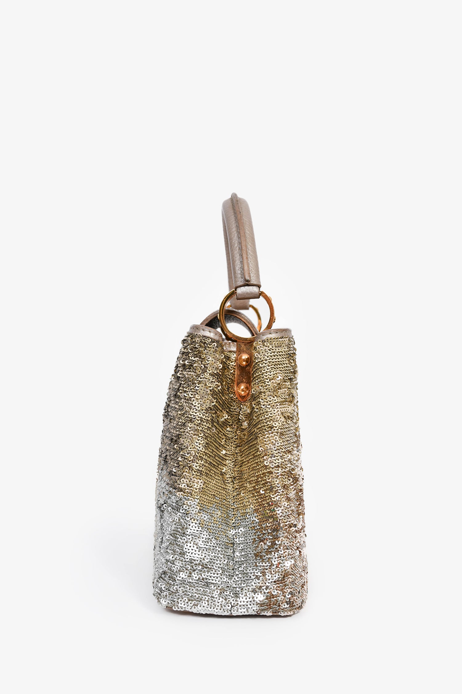 Louis Vuitton 2015 Beige Metallic Sequins Taurillon Capucines BB with Strap