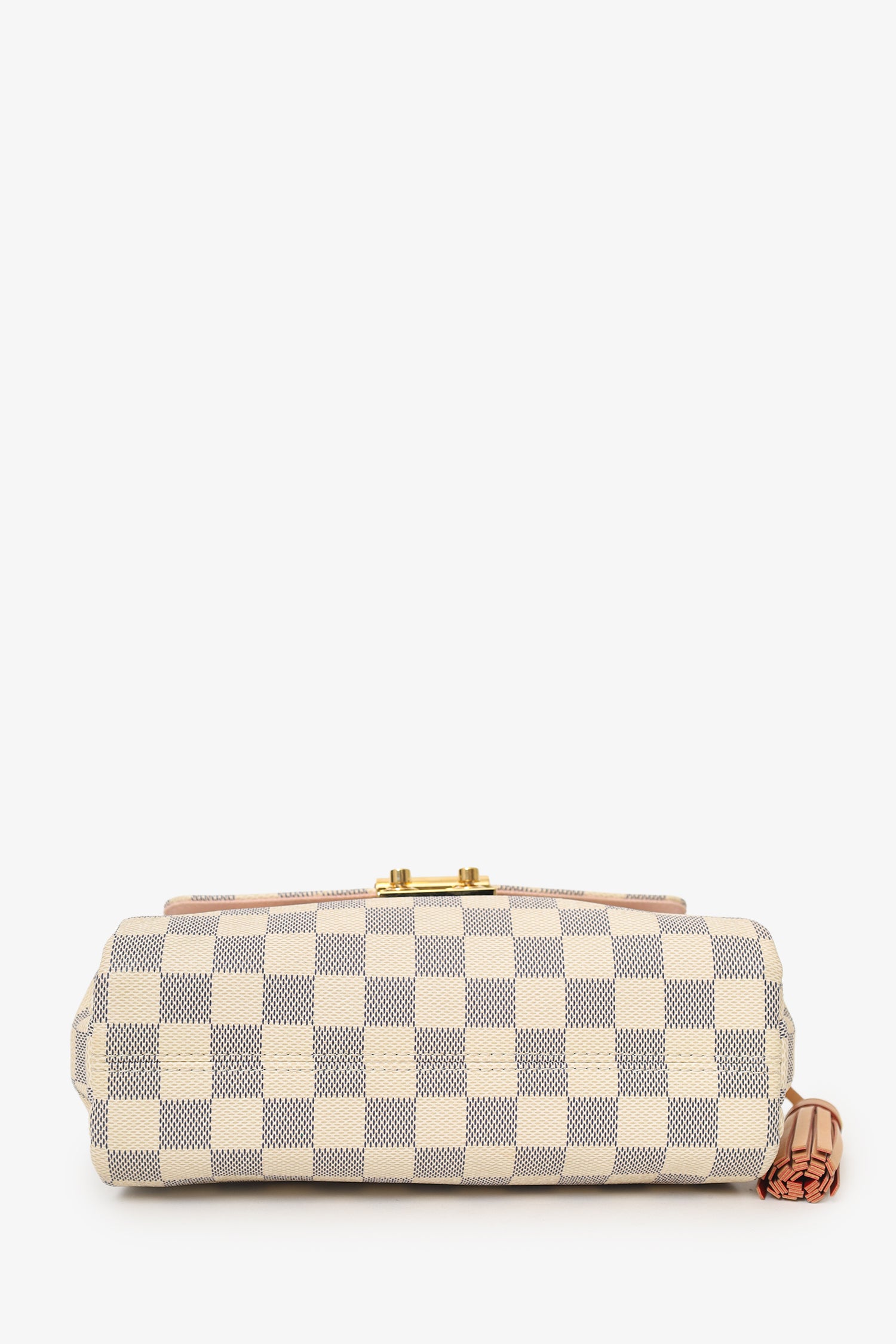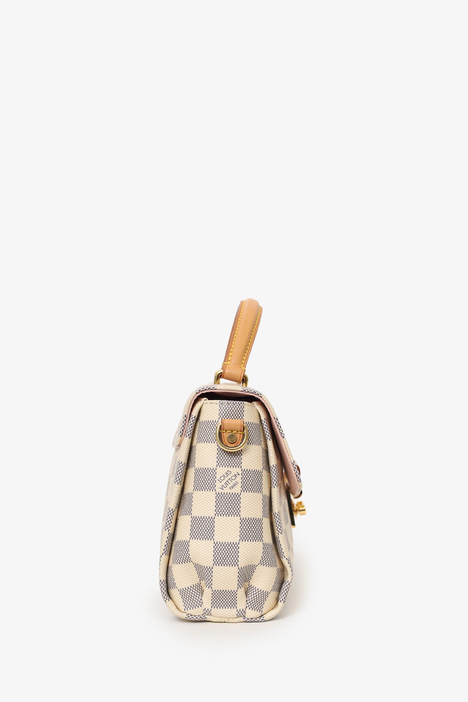 Refresh availabilityLouis Vuitton 2016 Damier Azur Croisette Top Handle. Front fold over flap with snap button closure. Single top handle. Single removable crossbody strap with clasp closure. Lined interior. Single rear wall slip pocket. Gold-tone hardware. Contrast and tonal stitching.