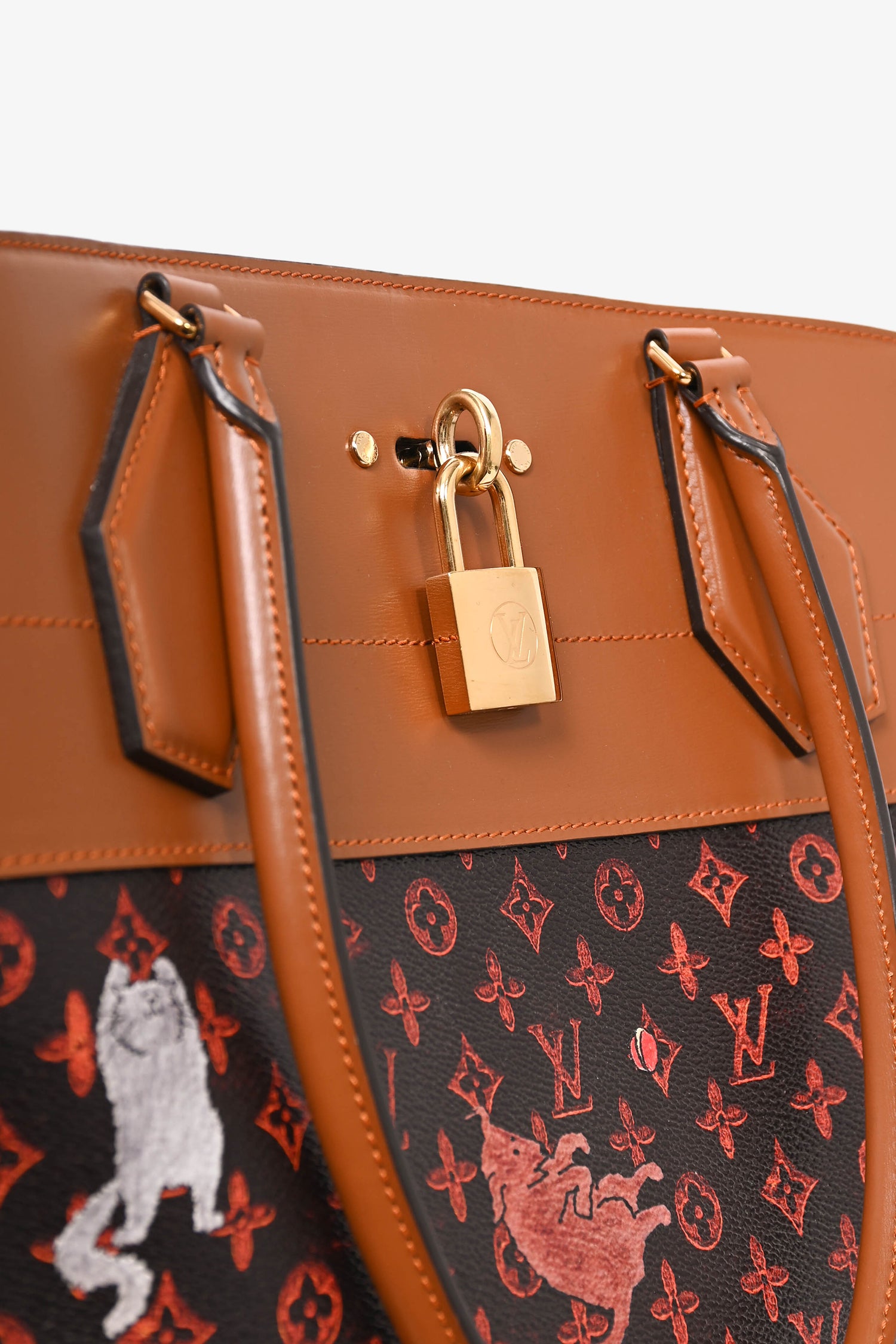 Refresh availabilityLouis Vuitton 2018 Limited Edition Brown Leather/Catogram City 'Steamer Cabas' Tote with Pouch XXL. Dual rolled handles. Interior latch closure. 2 interior wall slip pockets. Detachable zip pouch. Silver-tone hardware. Tonal stitching.