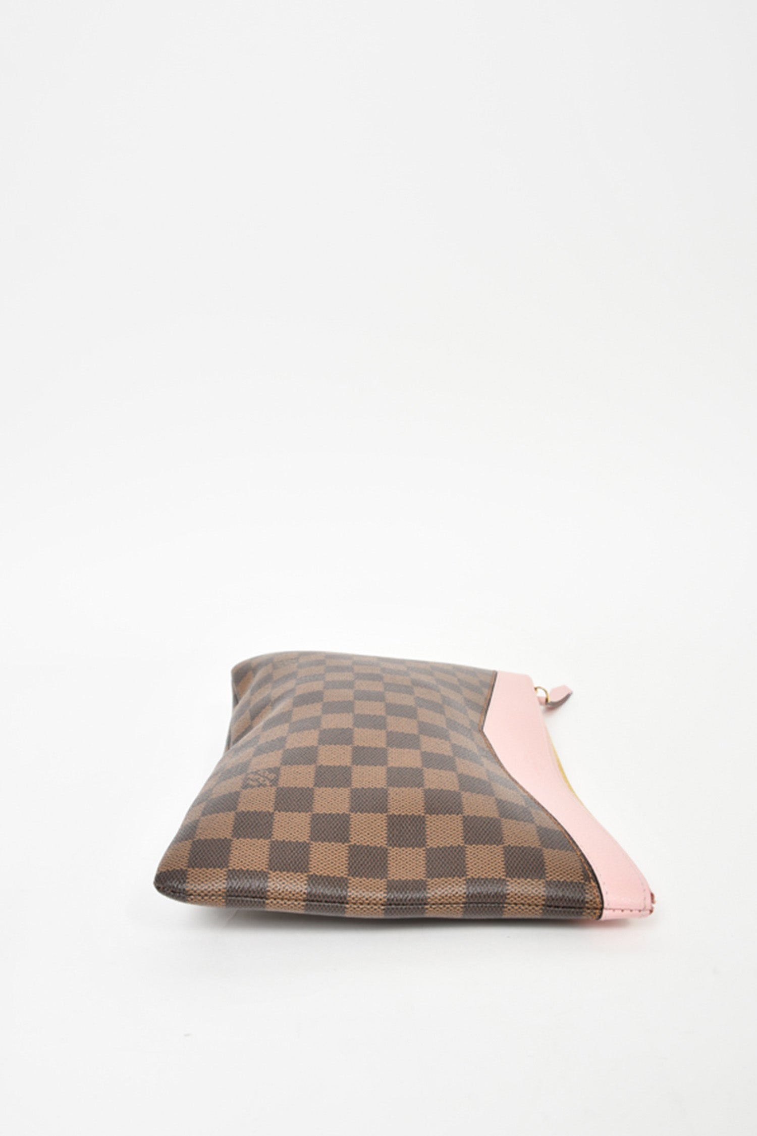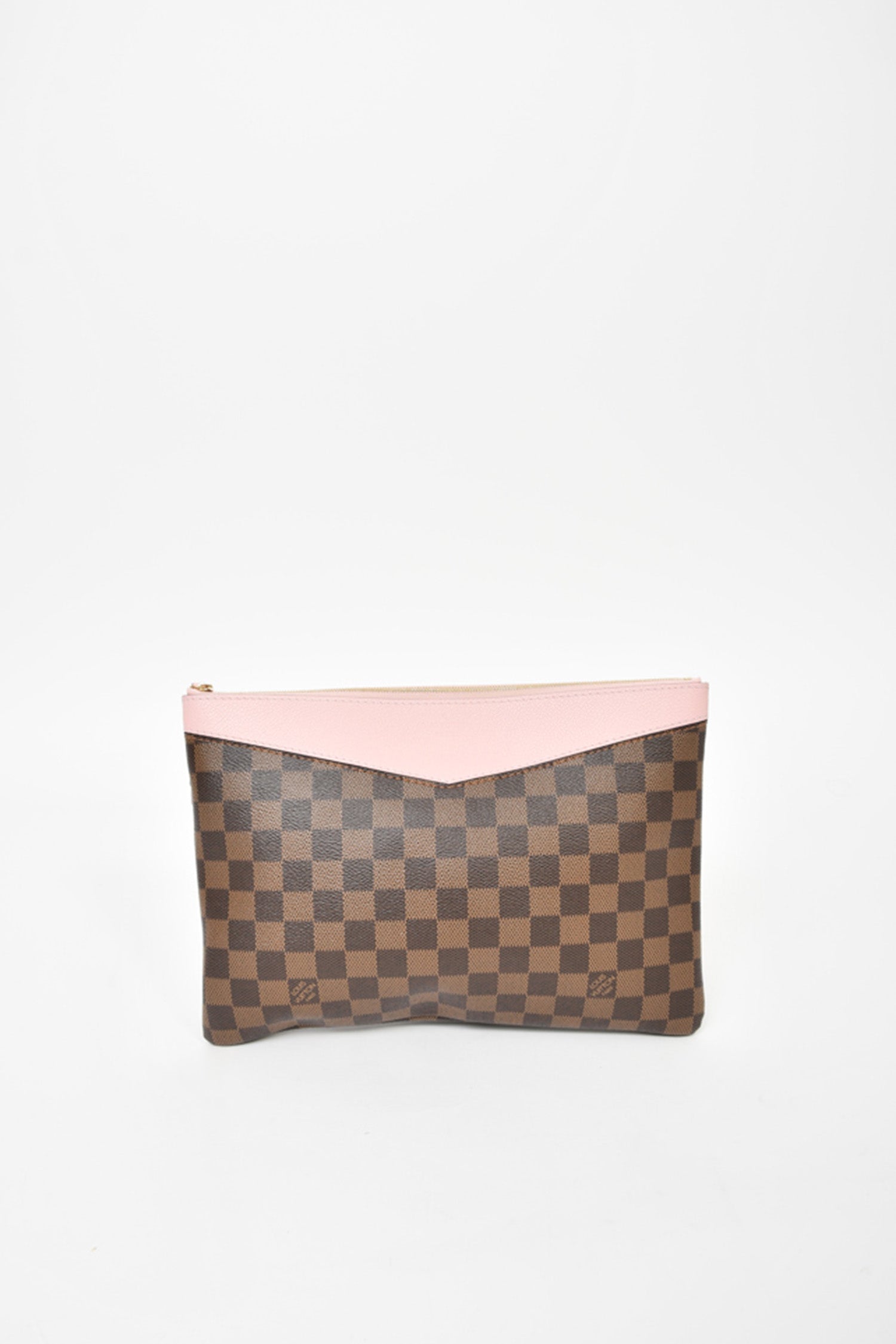 Refresh availabilityLouis Vuitton 2020 Damier Ebene/Pink Leather 'Daily' Zip Pouch. Top zip closure. Single interior wall slip pocket. Gold-tone hardware. Tonal stitching.