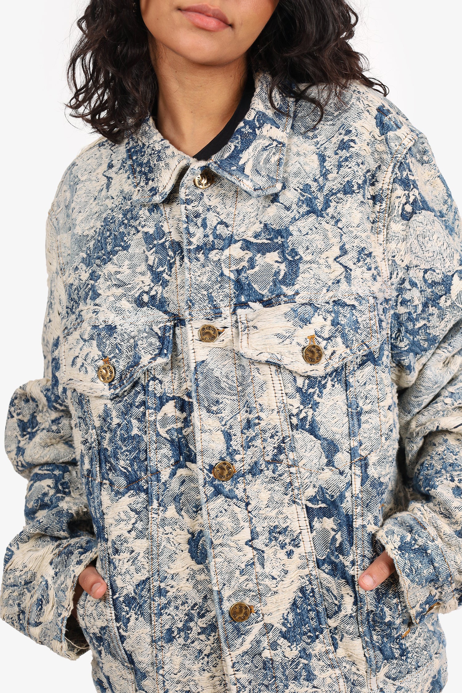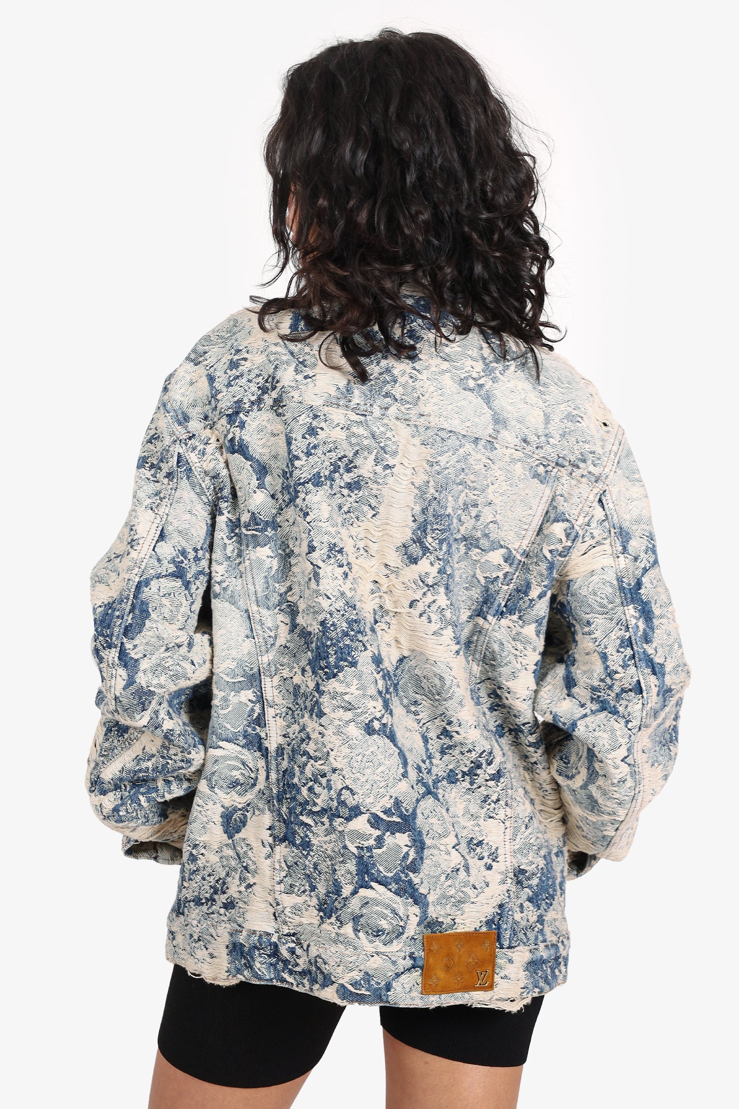 Louis Vuitton 2022 Blue Distressed Denim Floral Tapestry Denim Jacket Size 50 Mens