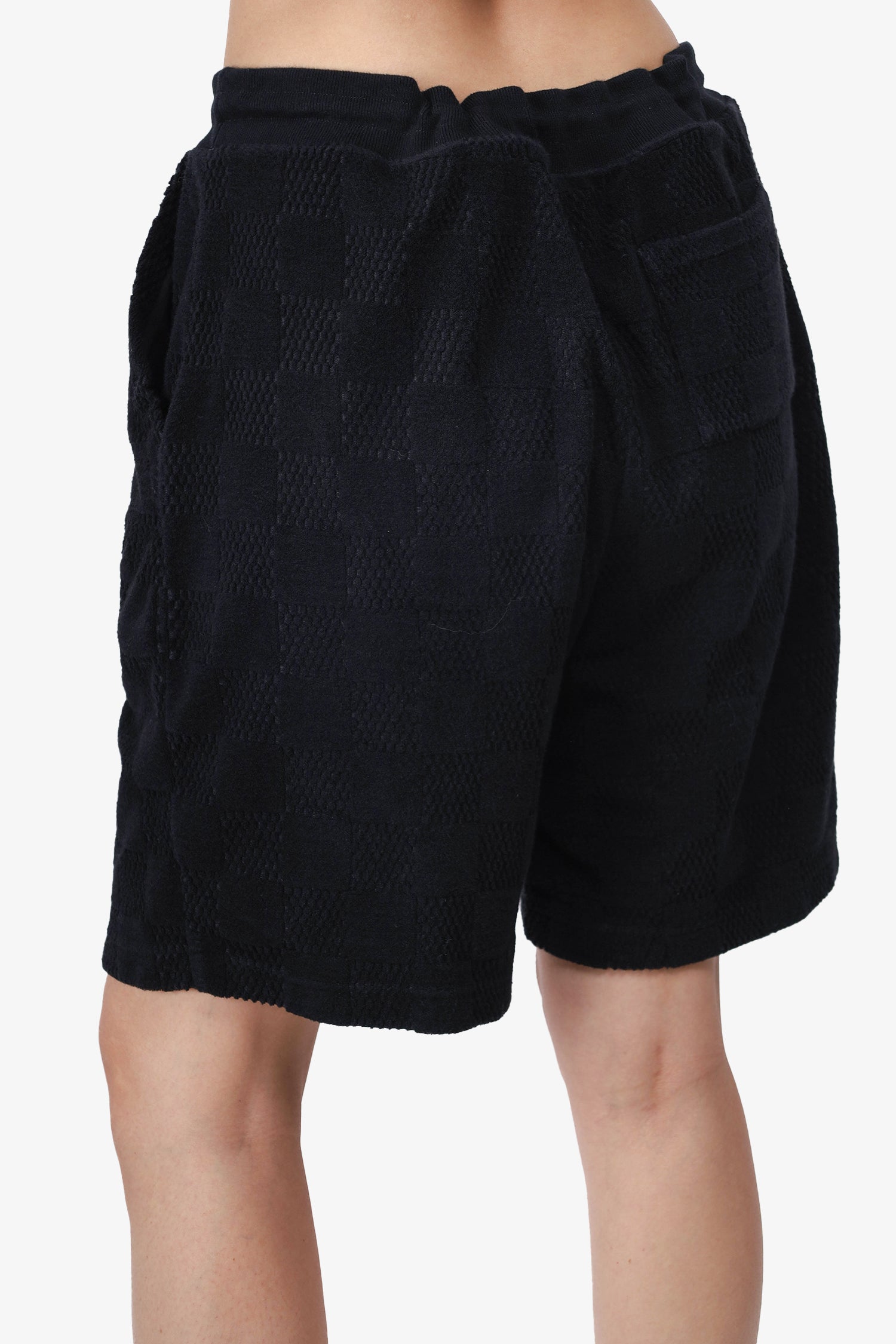 Louis Vuitton 2024 Black Damier French Terry Cotton Shorts. Pull-on. Elasticated waistband. Front tie. Slip pockets. Tonal stitching.
