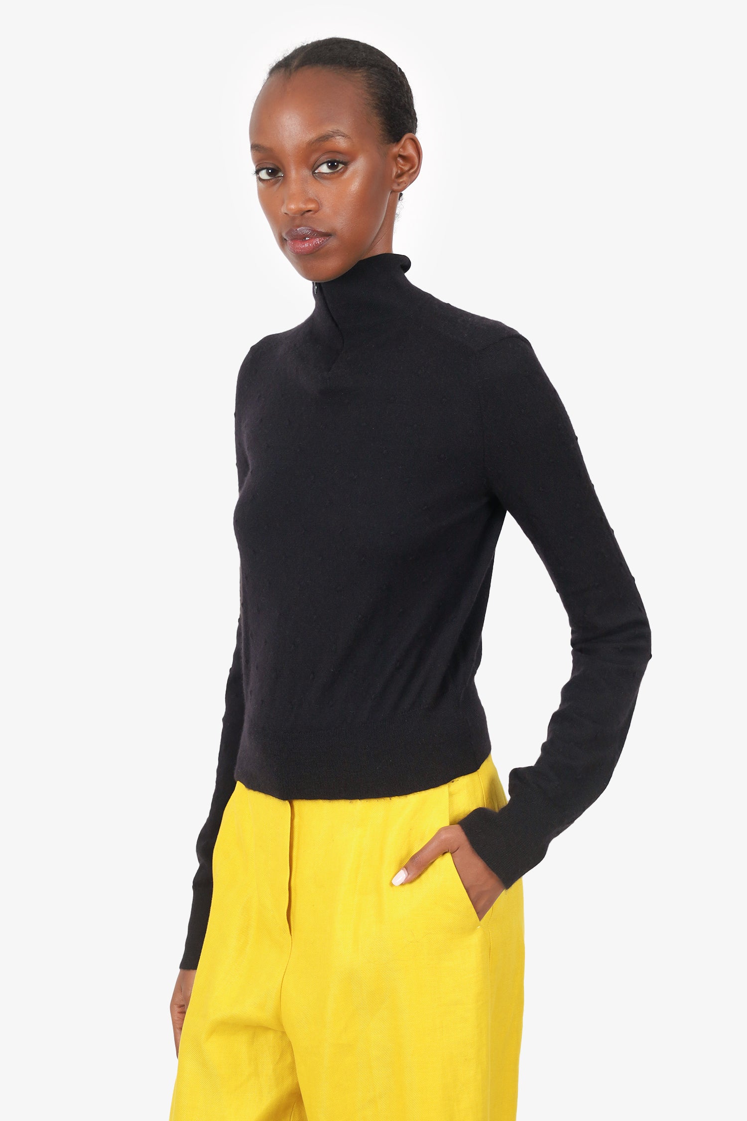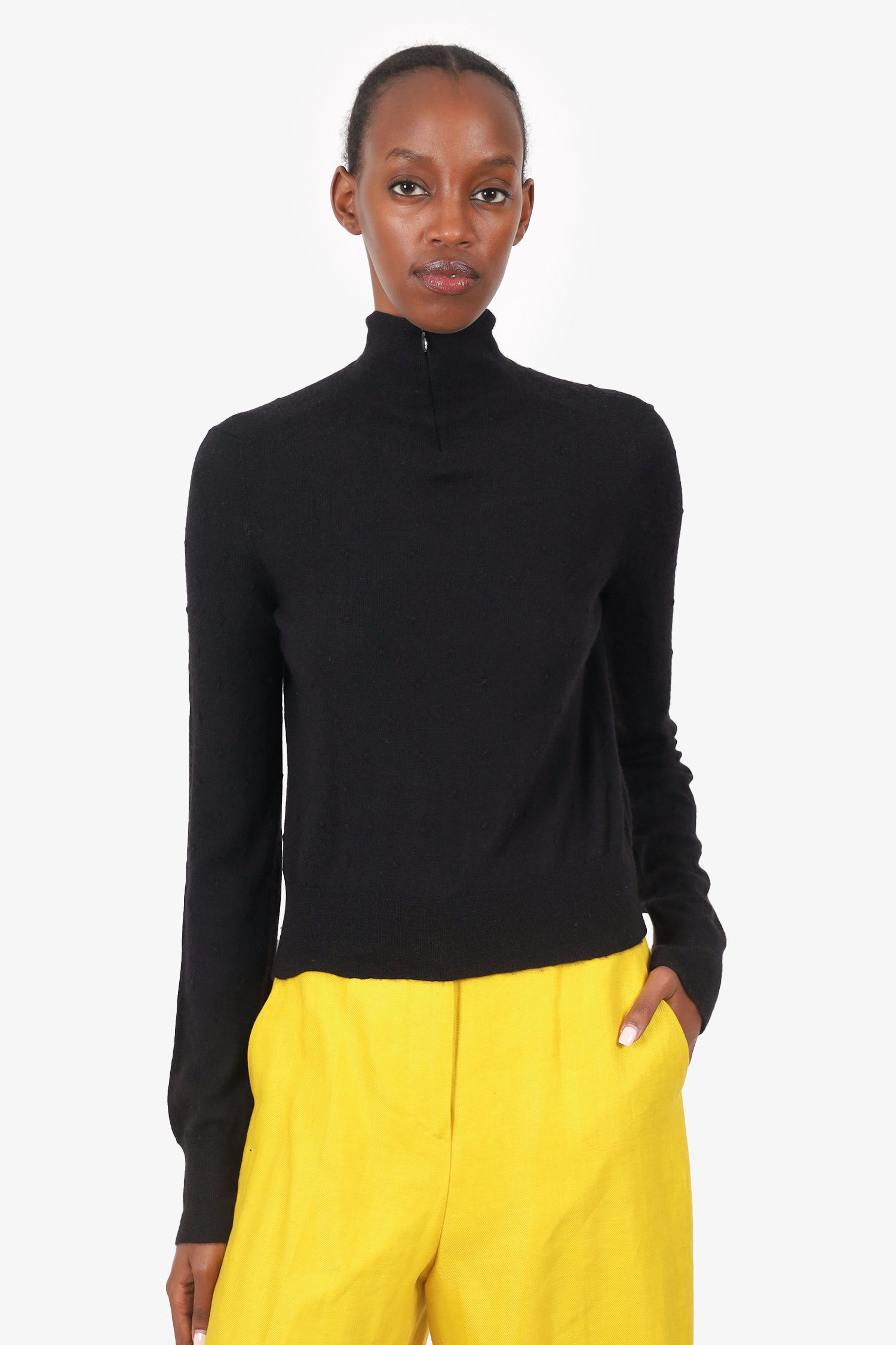 Louis Vuitton Black Cashmere "Dot" Long Sleeve Turtleneck With Back Zip Size M