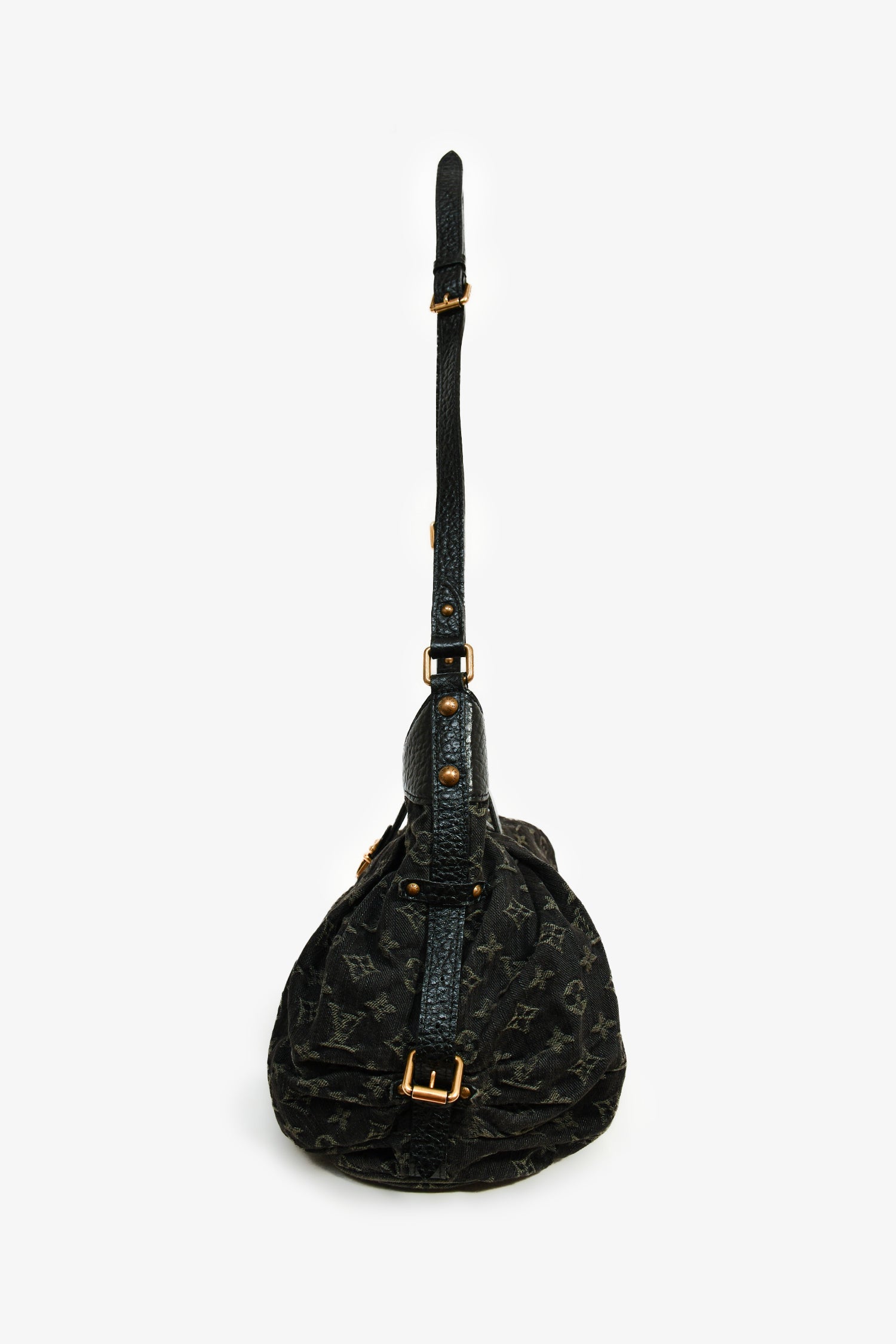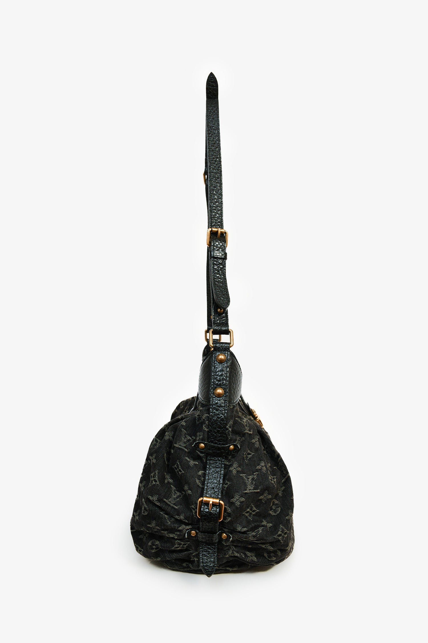 Louis Vuitton Black Denim Light Wash Monogram Hobo Bag With Strap