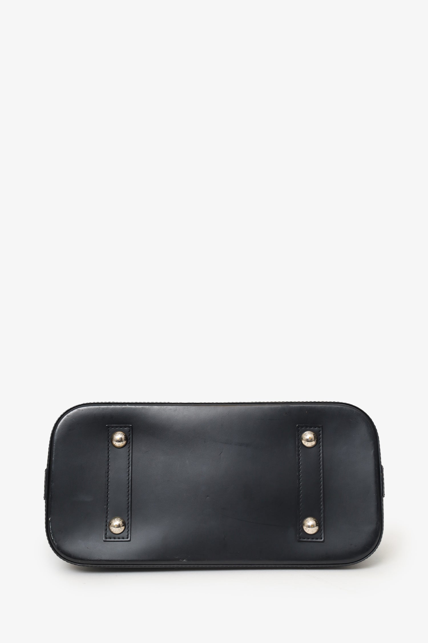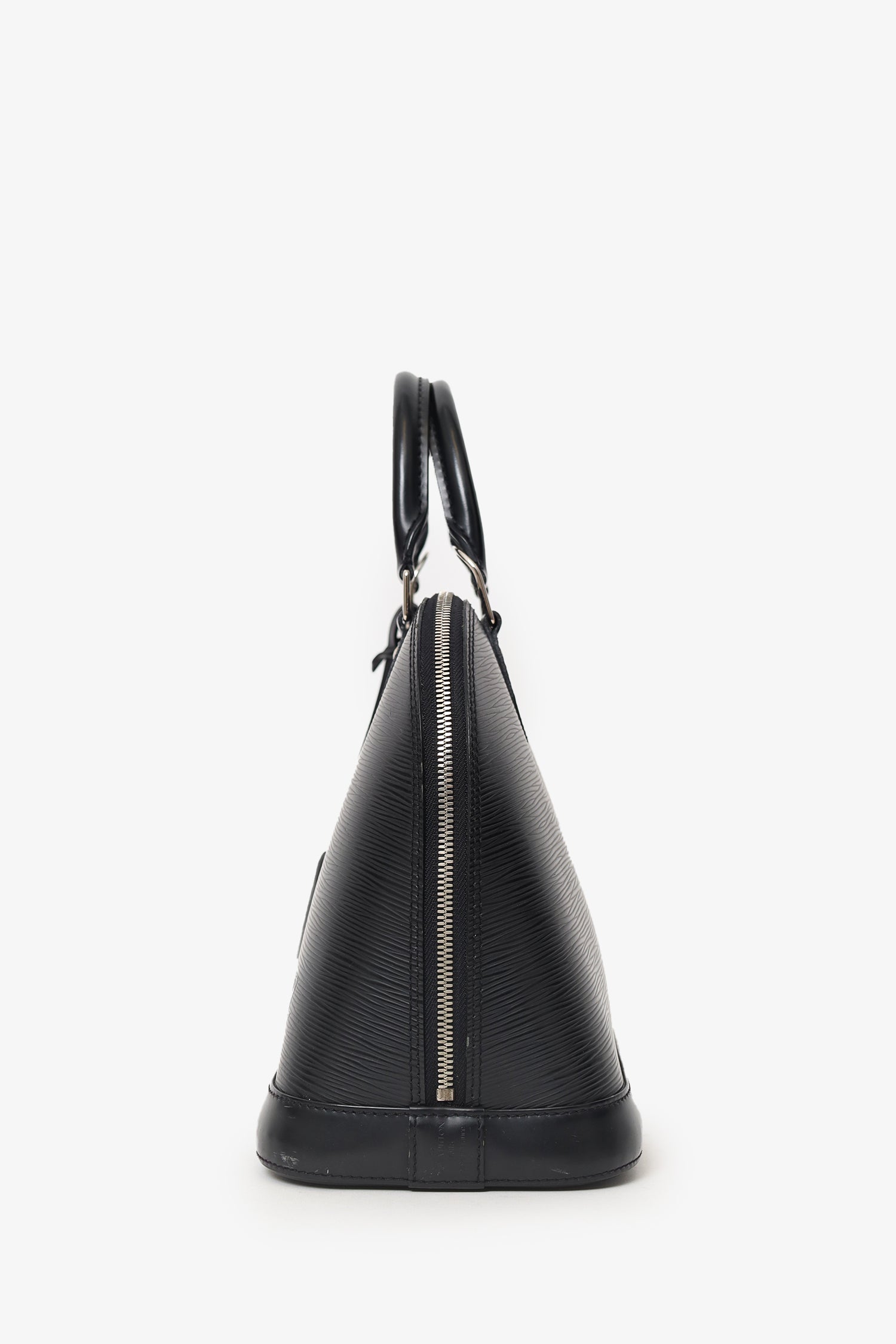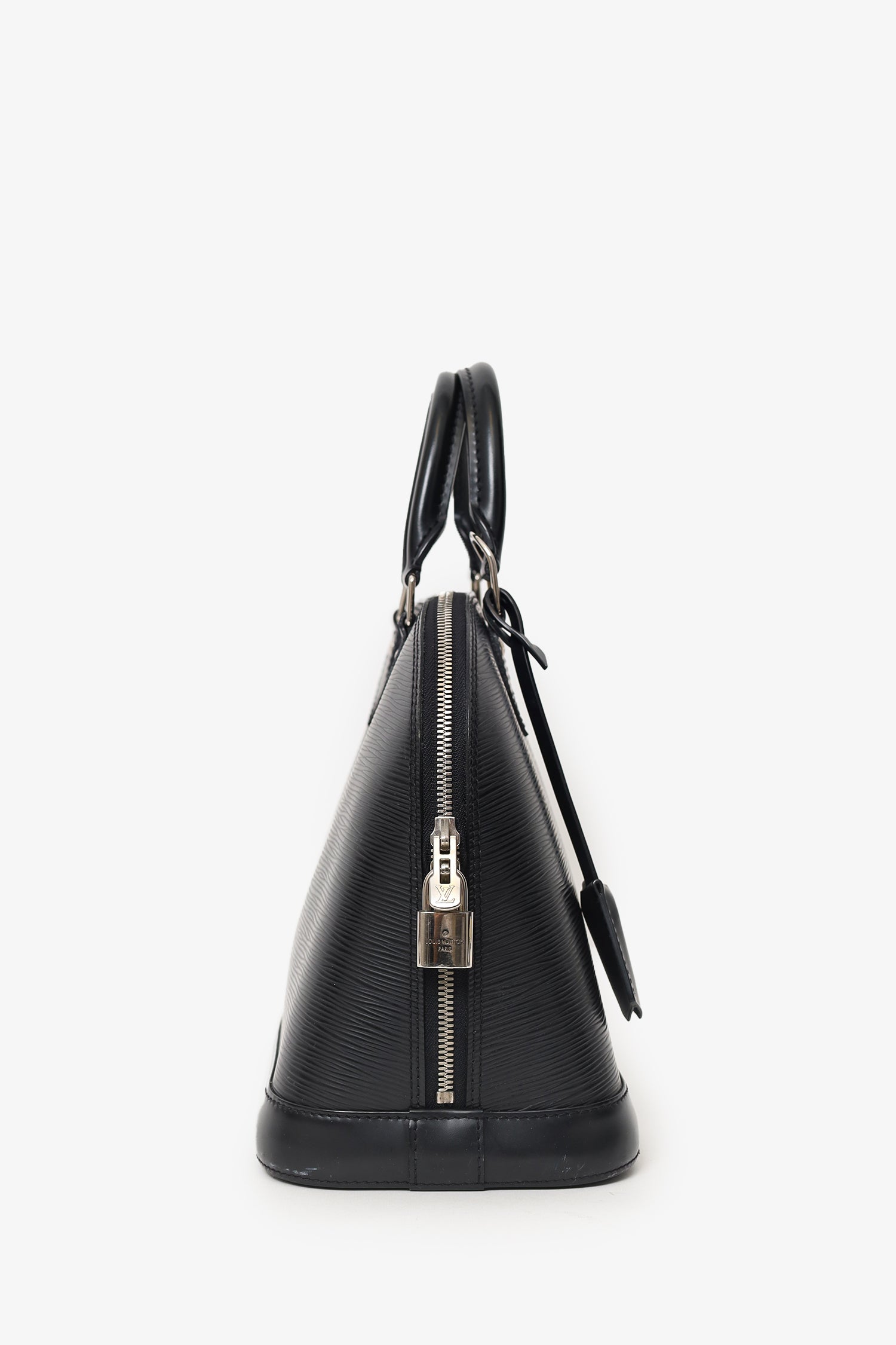 Refresh availabilityLouis Vuitton Black Epi Leather Alma PM Top Handle. Top zip closure. Top twin handles. Protective base studs. Suede-lined interior. 2 interior slip pockets. Silver-tone hardware. Tonal stitching. Inclusions: Clochette with lock and key.