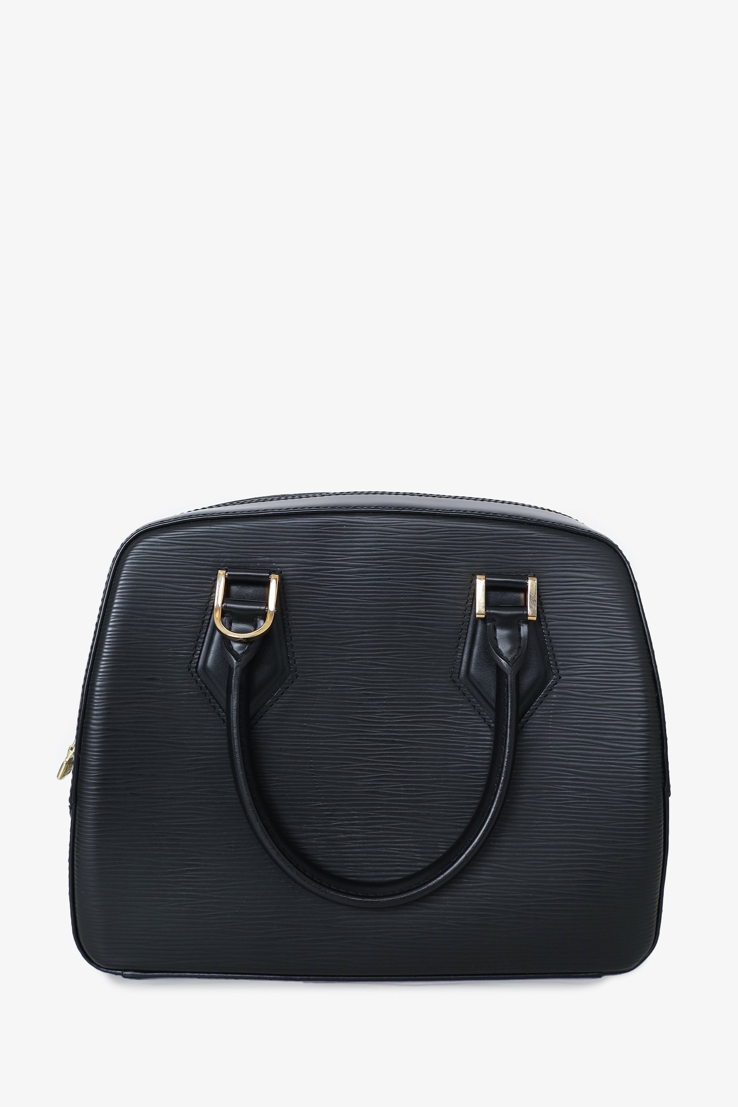 Louis Vuitton Black Epi Leather Pont Neuf Top Handle Bag. Top zipper closure. Single interior wall slip pocket. Gold-tone hardware. Tonal stitching.