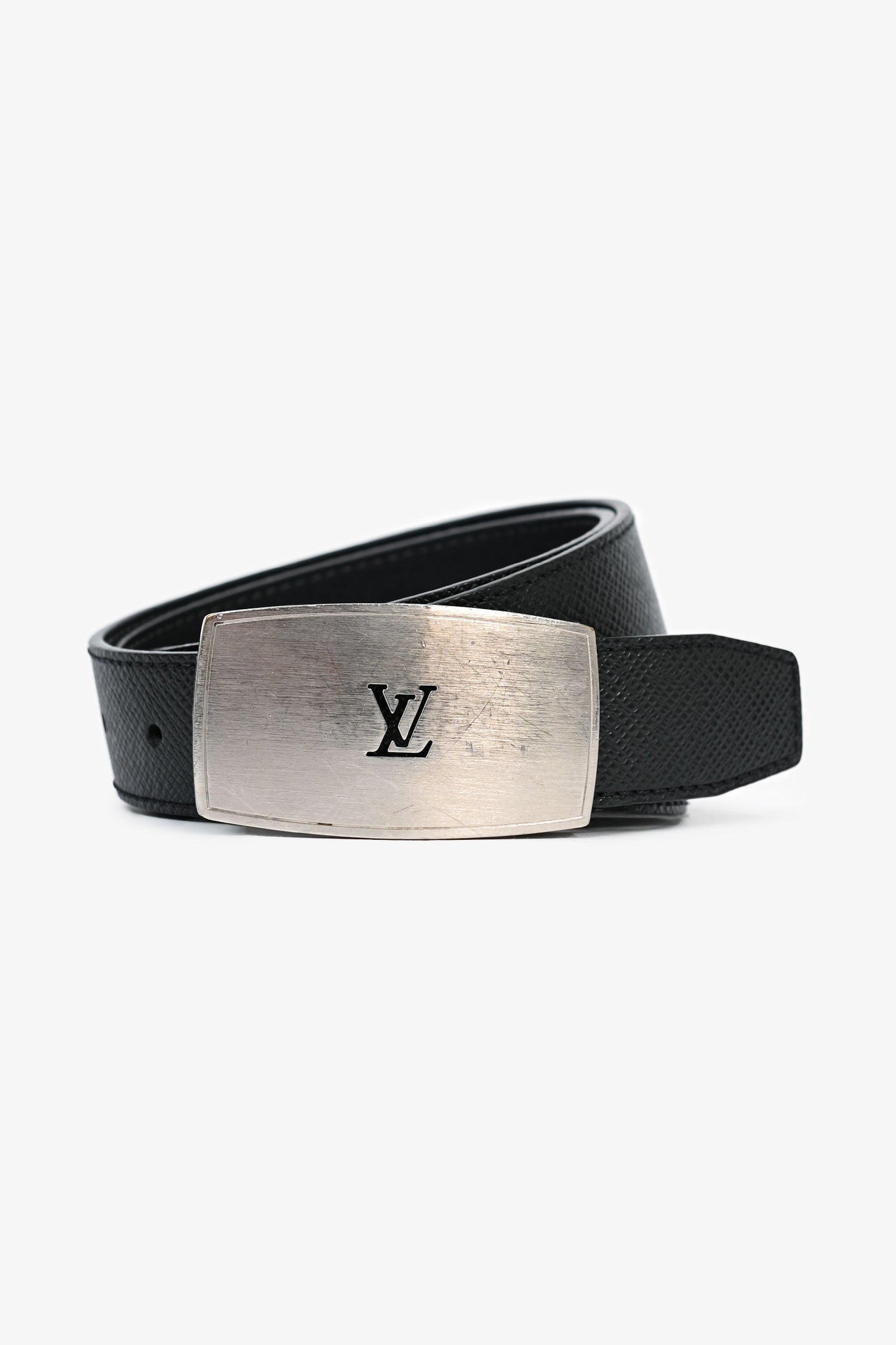 Refresh availabilityLouis Vuitton Black Leather Logo Belt. Adjustable pull-through buckle closure. Silver-tone hardware. Tonal stitching.