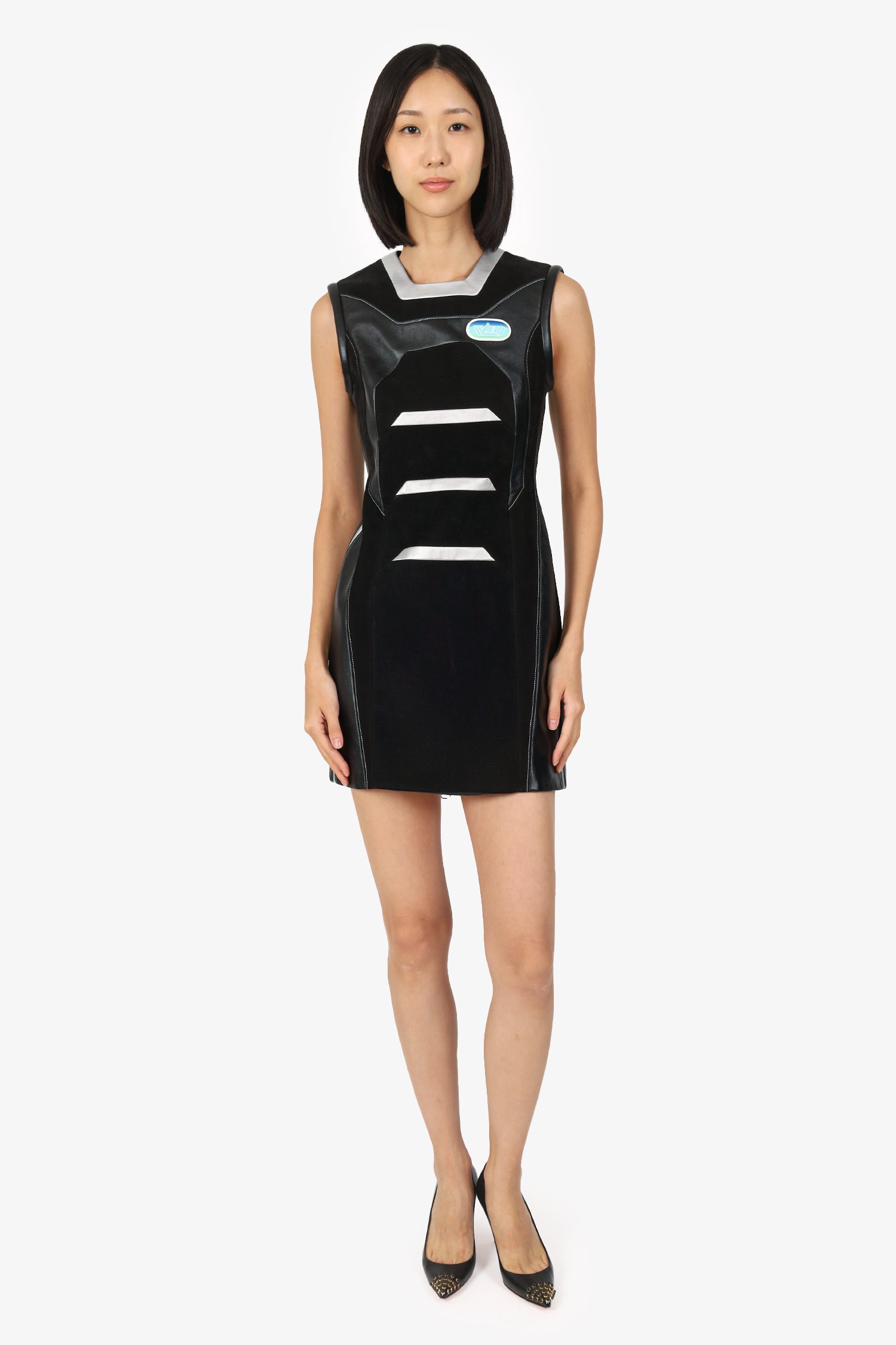 Refresh availabilityLouis Vuitton Black/Silver Leather Sleeveless Biker Dress. Pull-on. Square neckline. Rear 2-way zip closure. Lined interior. Silver-tone hardware. Tonal stitching.