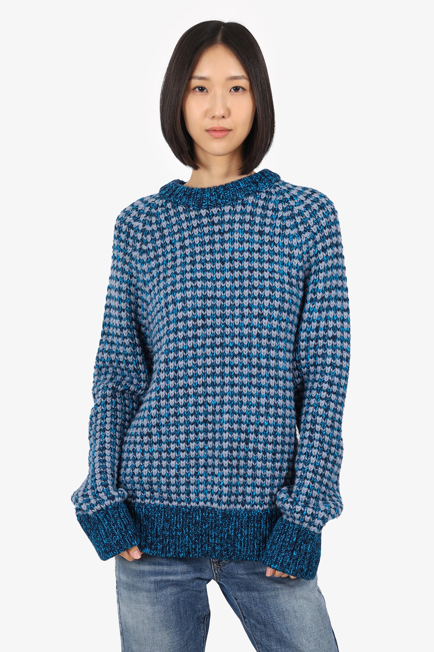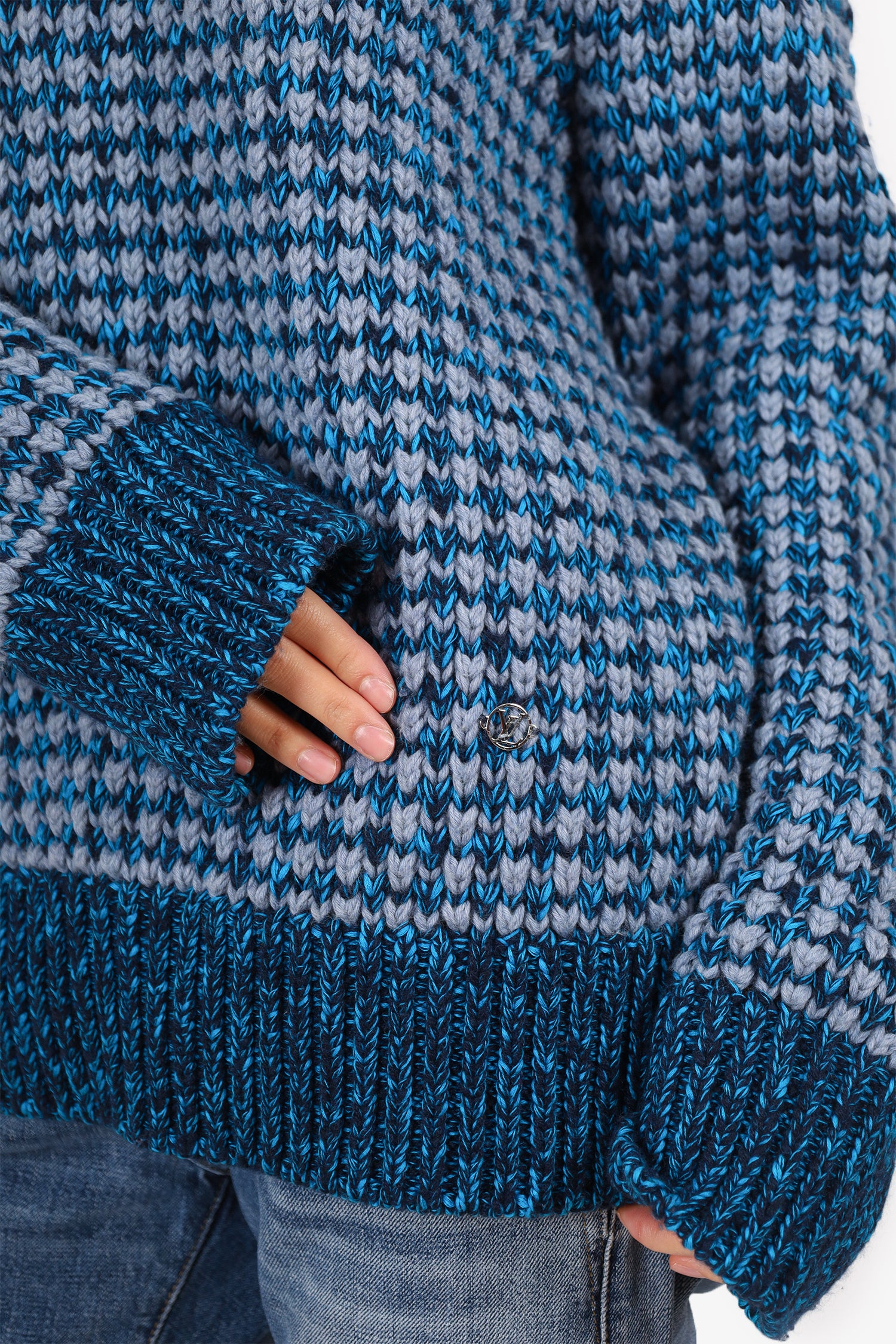 Refresh availabilityLouis Vuitton Blue Cashmere/Wool Chunky Knit Sweater. Pull-on. Round-neckline. Tonal stitching.
