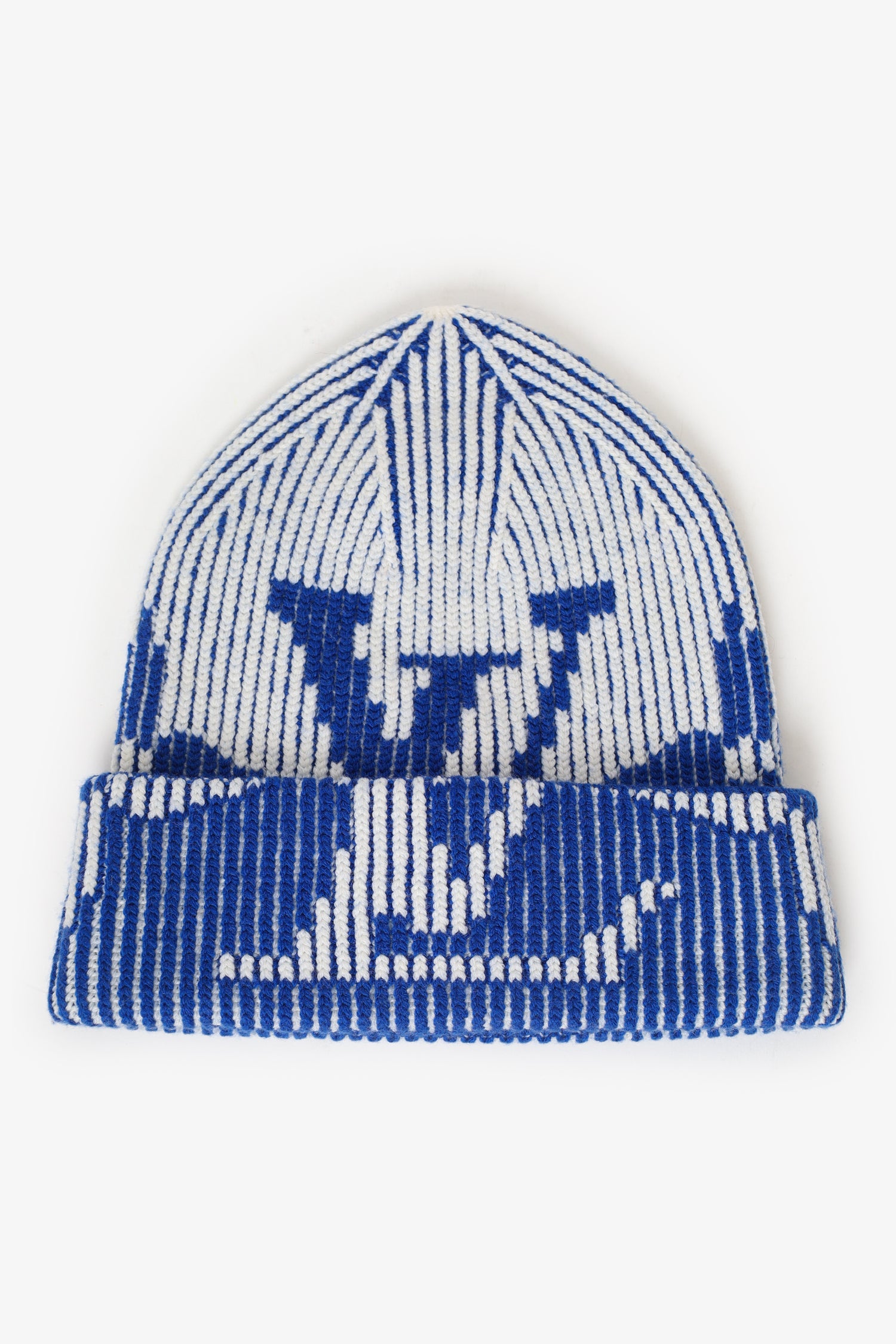 Refresh availabilityLouis Vuitton Blue/White Knit Monogram Hat. Pull-on. Contrast and tonal stitching.