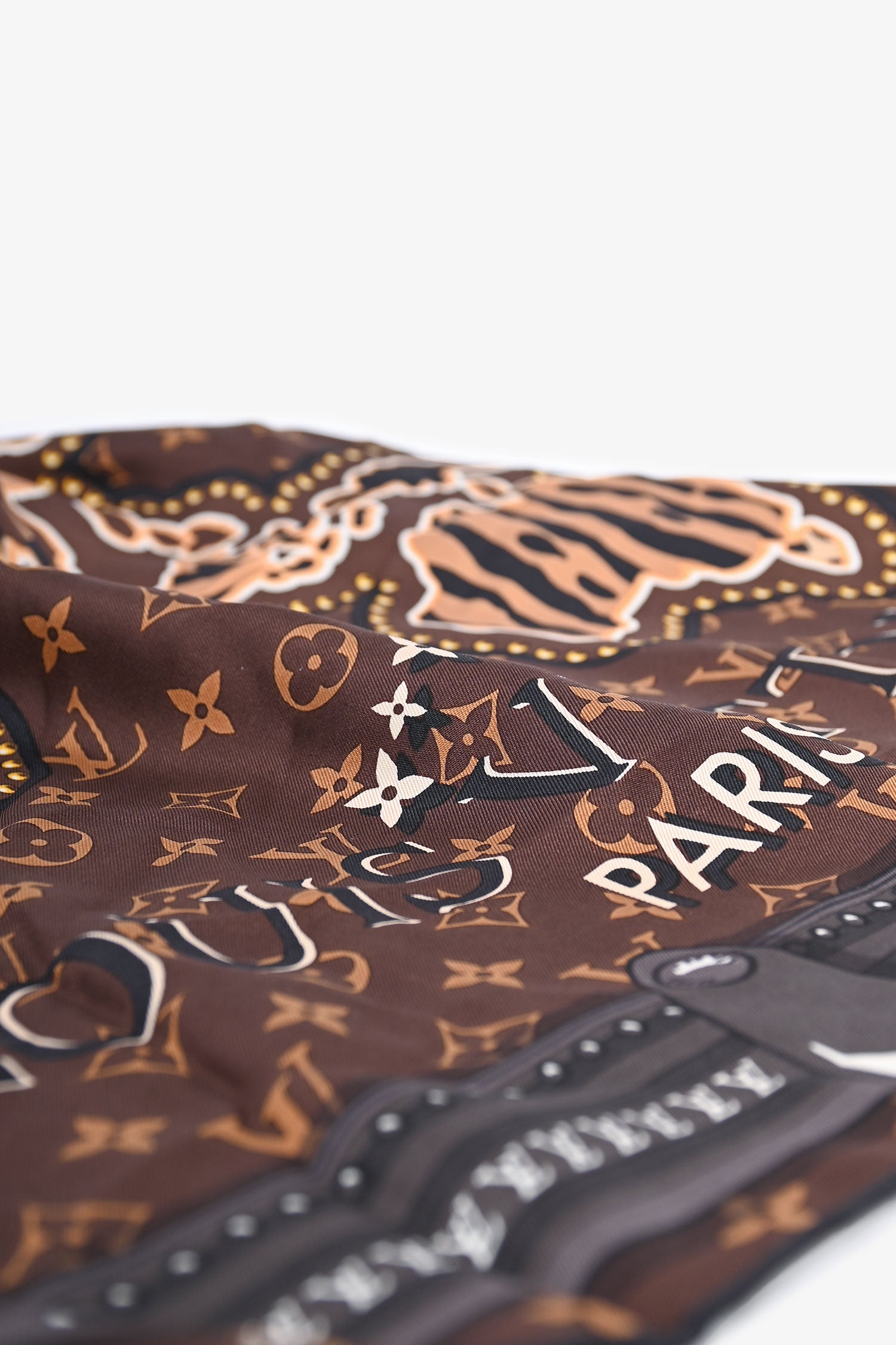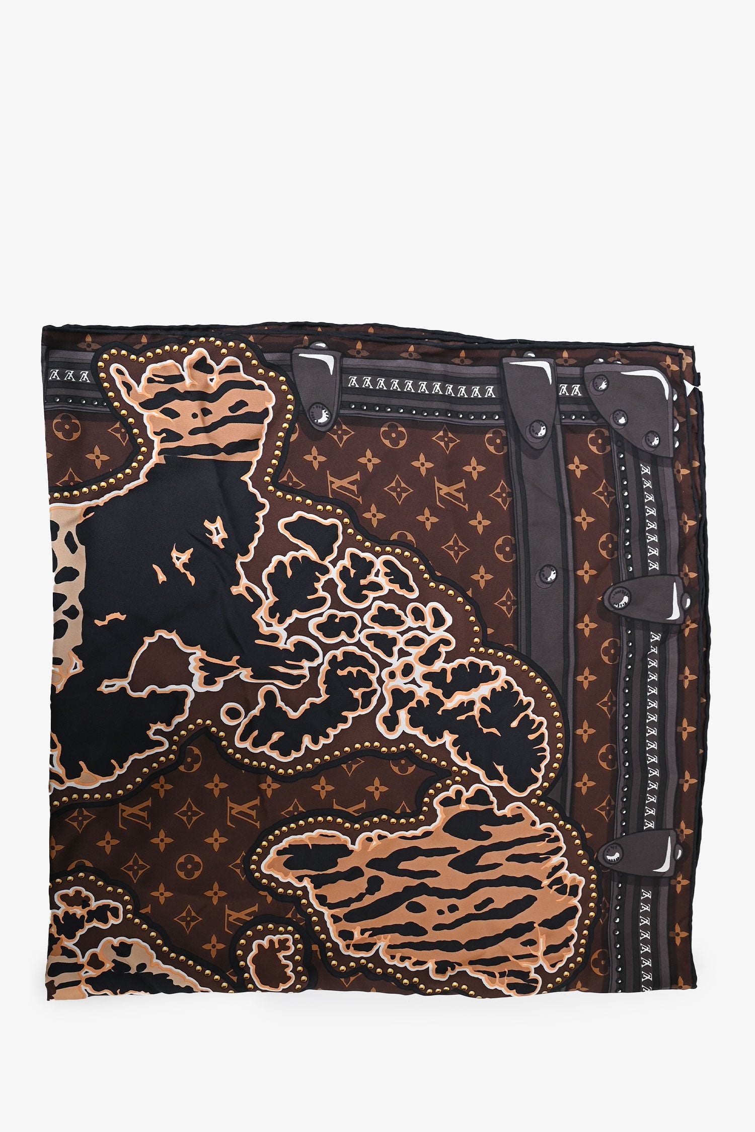 Louis Vuitton Brown Monogram Silk Tiger Pattern Scarf