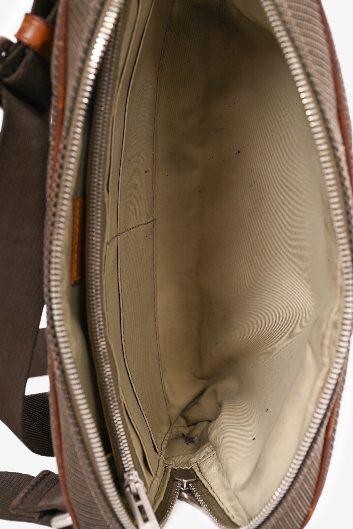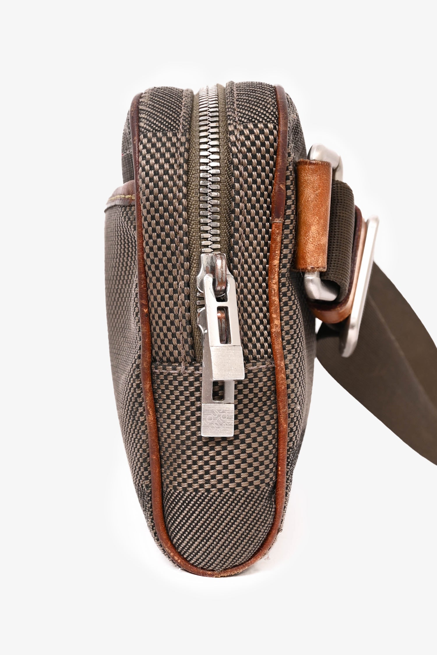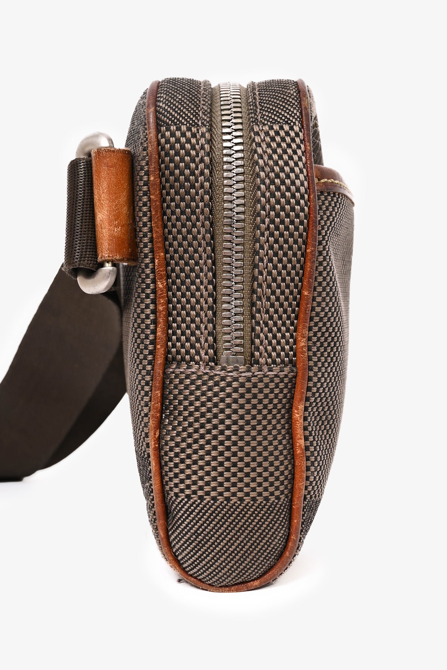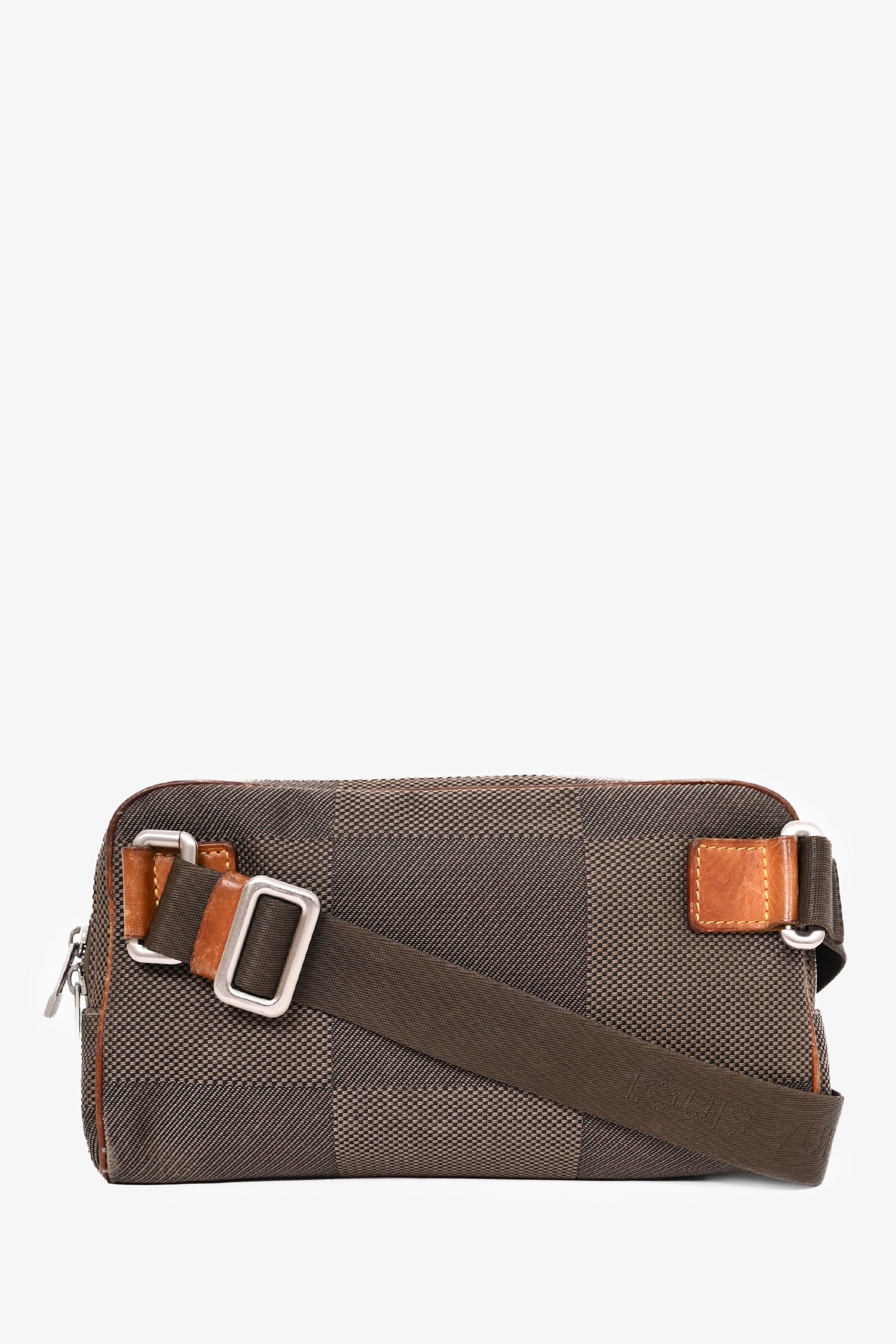 Refresh availabilityLouis Vuitton Brown Waist Pouch. Silver-tone hardware. Front zip pocket. Top zip closure. Light green textile interior lining. 3 interior compartments; 2 open and 1 with zip closure. 4 interior wall pockets. Adjustable strap. Tonal stitching.