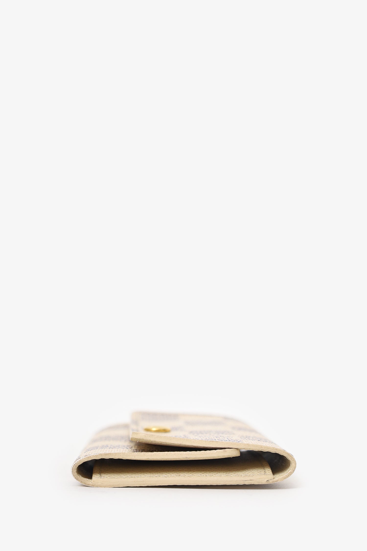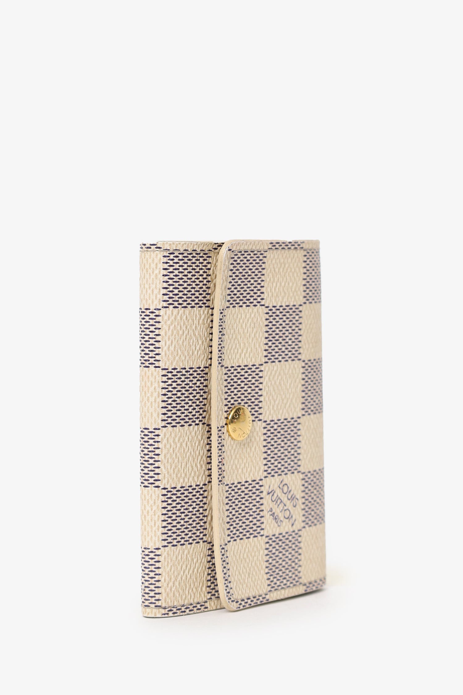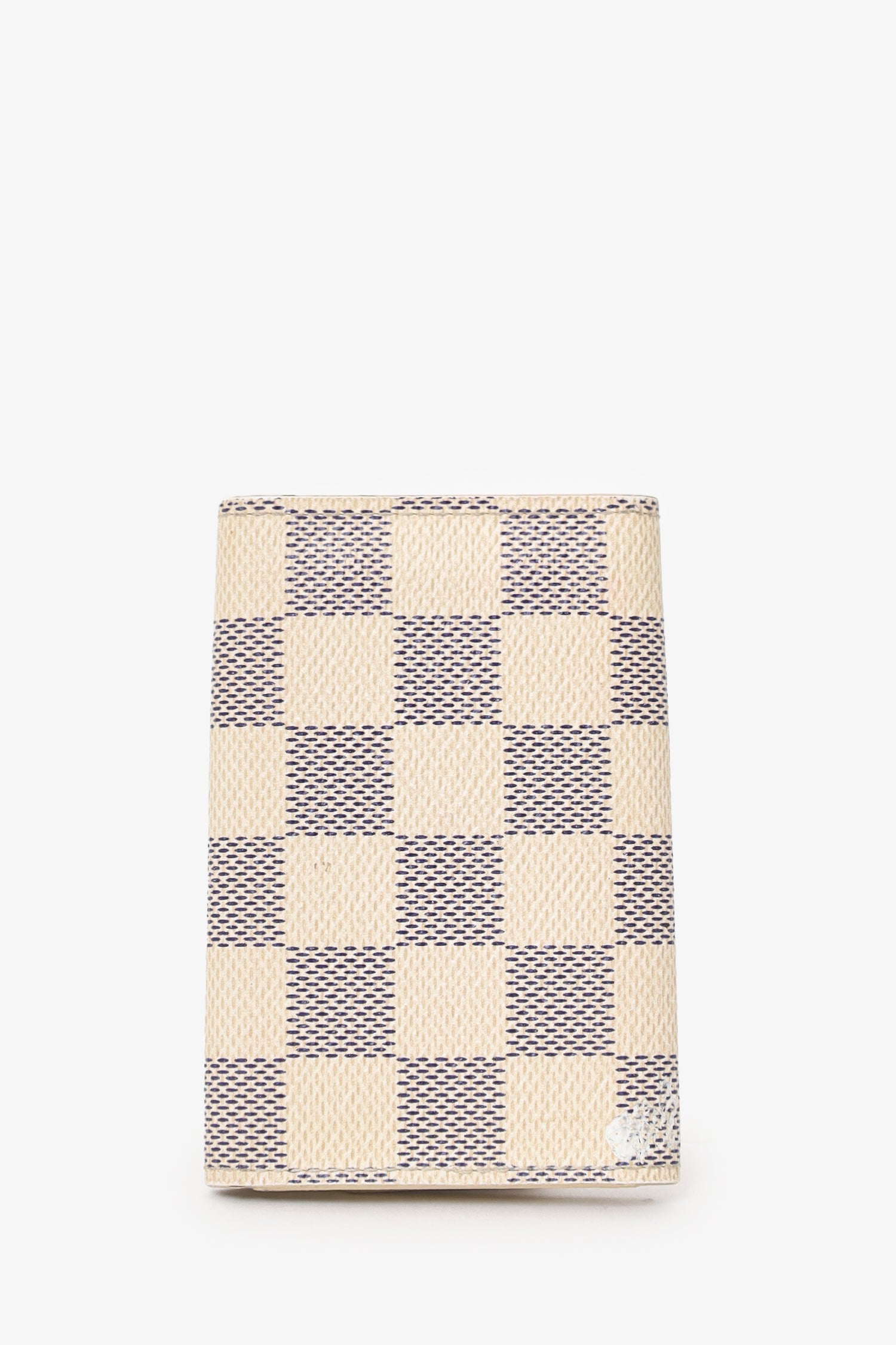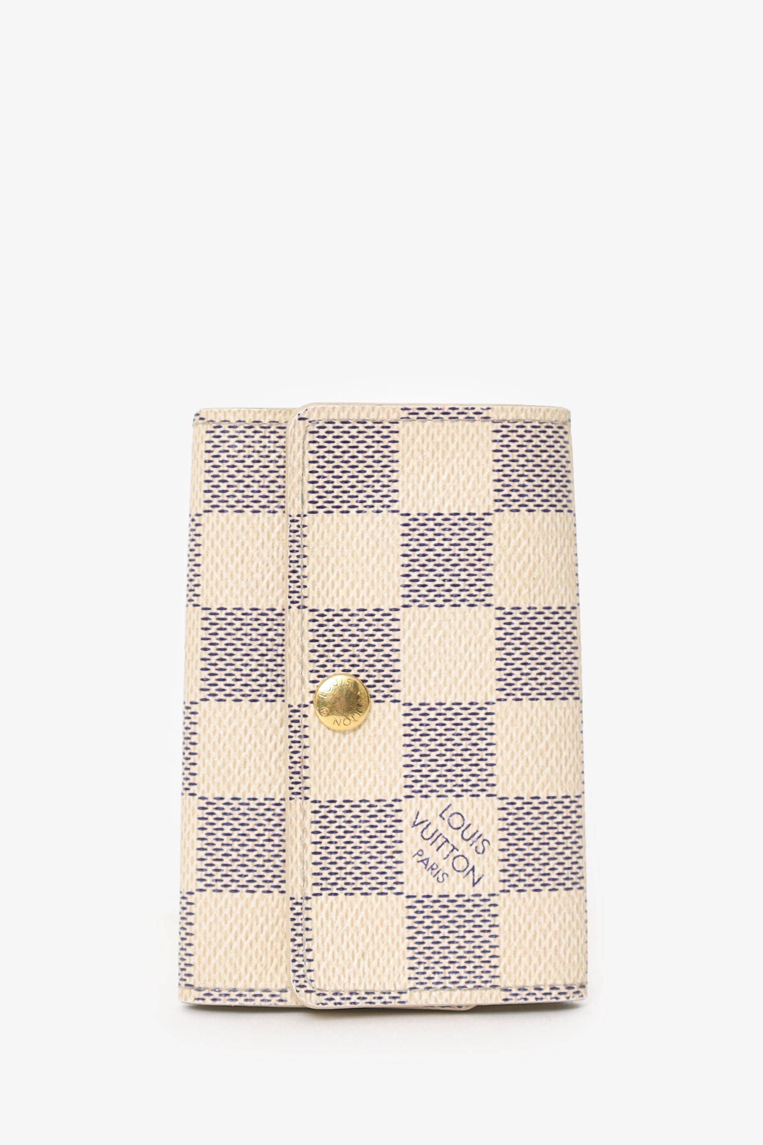 Refresh availabilityLouis Vuitton Damier Azur Key Holder. Front fold-over flap with snap button closure. Lined interior with 6 key rings. Gold-tone hardware. Tonal stitching.