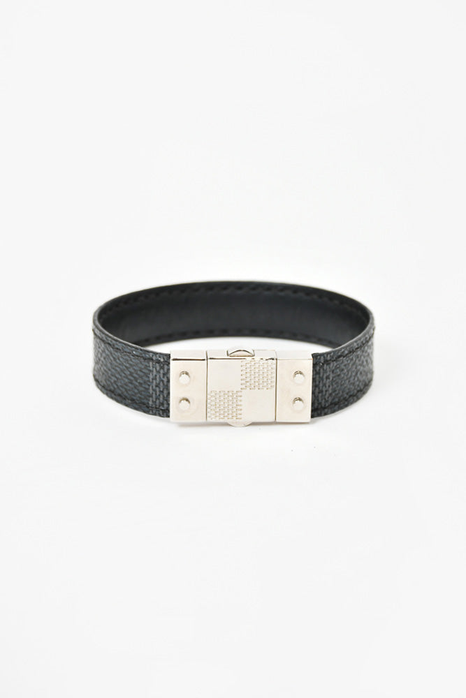 Louis Vuitton Damier Graphite Reversible Bracelet with Silver Detail. Push lock closure. Silver-tone hardware. Tonal stitching.