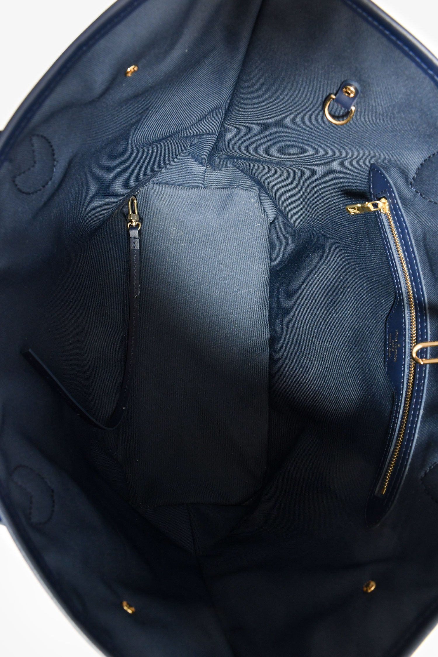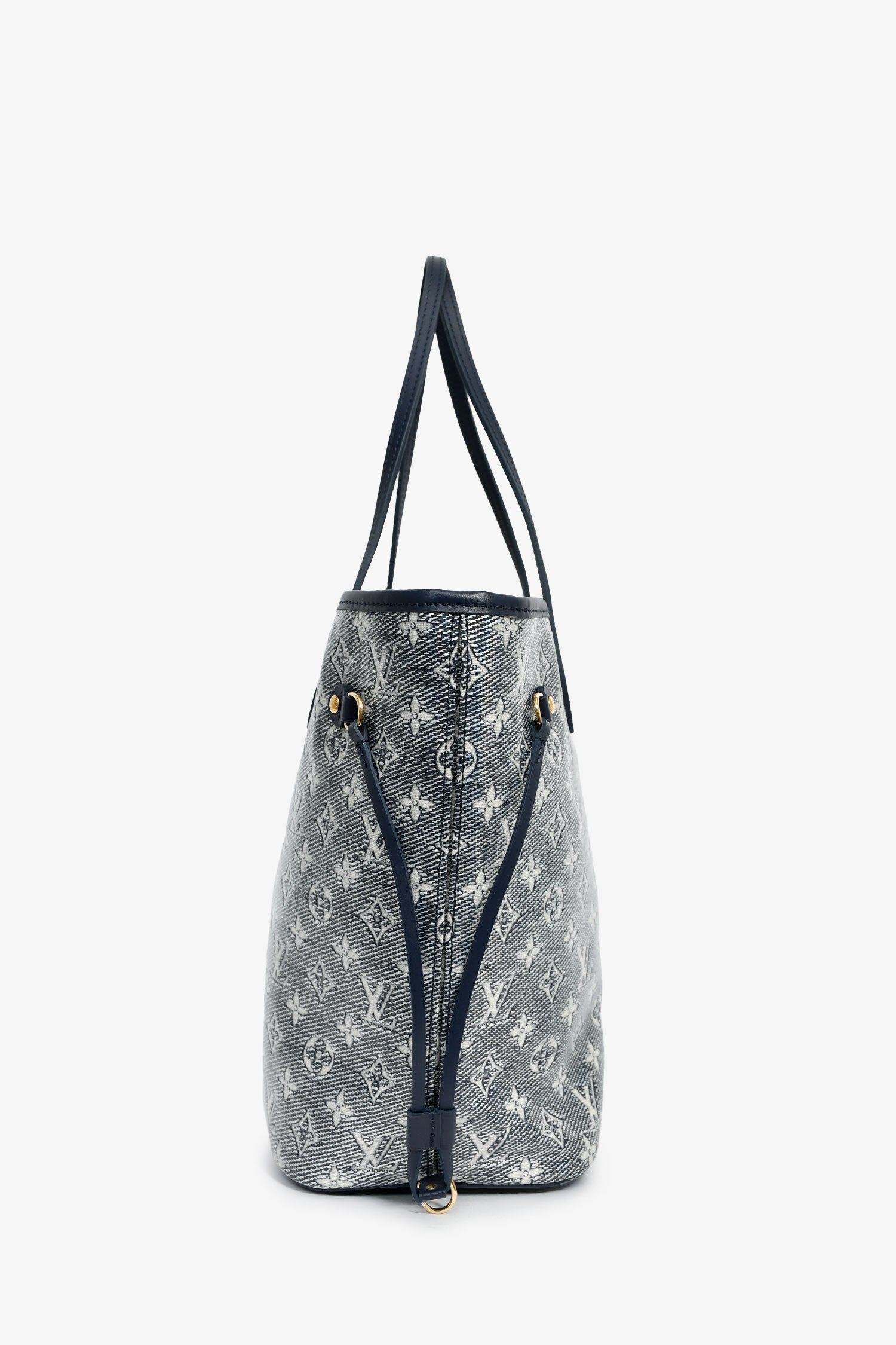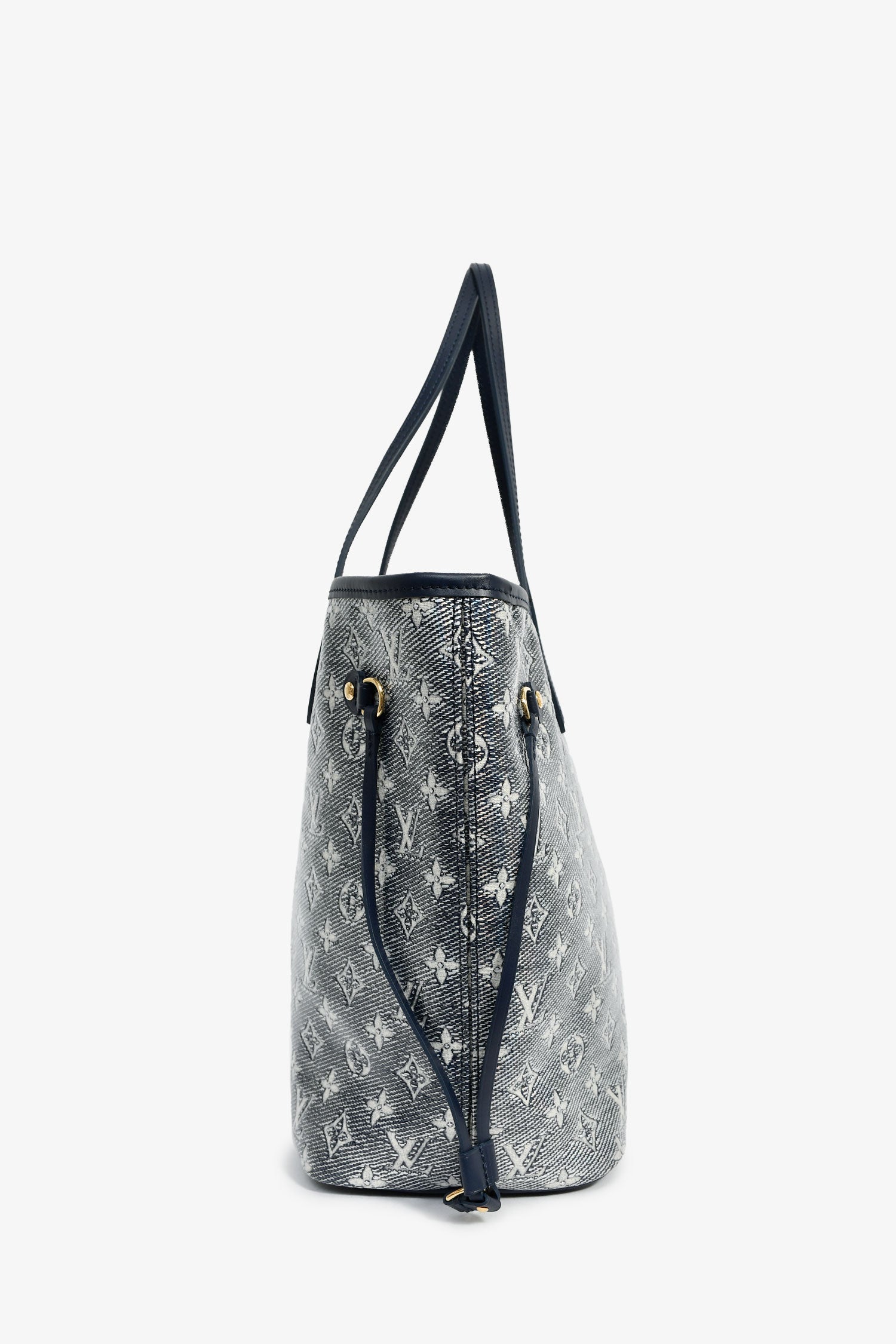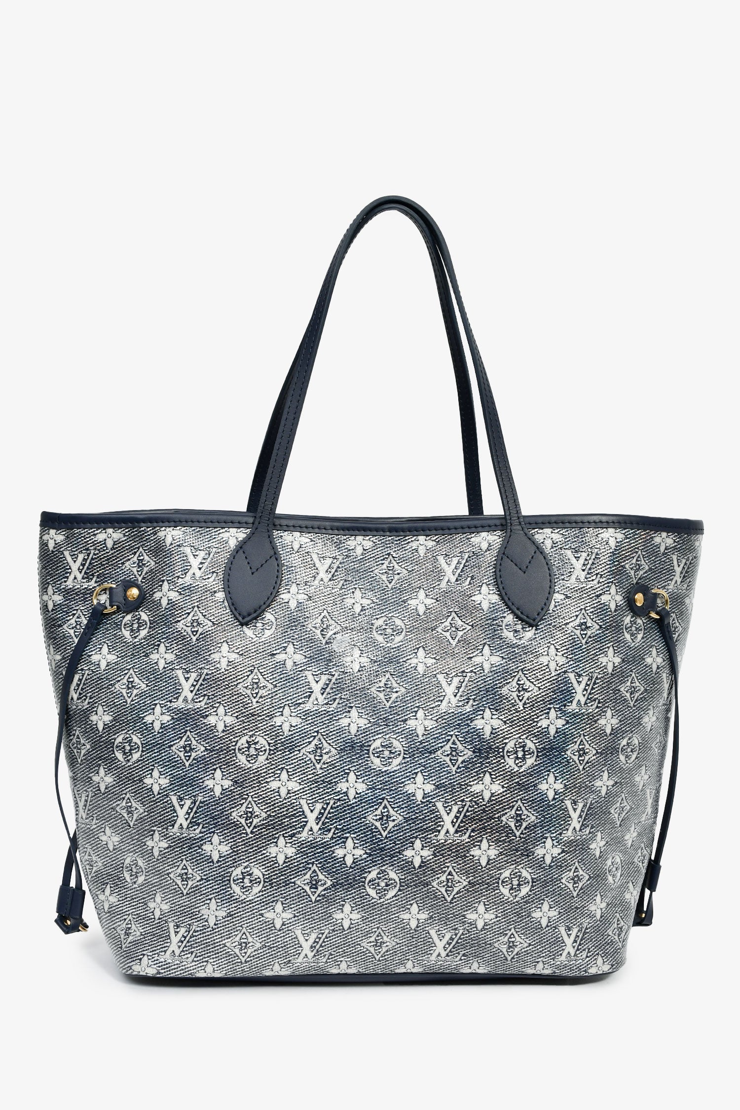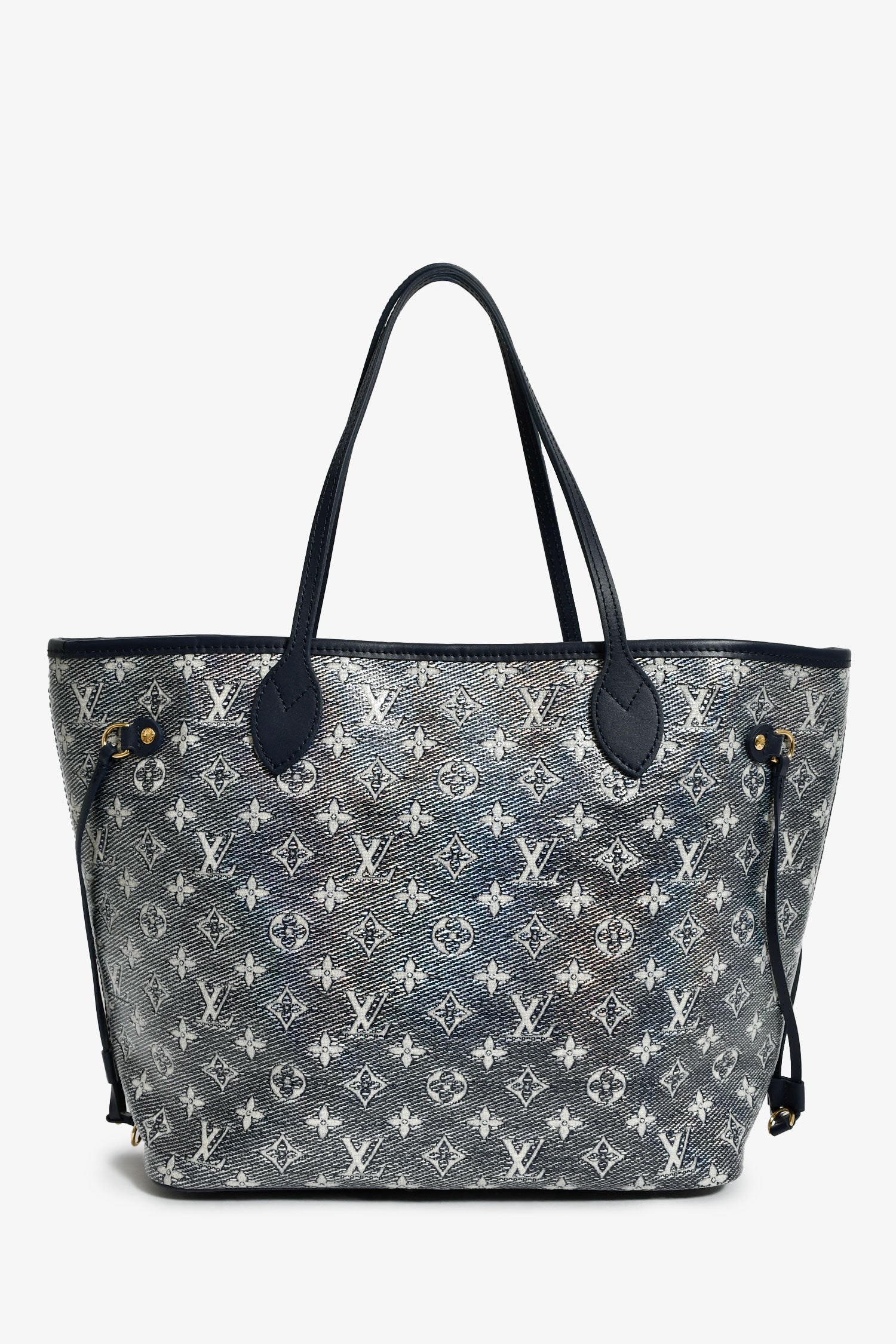 Refresh availabilityLouis Vuitton Iridescent Blue Monogram MM Neverfull. Dual top handles. Top hook closure. Single interior compartment with a wall zip pocket. Textile-lined interior. Gold-tone hardware. Tonal stitching.