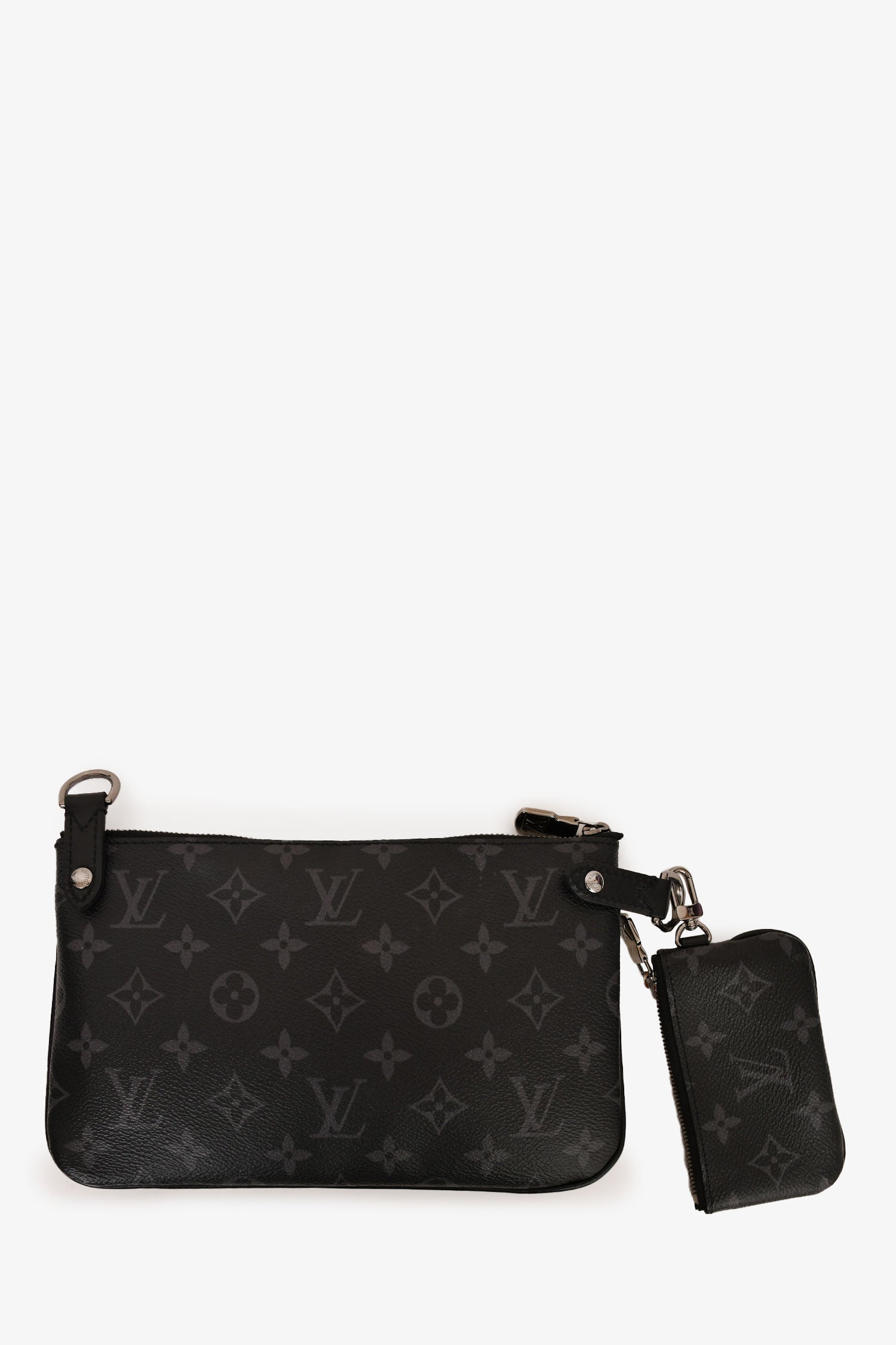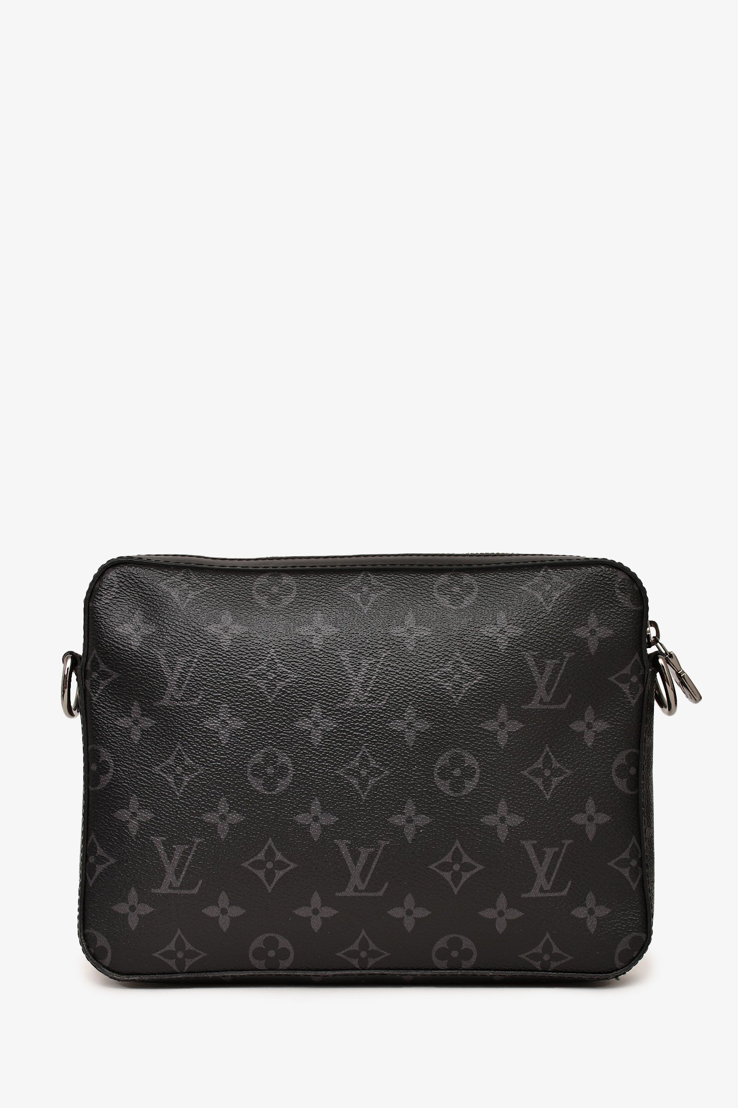 Refresh availabilityLouis Vuitton Monogram Eclipse Reverse Trio Messenger Bag. Top zip closure. 2 removable zip pouches. Single interior slip pocket. Removable and adjustable canvas strap. Silver-toned hardware. Tonal stitching.