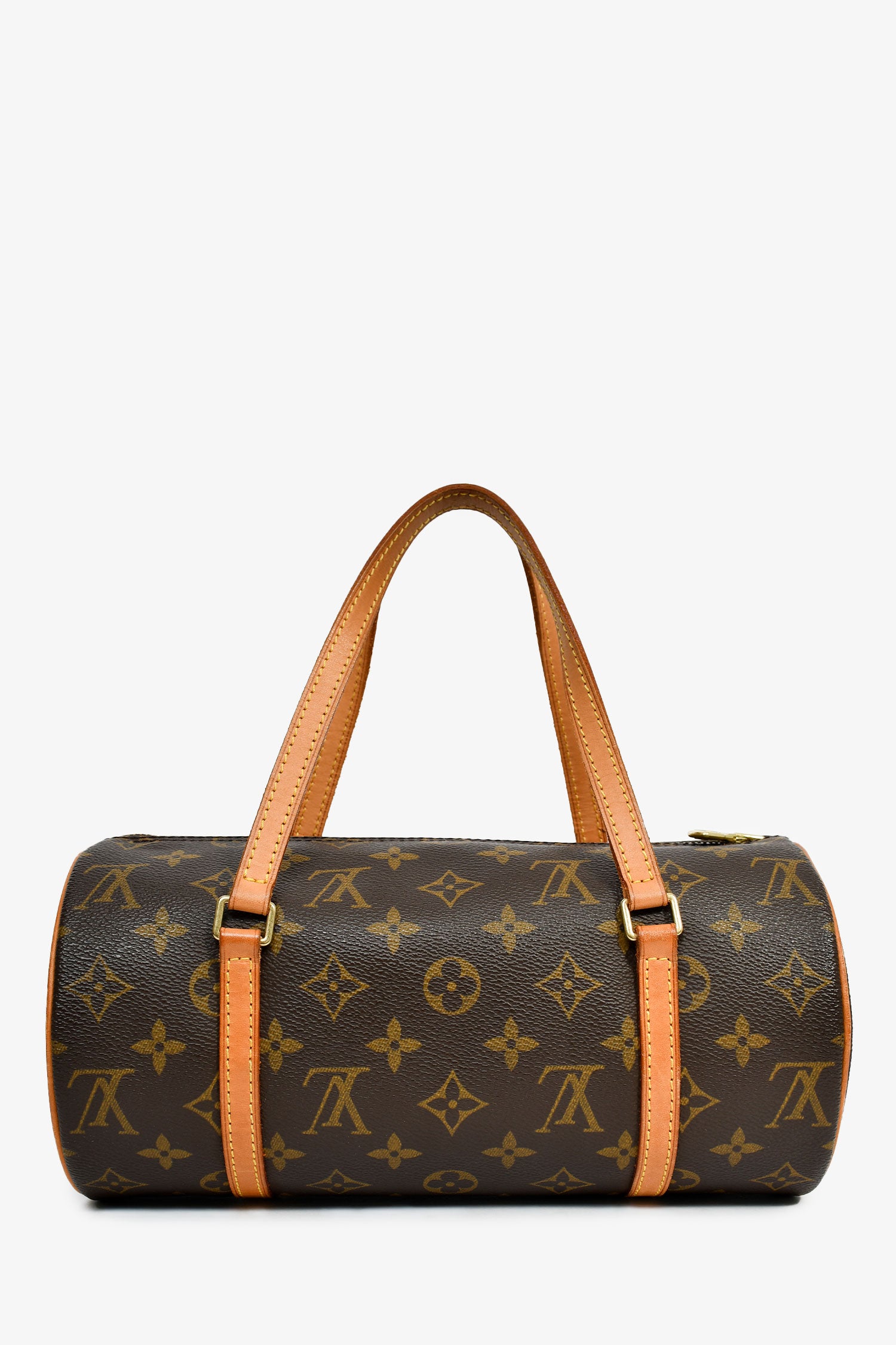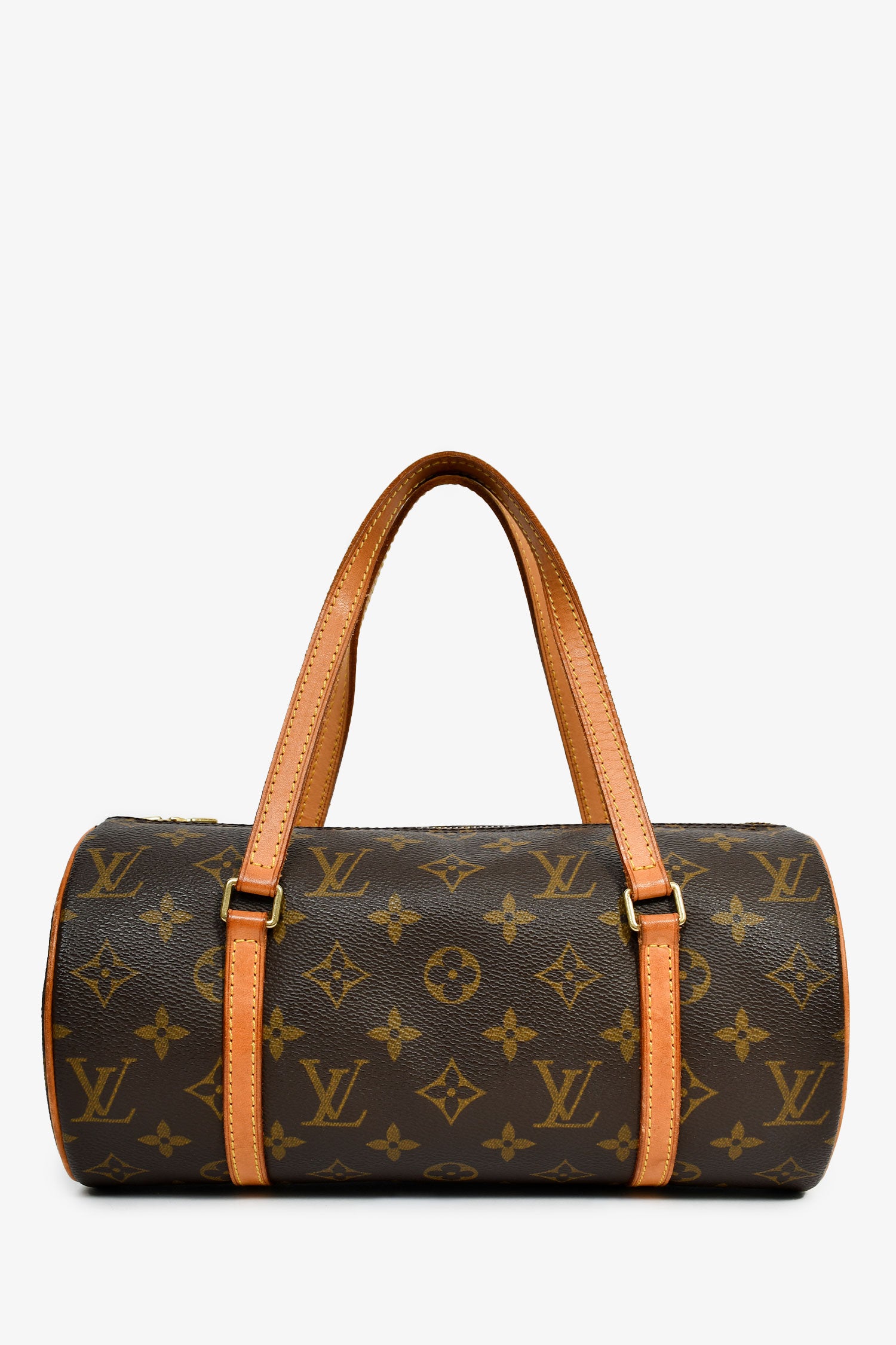 Refresh availabilityLouis Vuitton Monogram Papillon 26 Shoulder Bag. Leather trim. 2 flat shoulder straps. Coated canvas. Gold-tone hardware. Lined leather interior. Contrast stitching.