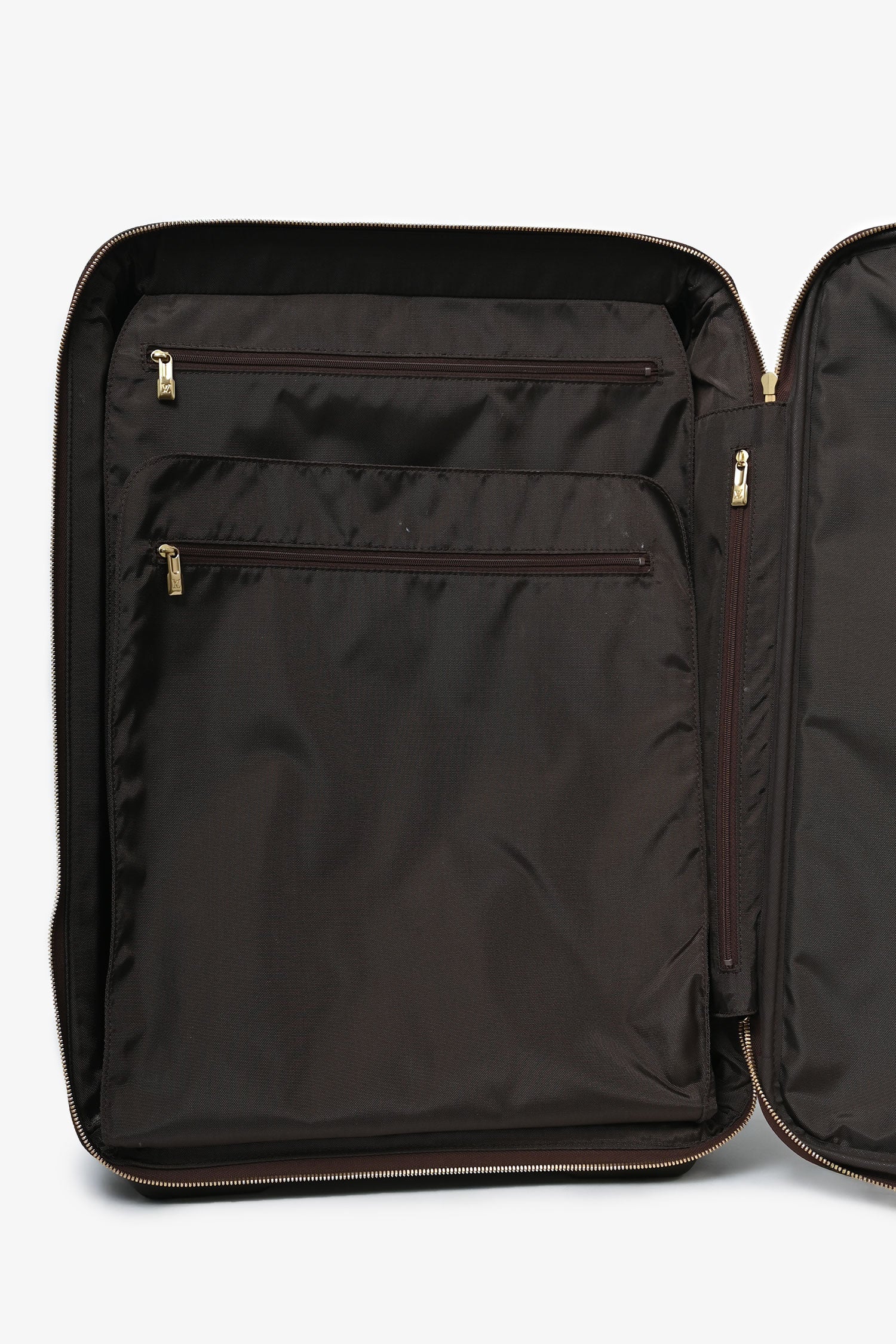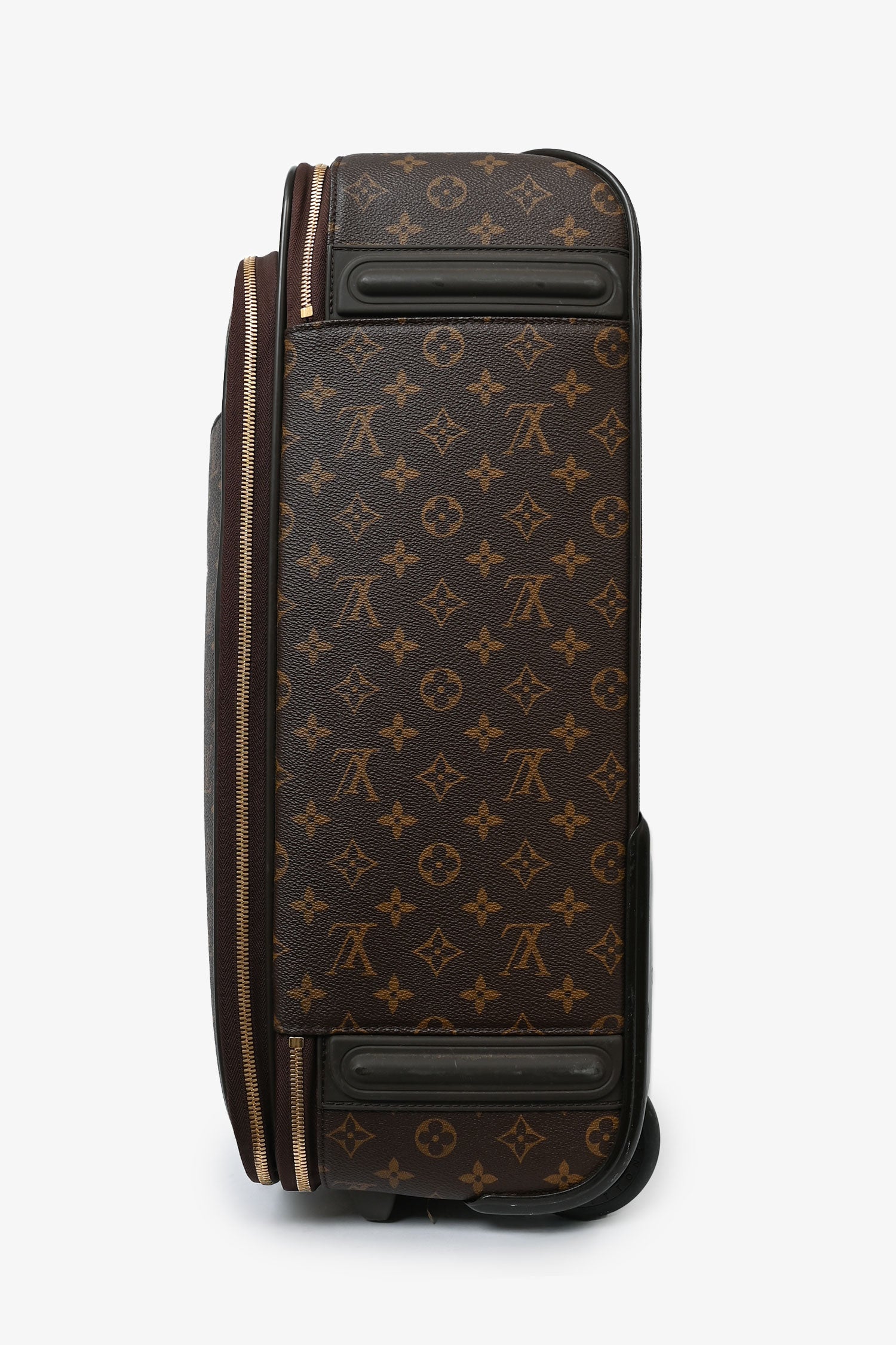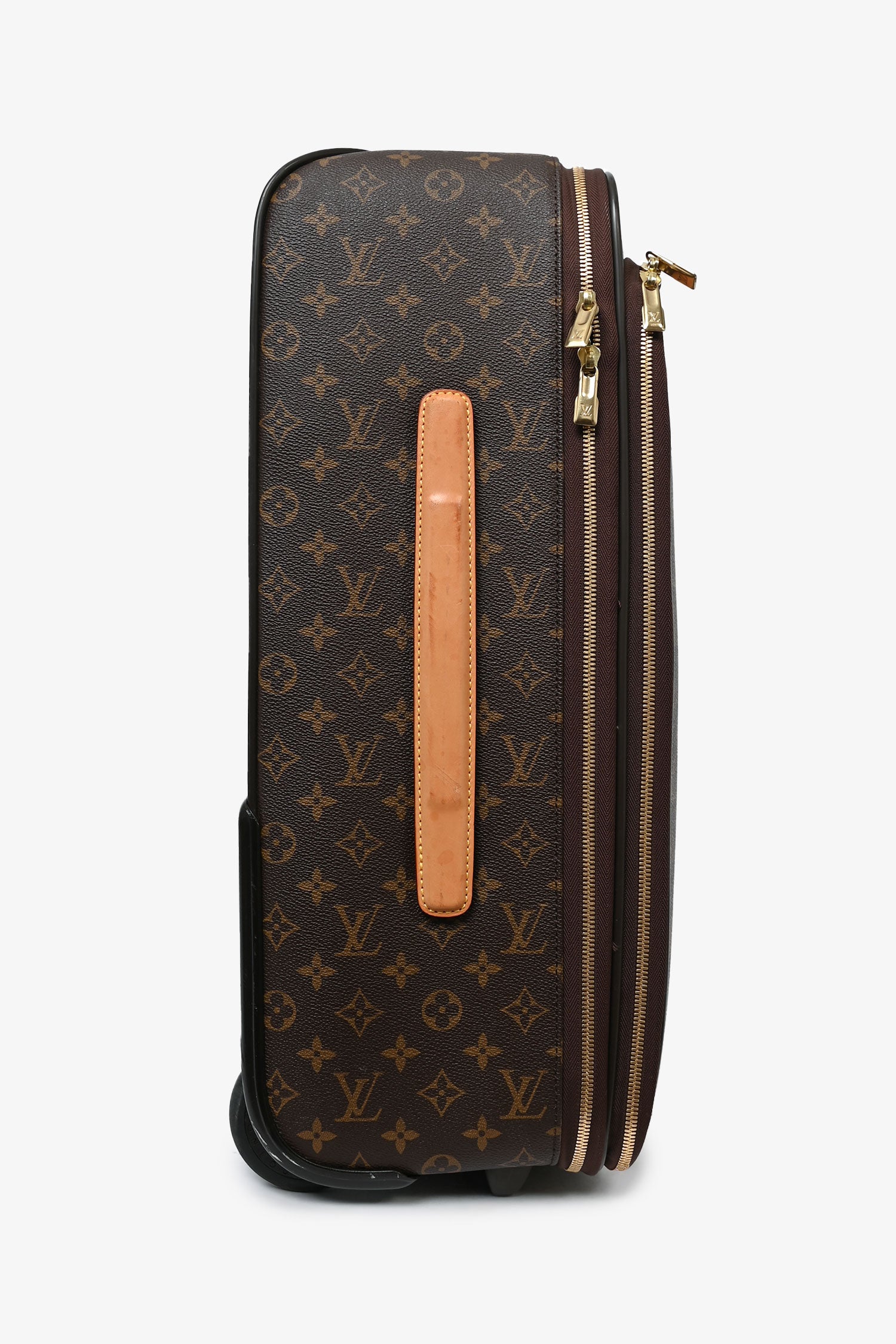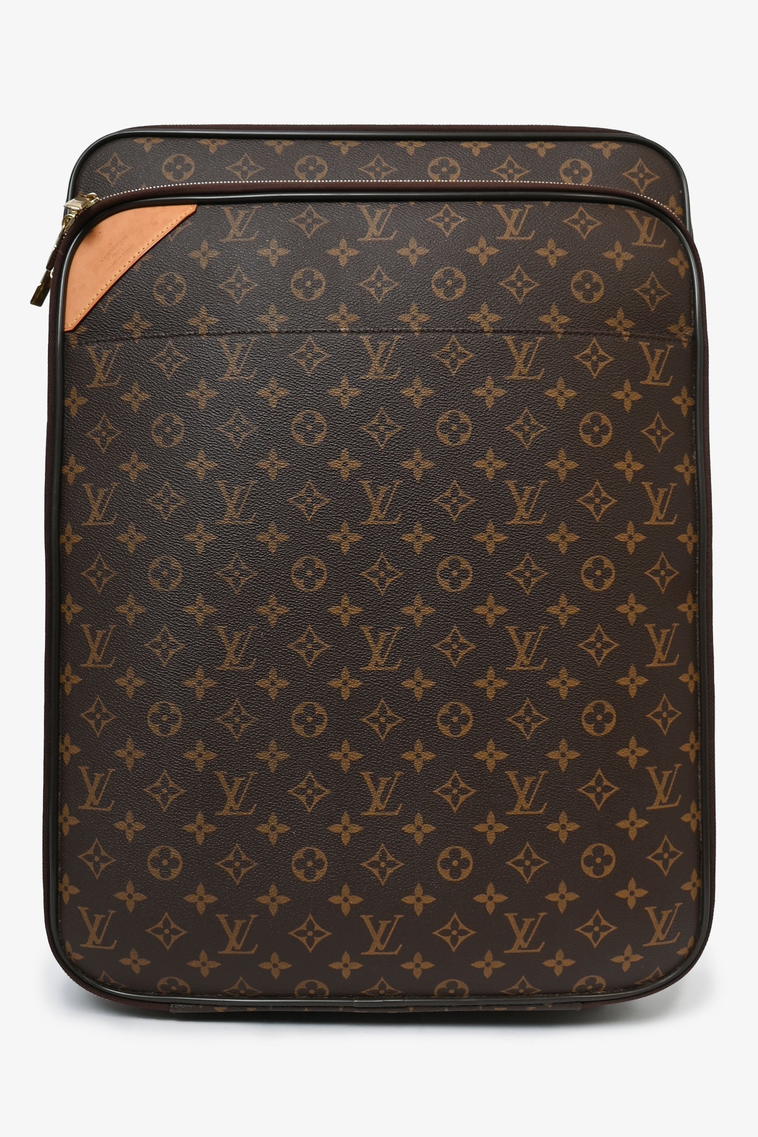 Refresh availabilityLouis Vuitton Monogram Pegase 50 Suitcase. Front zipper closure. Front and side handle. Front slip pocket and a zipper pocket. 4 interior slip pockets with zipper closure. Interior garment bag and luggage cover. Gold-tone hardware. Tonal stitching.