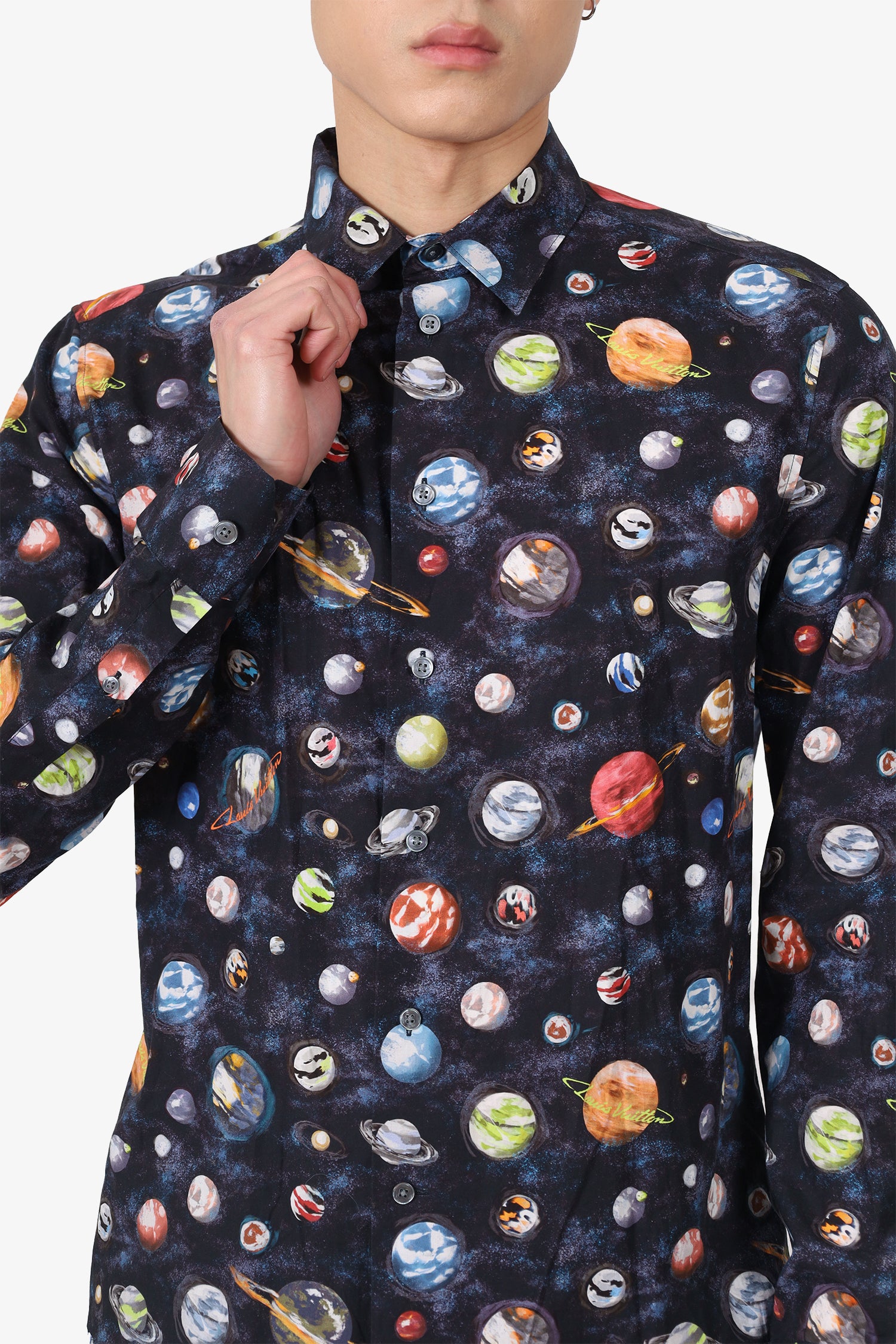 Louis Vuitton Navy Blue Planet Print Button Up Shirt Size M Mens