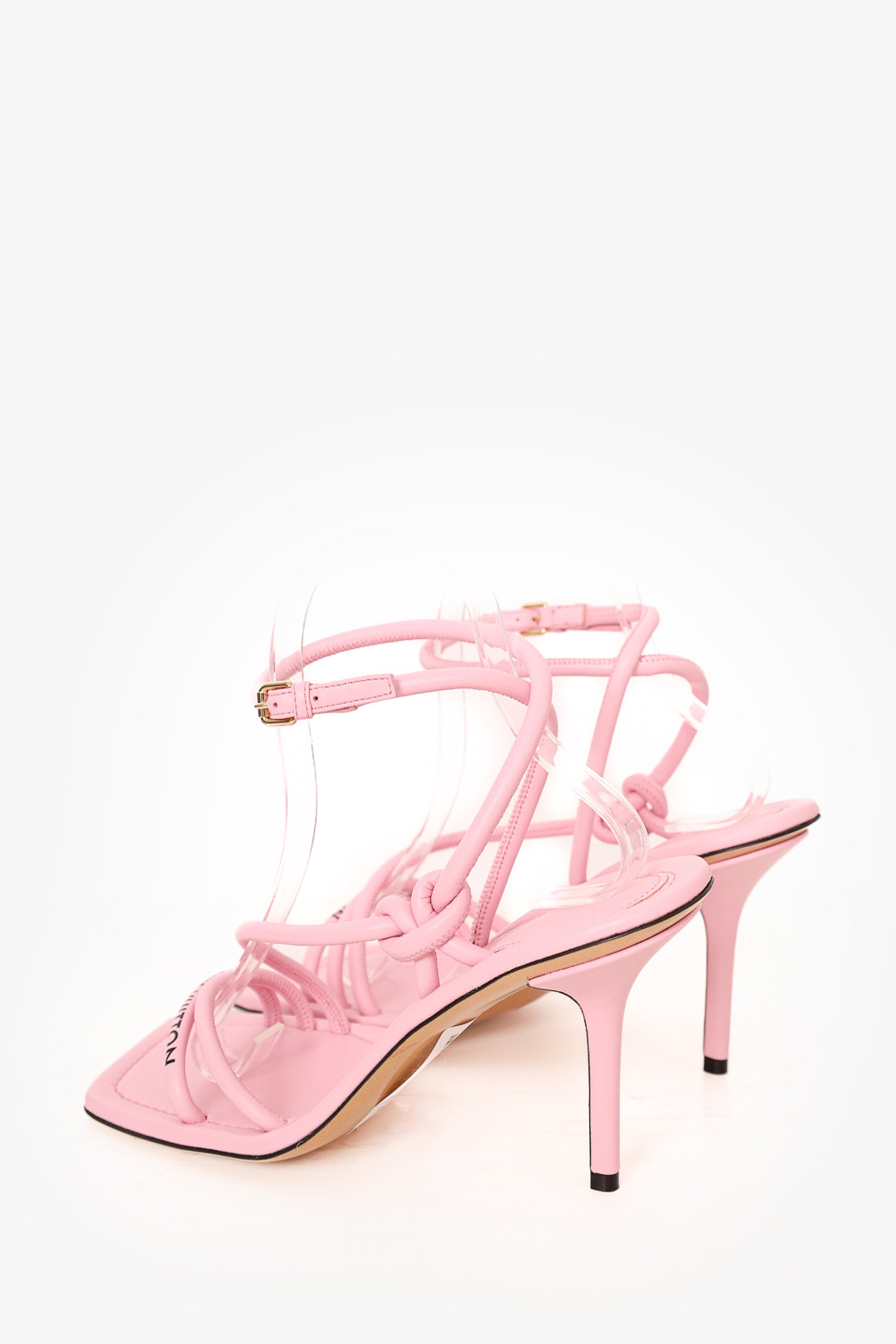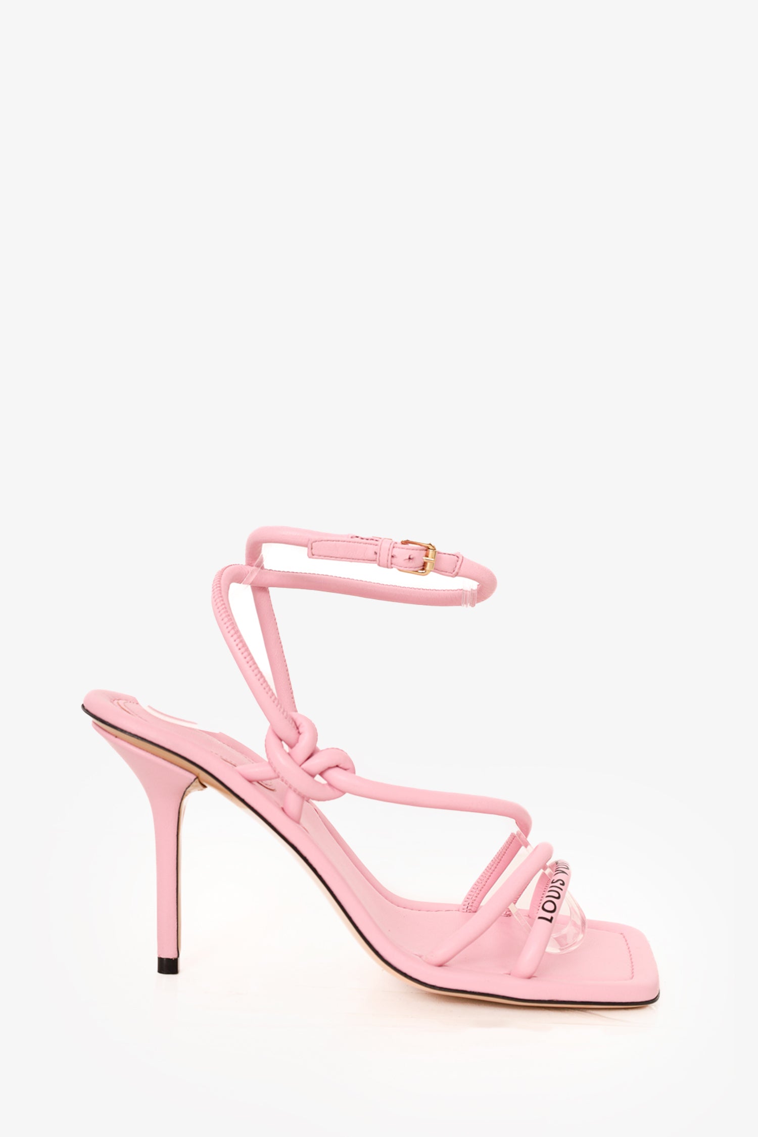 Refresh availabilityLouis Vuitton Pink Leather Strappy Sandals. Open toe. Ankle buckle closure. Square toe. Tonal stitching.