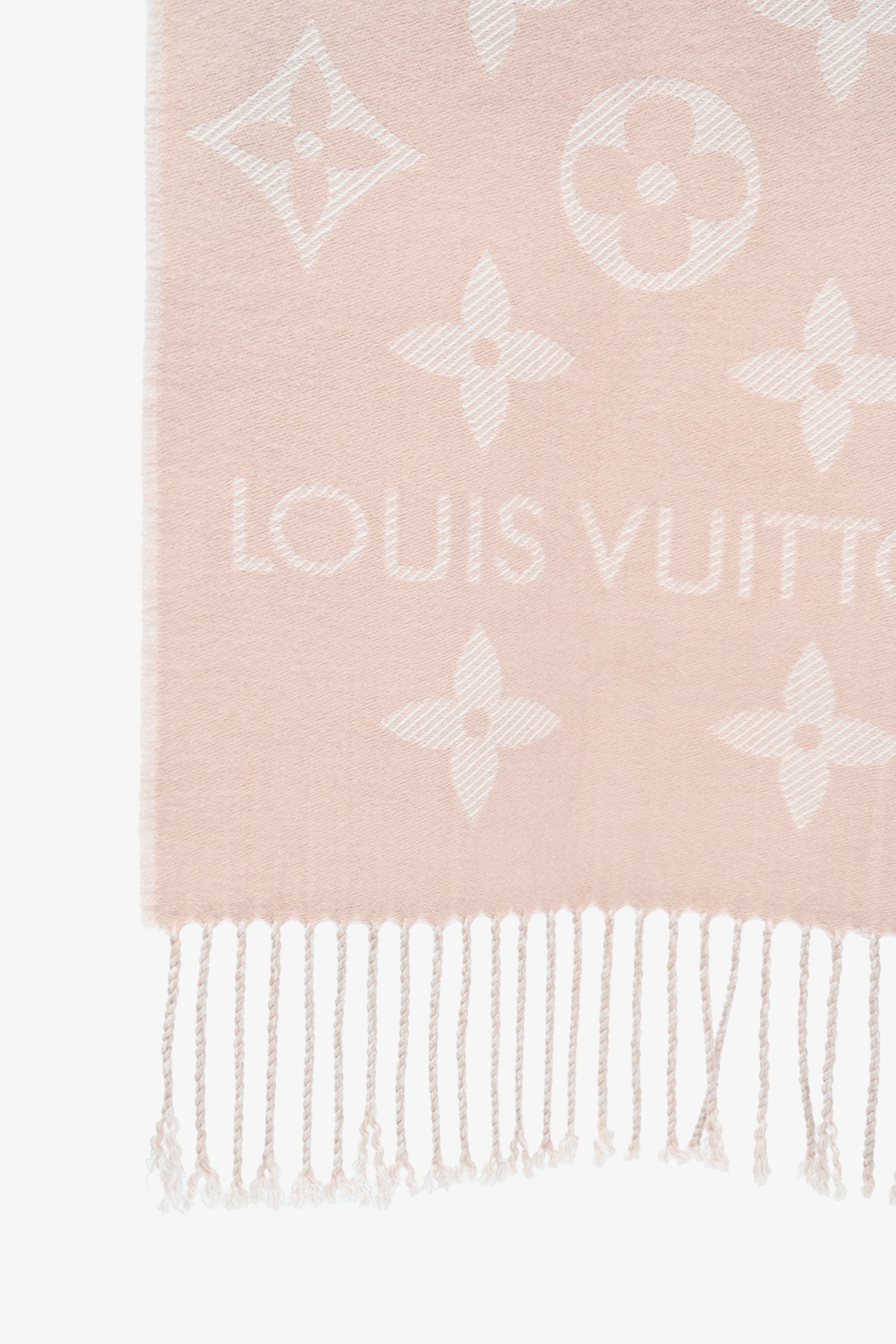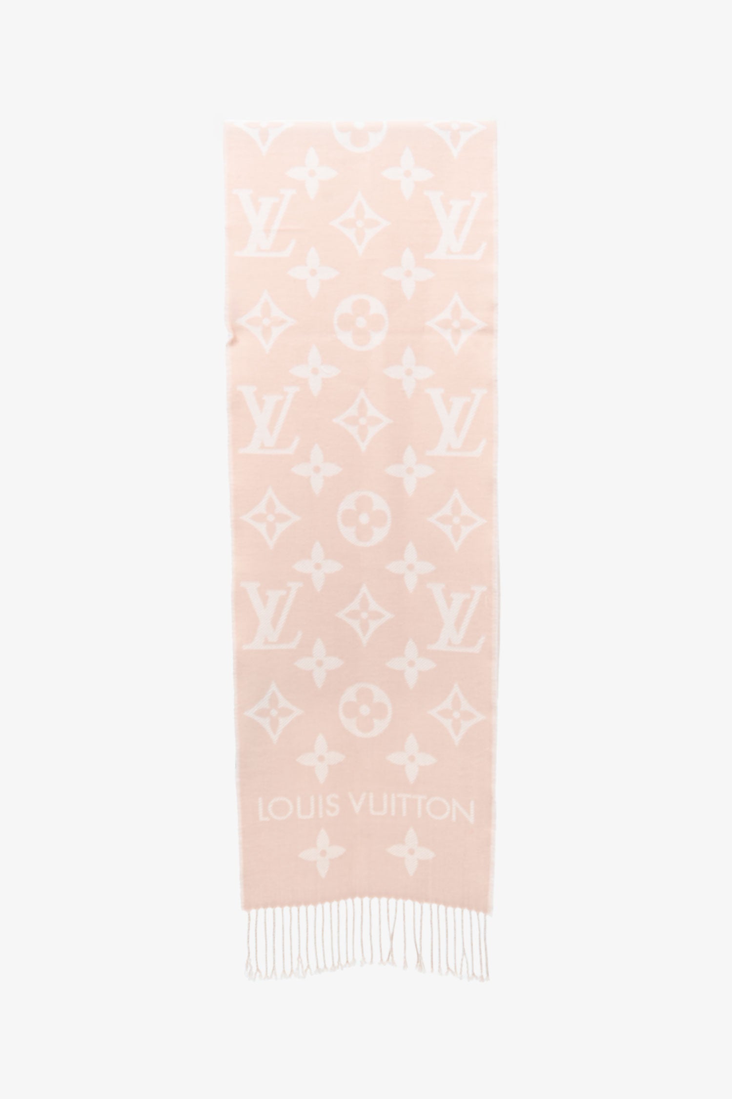Refresh availabilityLouis Vuitton Pink Wool Monogram Logo Scarf. Tonal stitching.