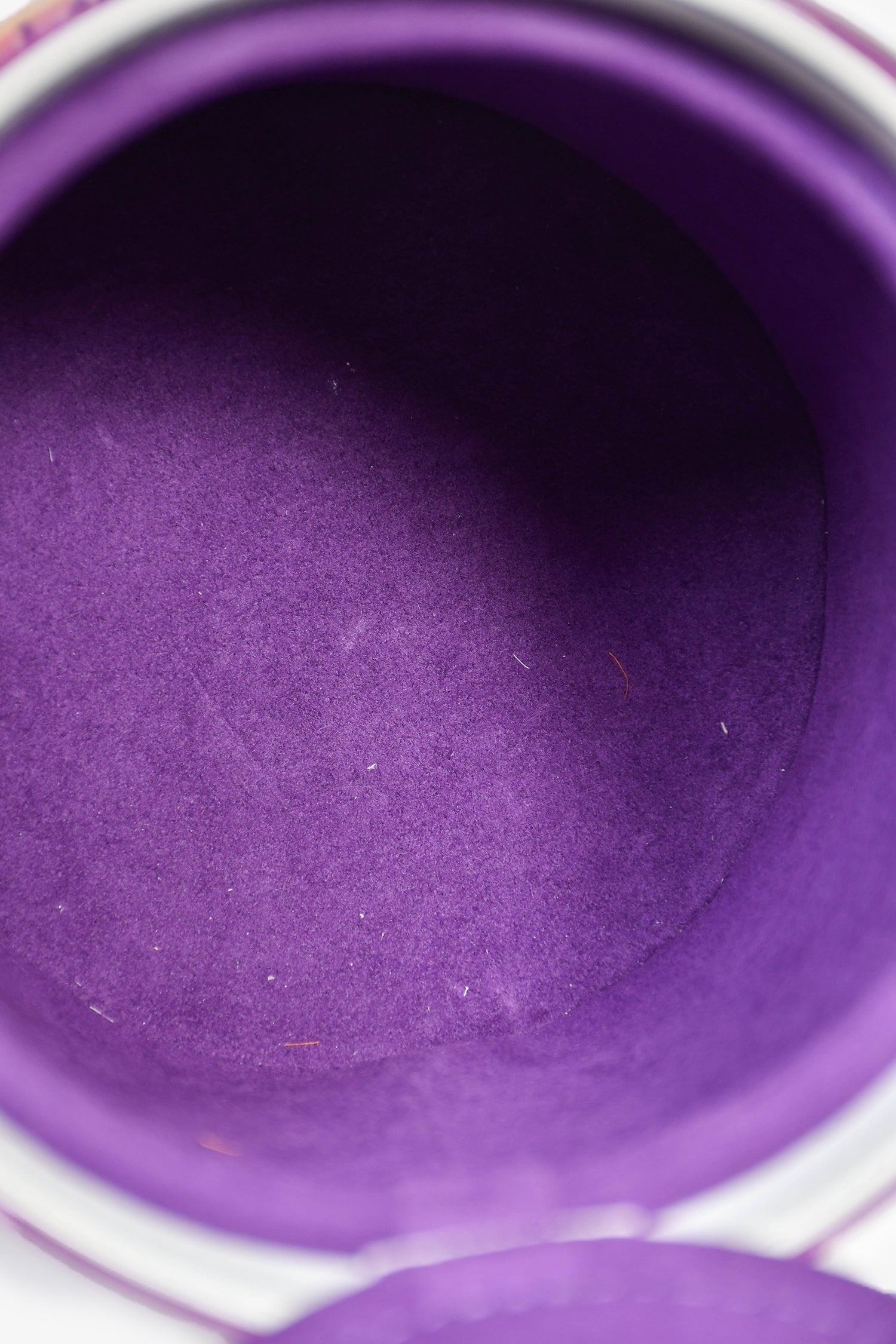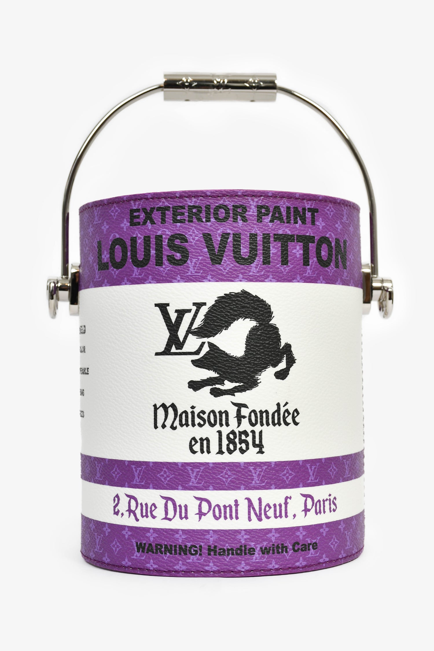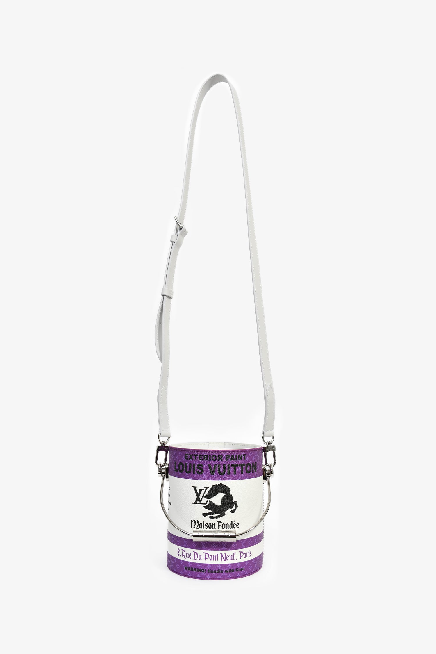 Refresh availabilityLouis Vuitton Purple/White Paint Can Bag with Strap. Top handle. Top pull-tab closure. Open suede interior. Detachable and adjustable crossbody strap. Silver-tone hardware.