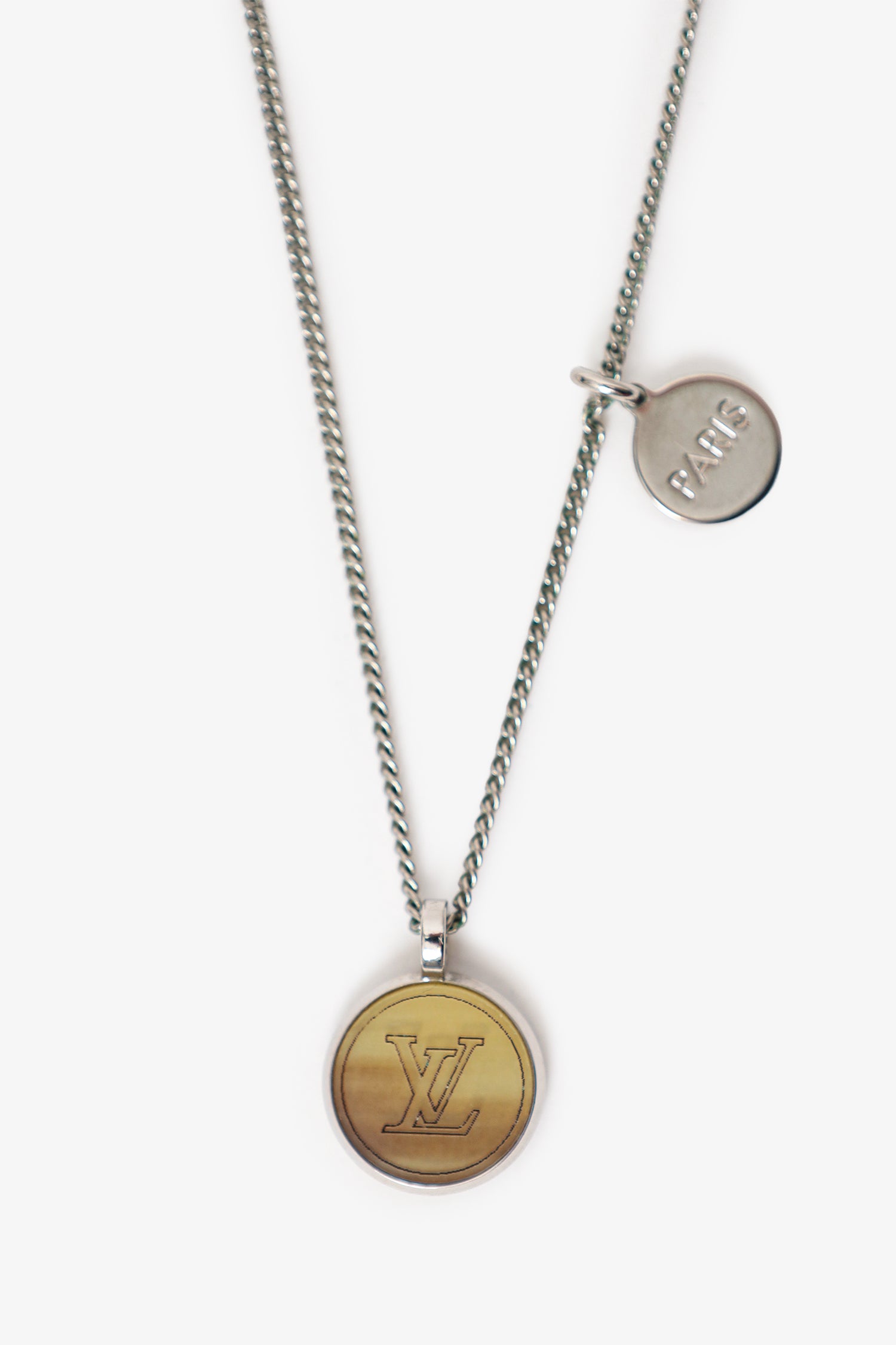 Refresh availabilityLouis Vuitton Silver Tone LV Horn Necklace. Adjustable rear clasp closure. Silver-tone hardware.